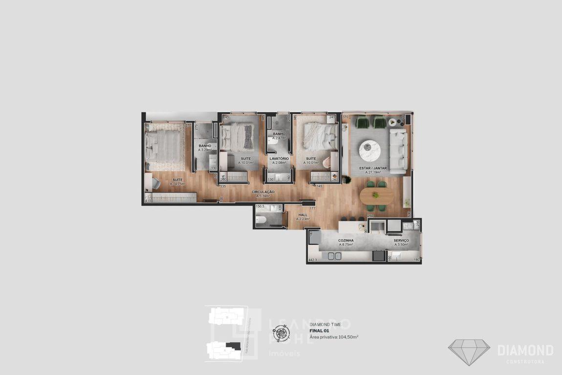 Apartamento 3 suítes, sendo uma suíte america, lavabo, posição norte, frente, sacada integrada a sala, churrasqueira na cozinha, gás central, agua individual, espera para split, garagem, em condomínio com infraestrutura com mais de 3.000m² de estrutura entregues mobiliadas e decoradas.
