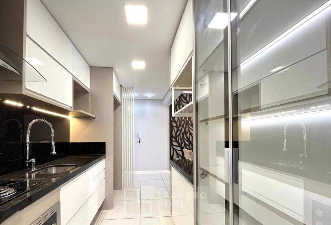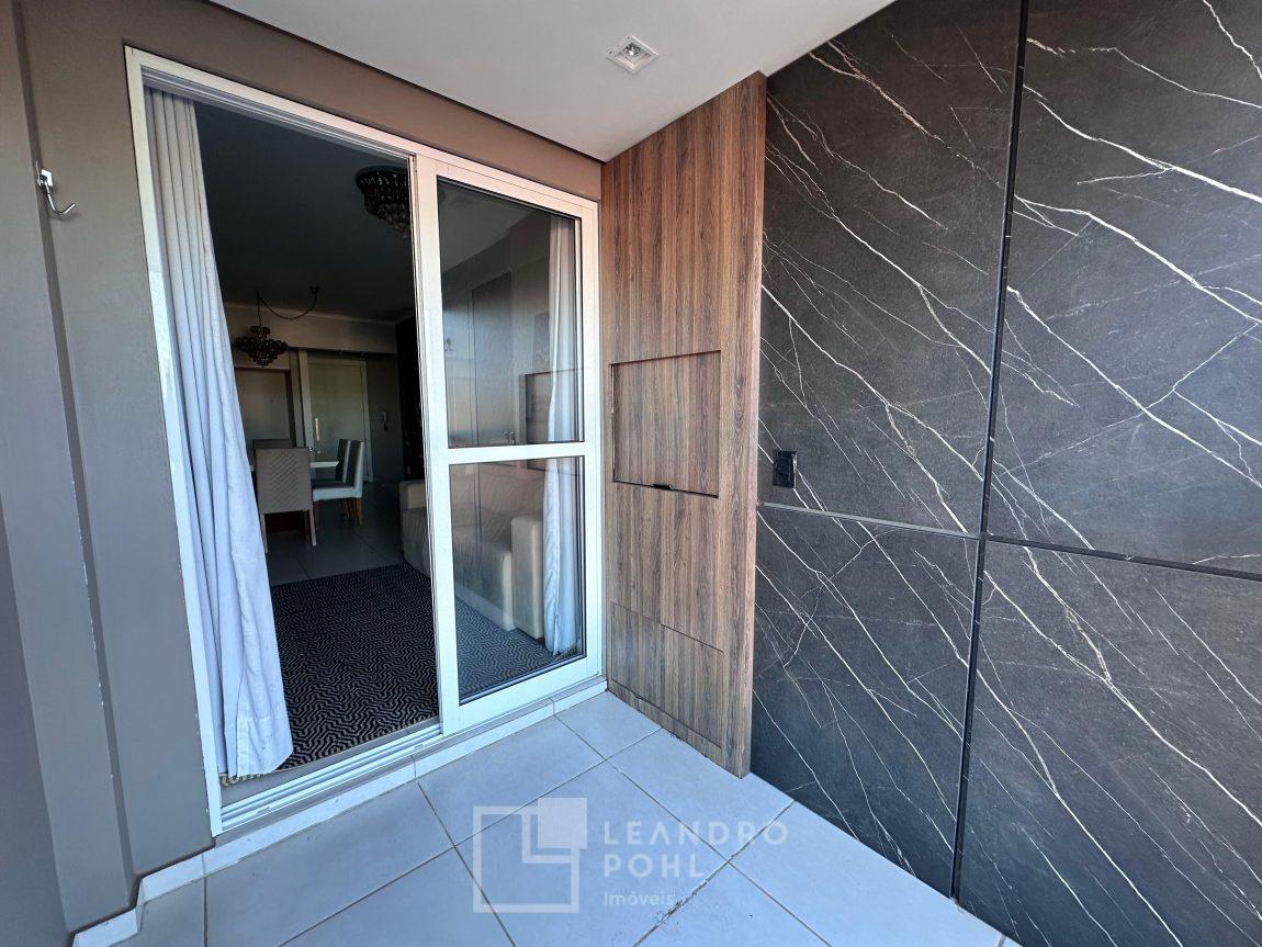 Prédio residencial com salão de festas, academia, espaço kids, varanda externa, e câmeras de segurança com monitoramento.