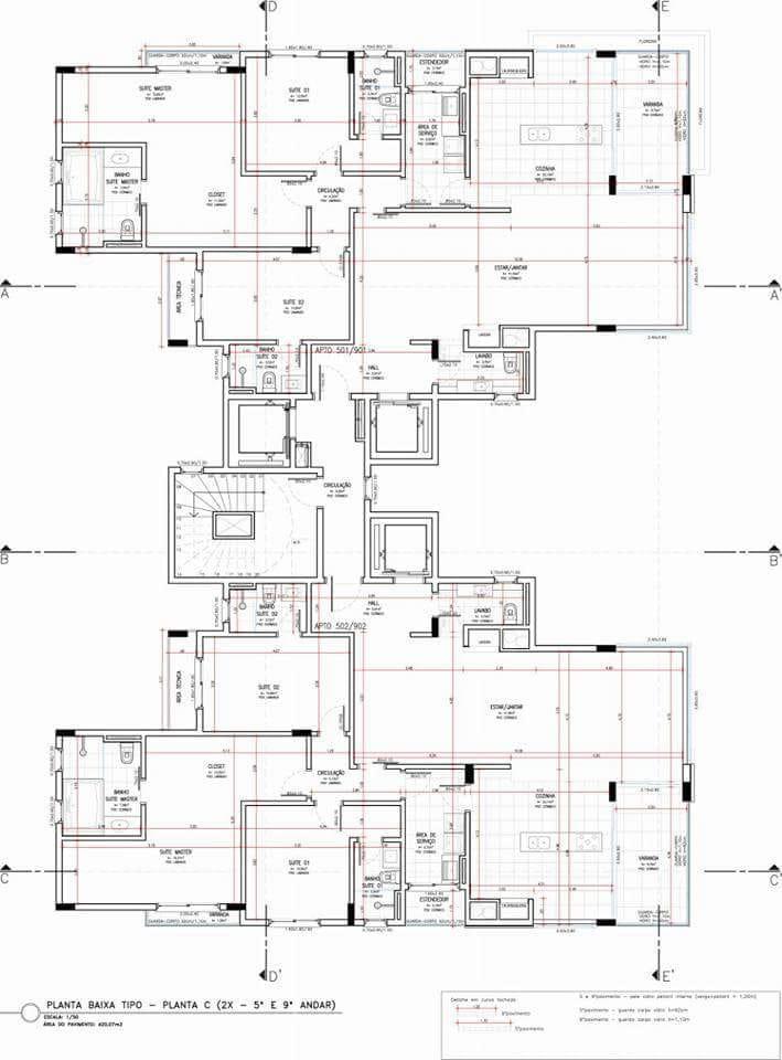 - 13 andares, 2 unidades de 3 suítes por andar e cobertura