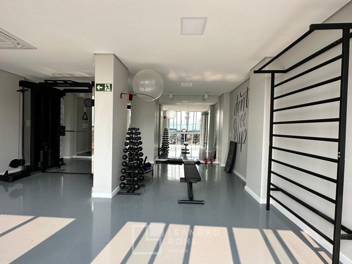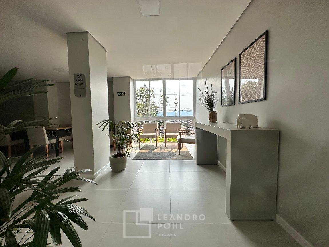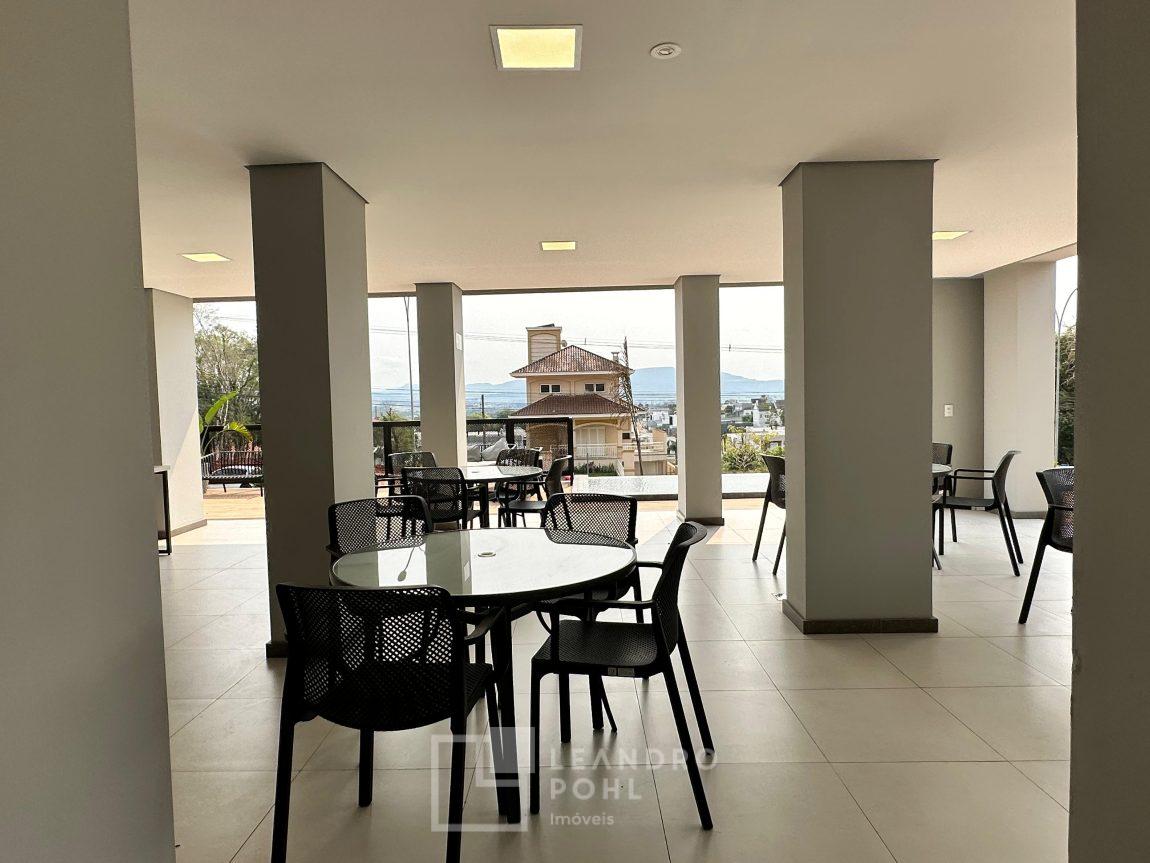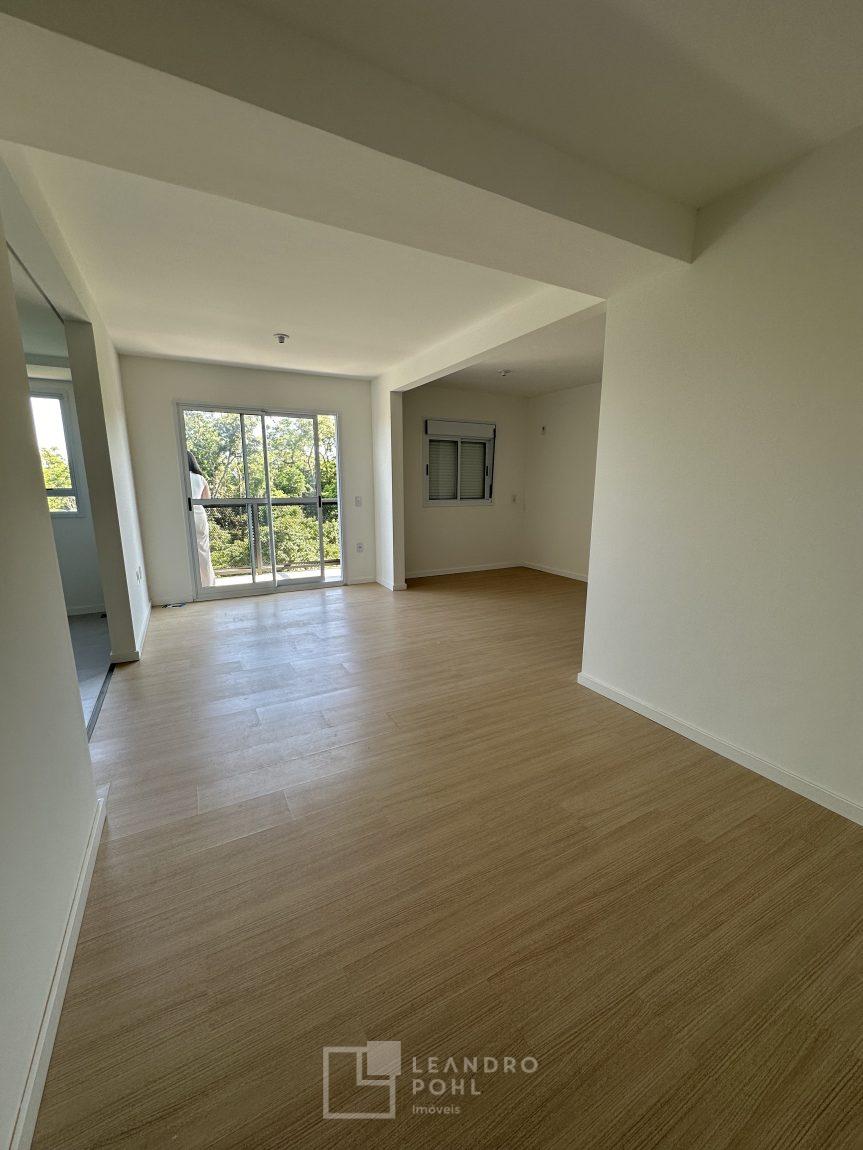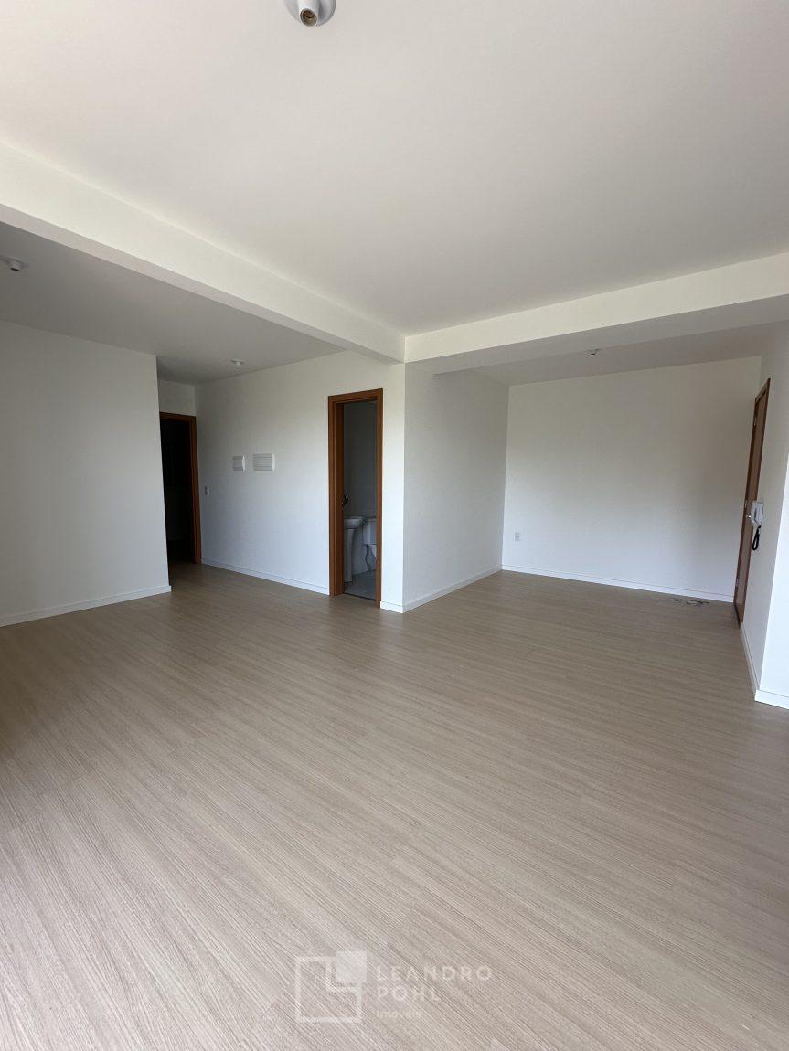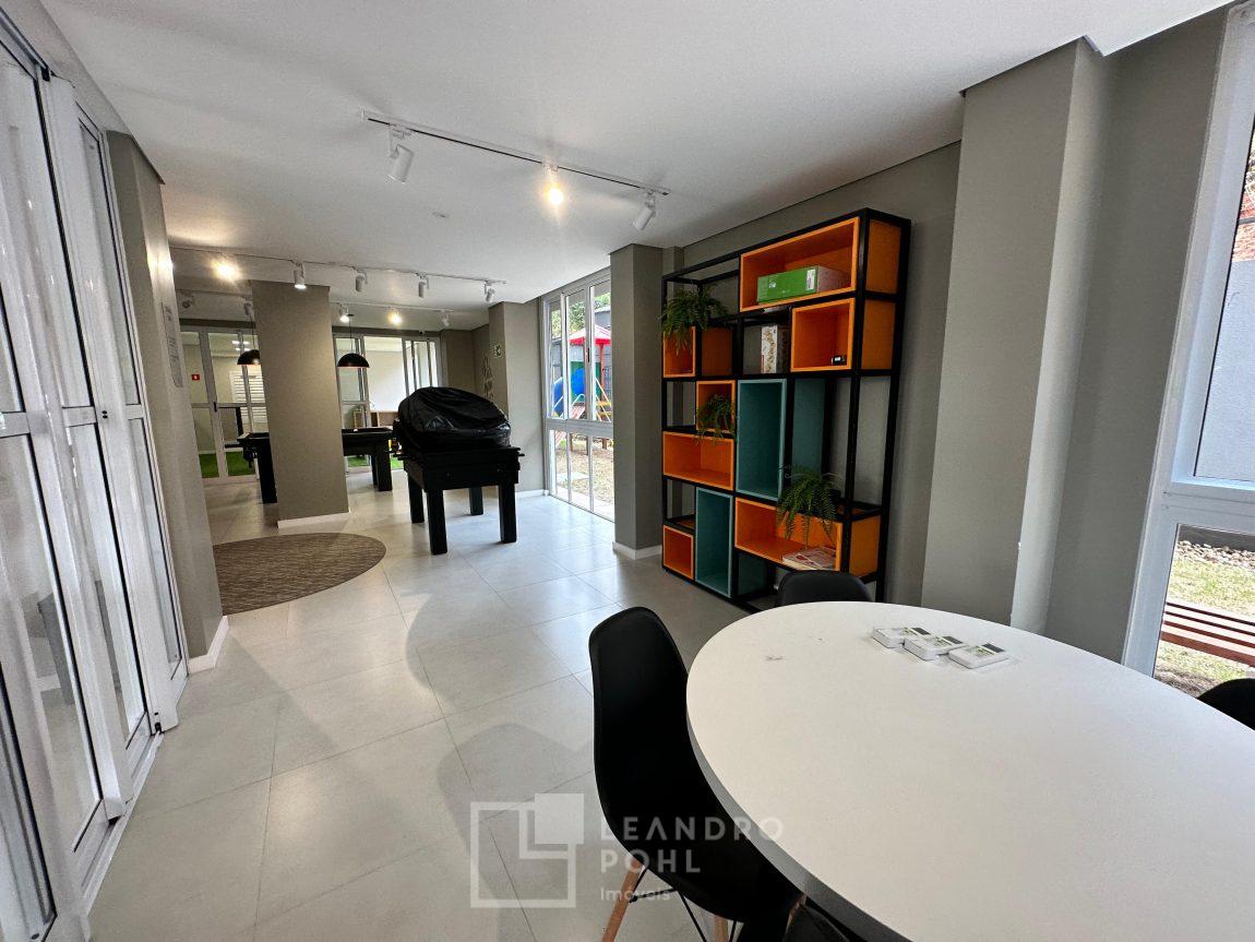 Apartamento 3 dormitórios, mobiliado, piso laminado na área privativa e porcelanato na social, de fundos, espera para ar condicionado, sacada, churrasqueira, agua quente.