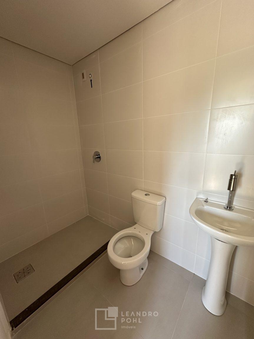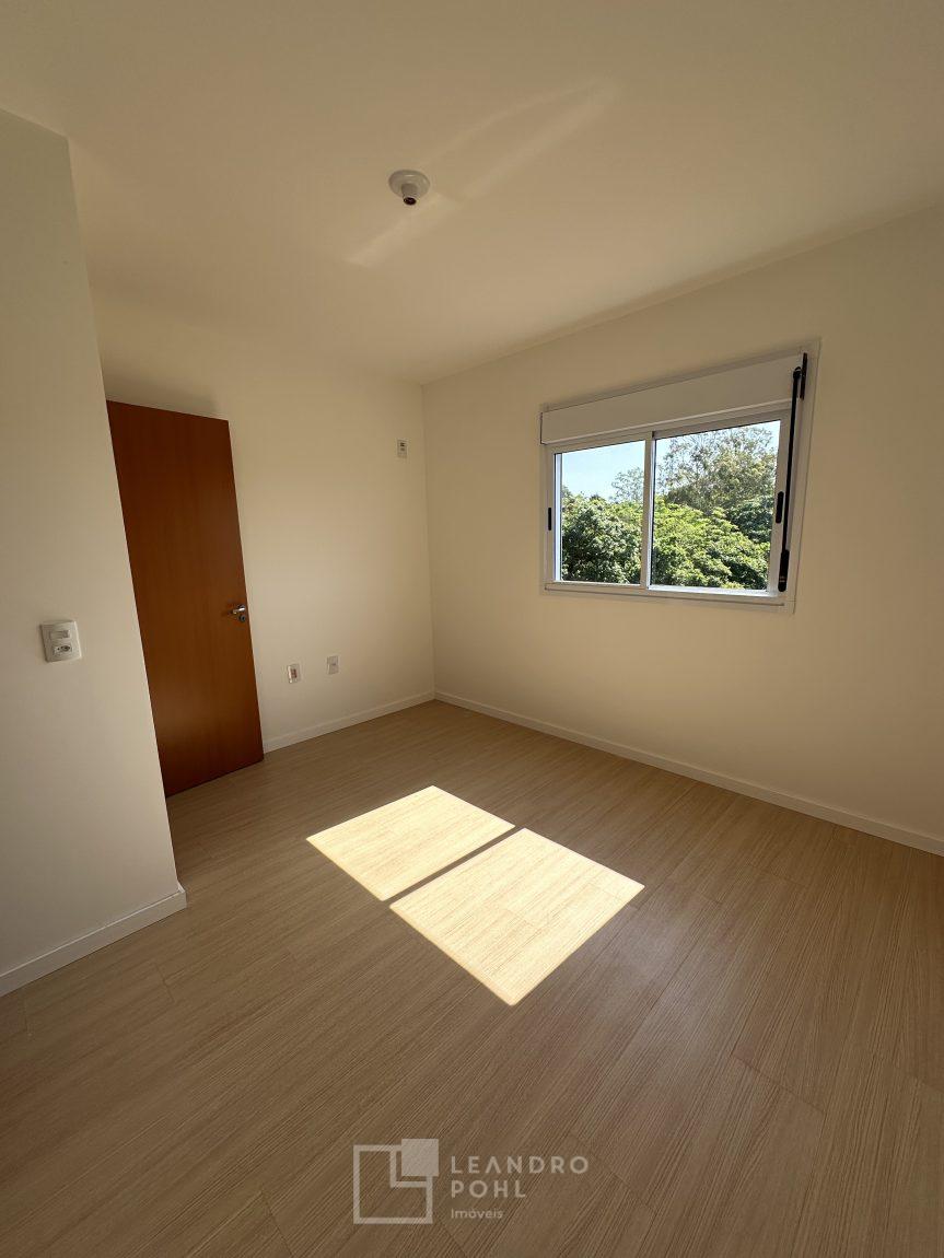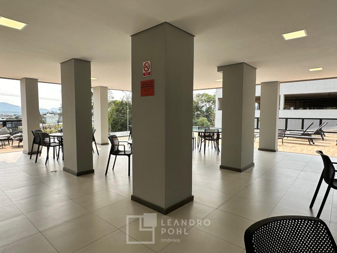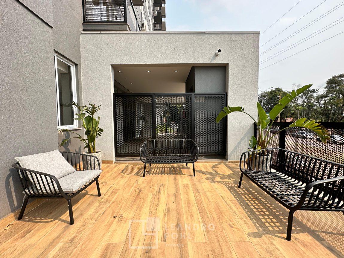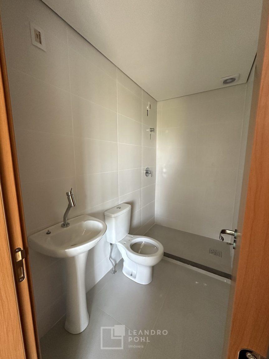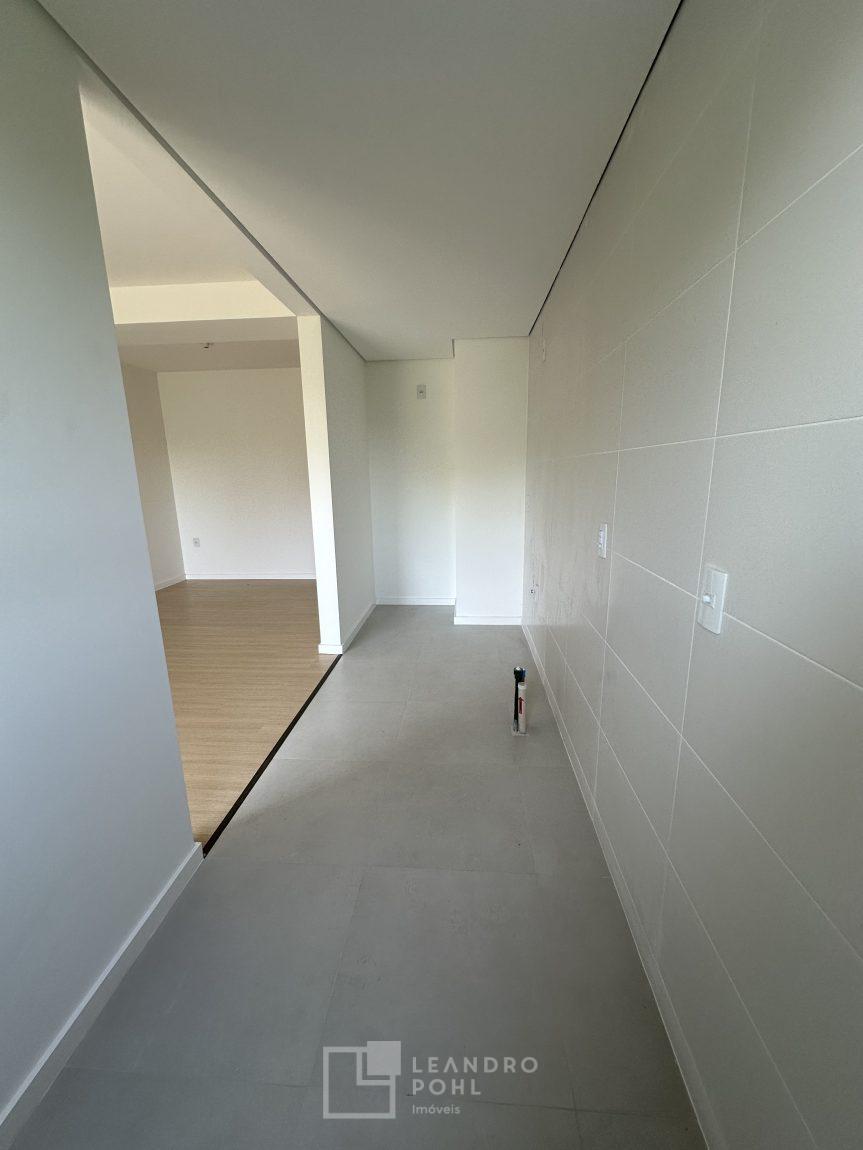 Apartamento 3 dormitórios, mobiliado, piso laminado na área privativa e porcelanato na social, de fundos, espera para ar condicionado, sacada, churrasqueira, agua quente.