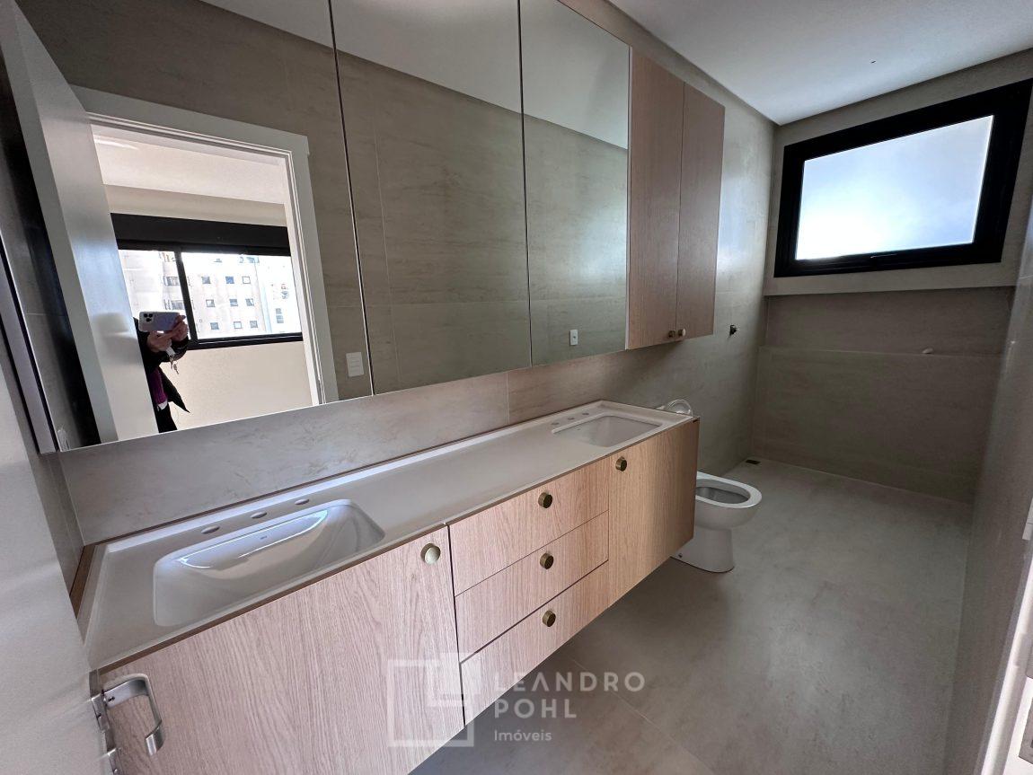 Apartamentos de alto padrão, um por andar, hall privativo personalizado, banheiros e lavabo MOBILIADOS, 3 suítes, amplo living, lavabo, churrasqueira, área de serviço separada, ampla sacada com 16m², aberturas especiais em pvc com vidro duplos, persianas automatizadas, esperas para split, acabamentos em gesso, ótima posição solar.