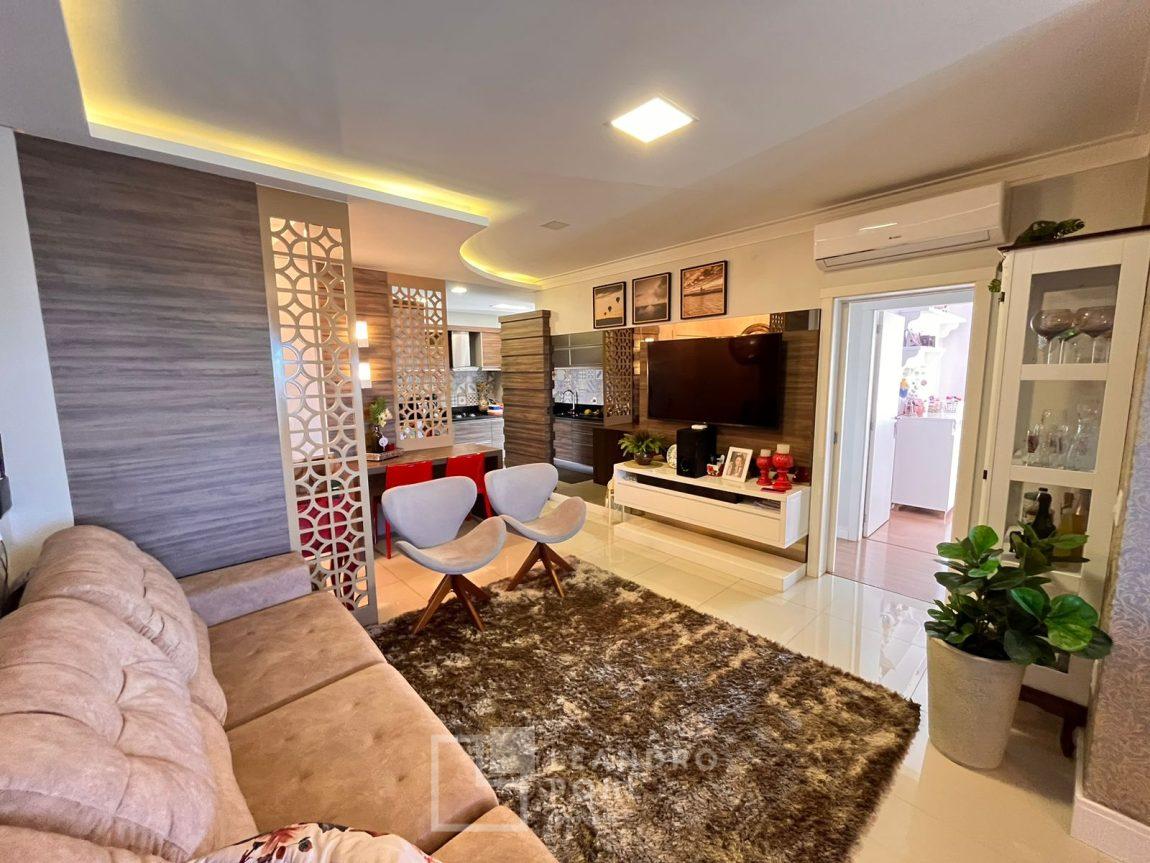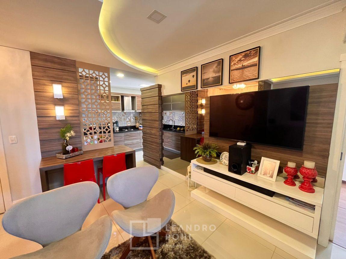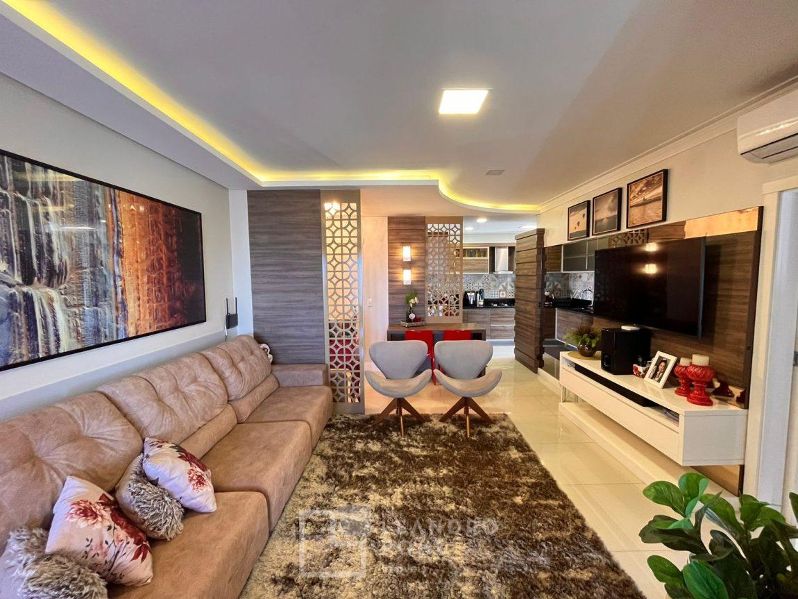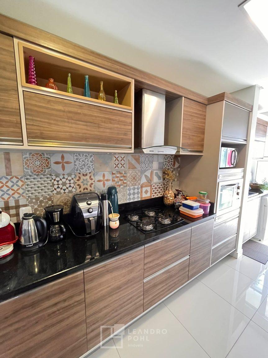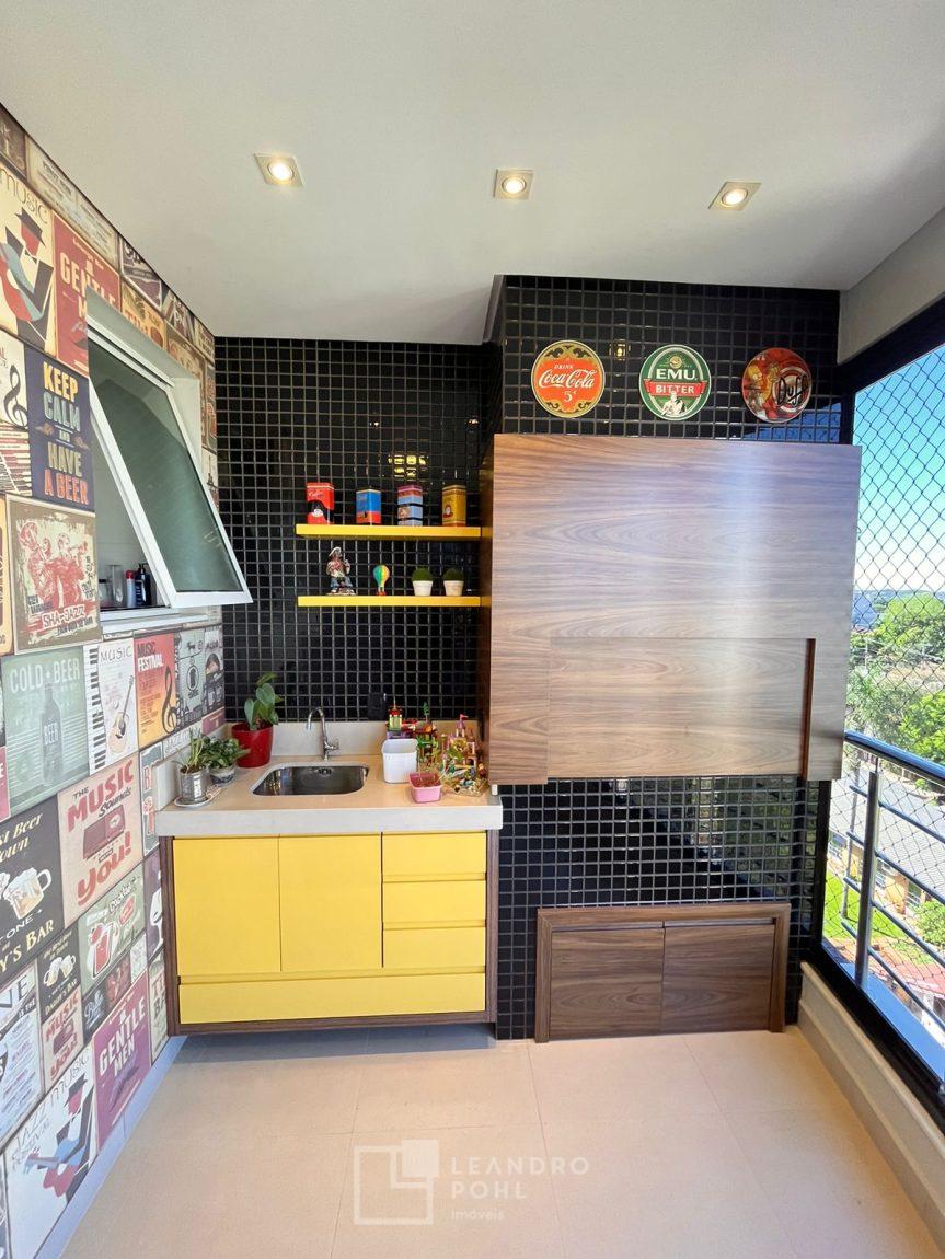 -Cozinha = Ficam móveis sob medida, forno embutido, fogão, coifa, torneira e luminária. Sala de estar = Home e painéis, ar-condicionado e luminárias.