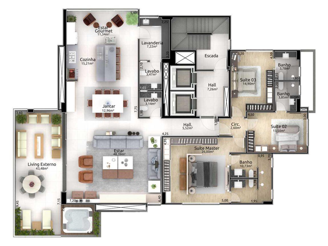 Morar no Monte Olimpo é para pessoas exigentes, que prezam por qualidade, segurança e exclusividade. Possui um apartamento por andar de 3 suítes, 248m² privativos com Living externo com espera para spa na parte alta do Bairro São Cristóvão, onde a vista enobrece ainda mais sua beleza.