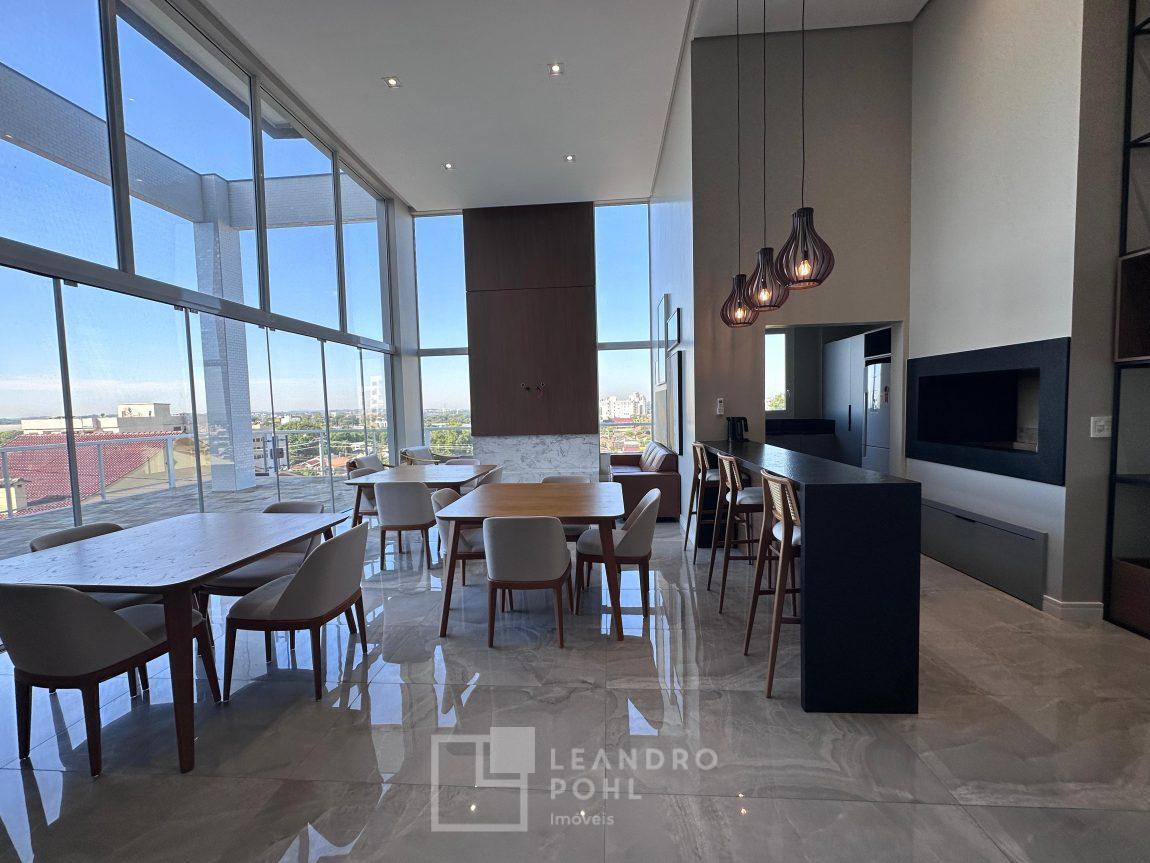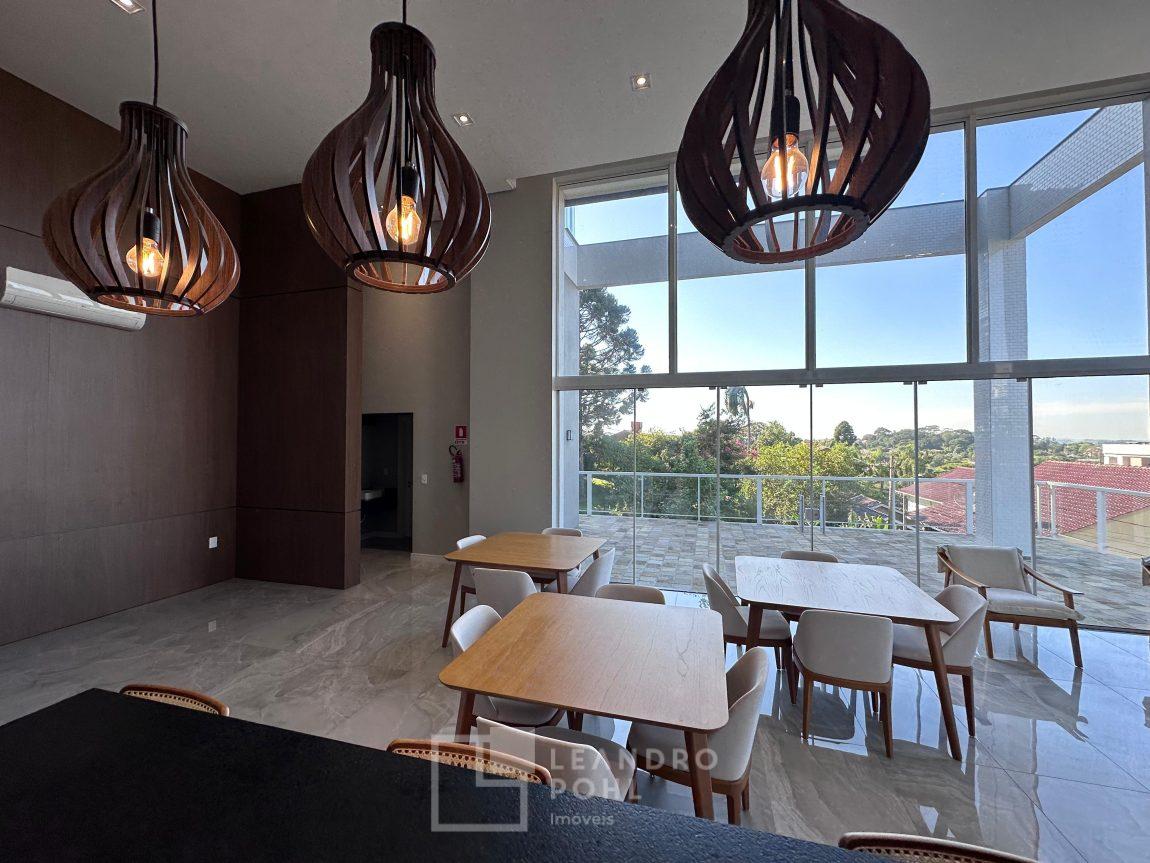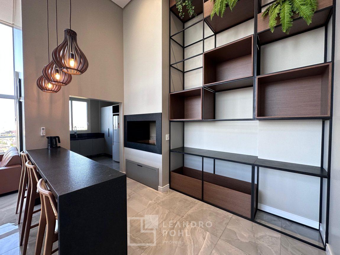 Apartamento mobiliado, novo, impecável, um apartamento por andar, andar alto, 2 garagens, 3 suítes, suíte master ele/ela, lareira, lavabo, lavanderia com lavabo de serviço,