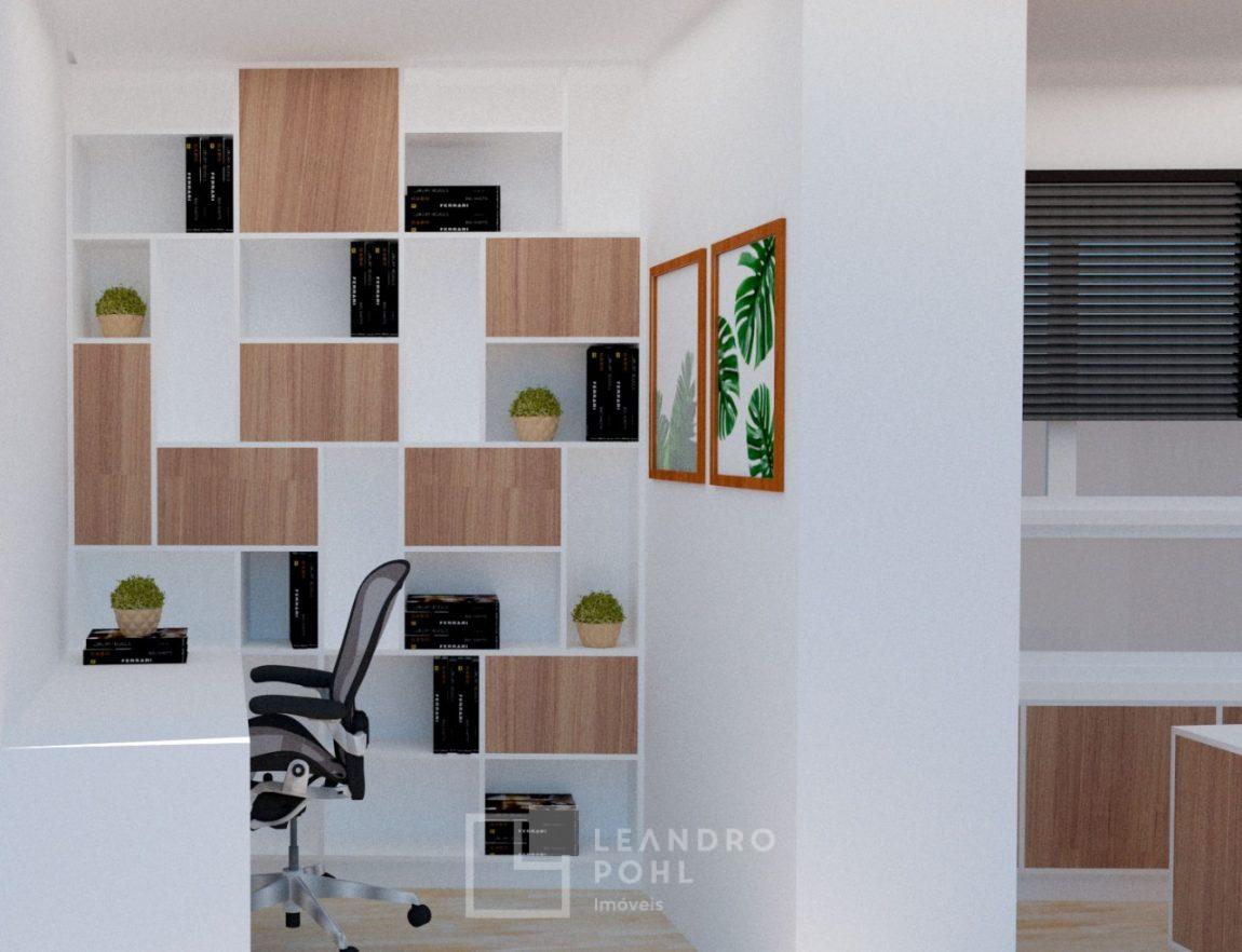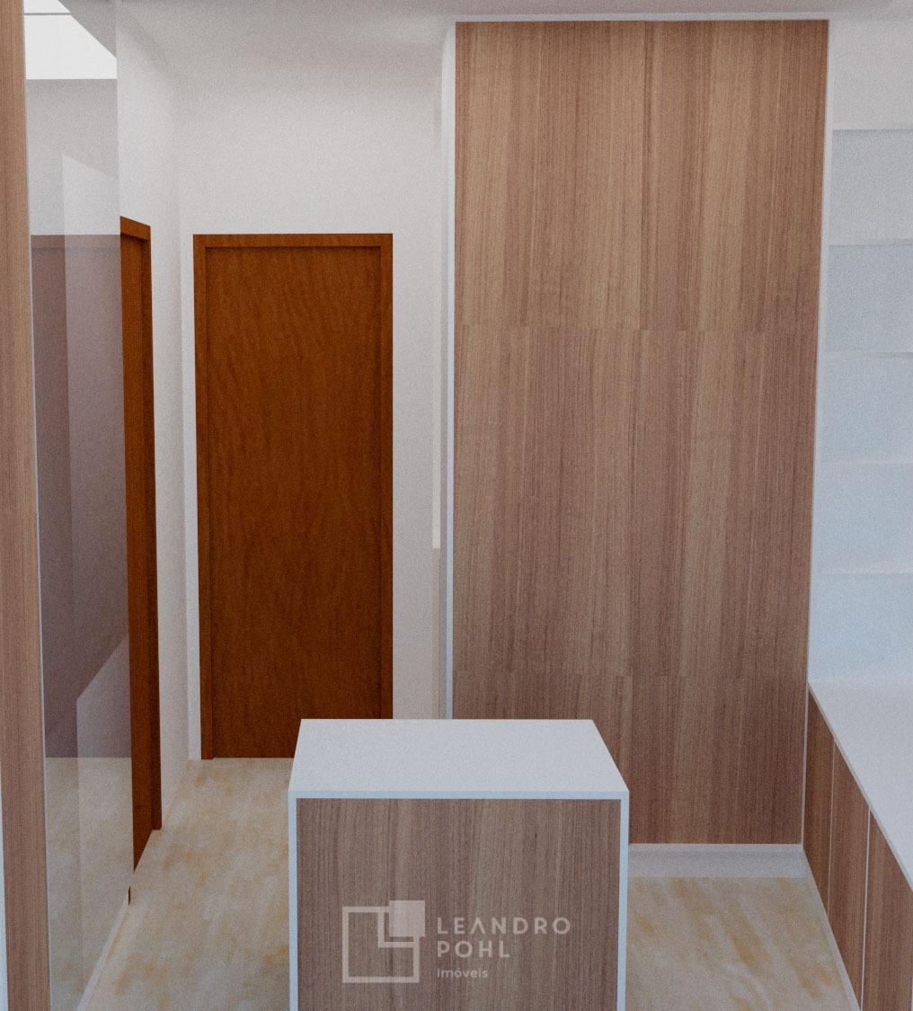 - porcelanato no living e laminado nos dormitórios;