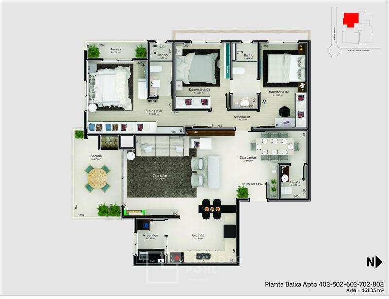 Prédio com projeto arquitetônico moderno e diferenciado, sacadas amplas com churrasqueira, ótima orientação solar, acabamentos decorados e personalizados, esperas para água quente, splits e lareira, aberturas de alumínio com persiana automatizada, piso e paredes em porcelanato retificado, massa corrida, salão de festas mobiliado e espaço fitnes equipado,