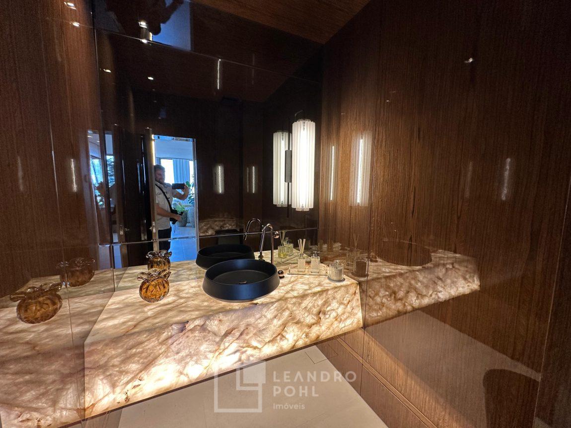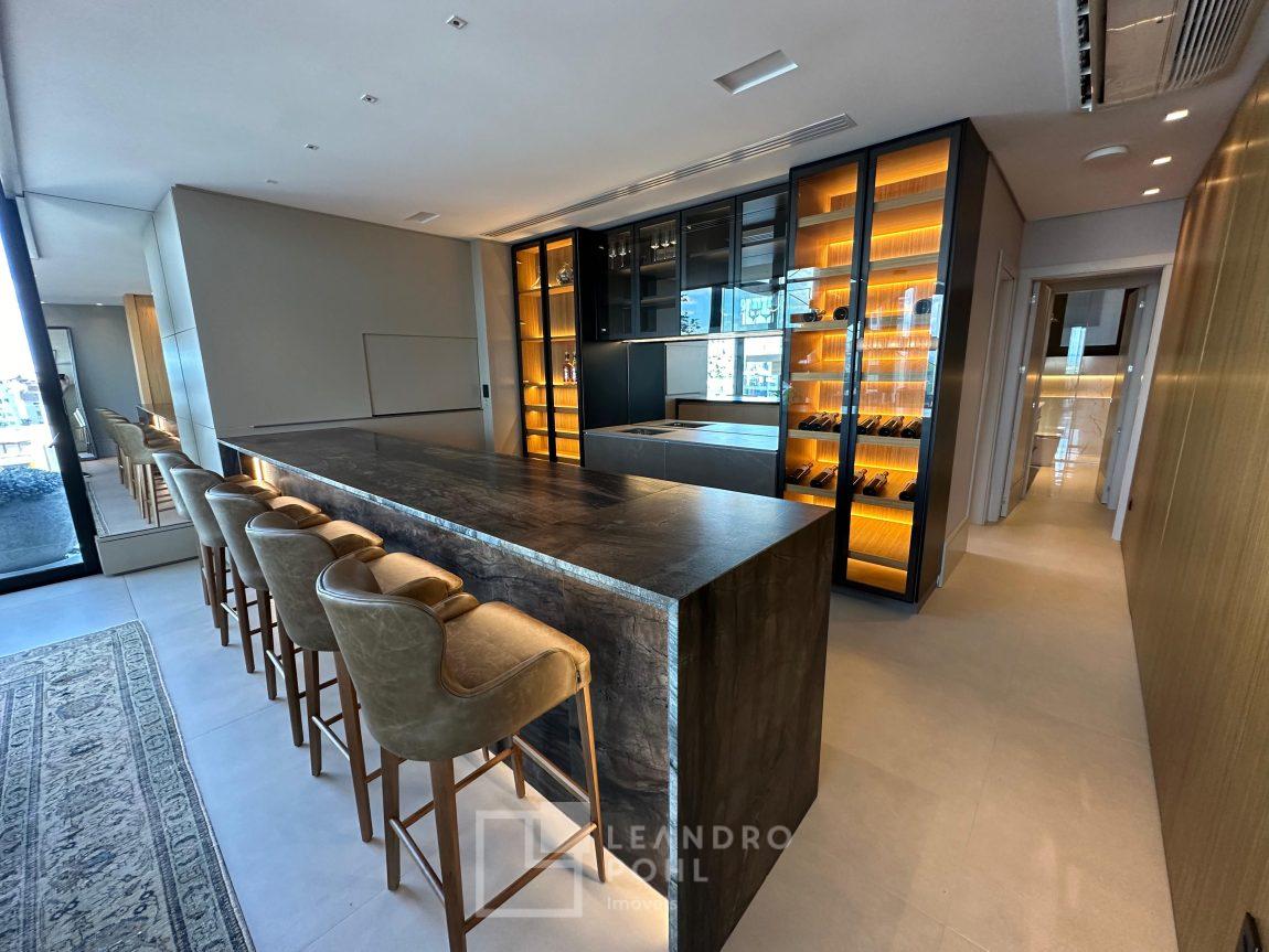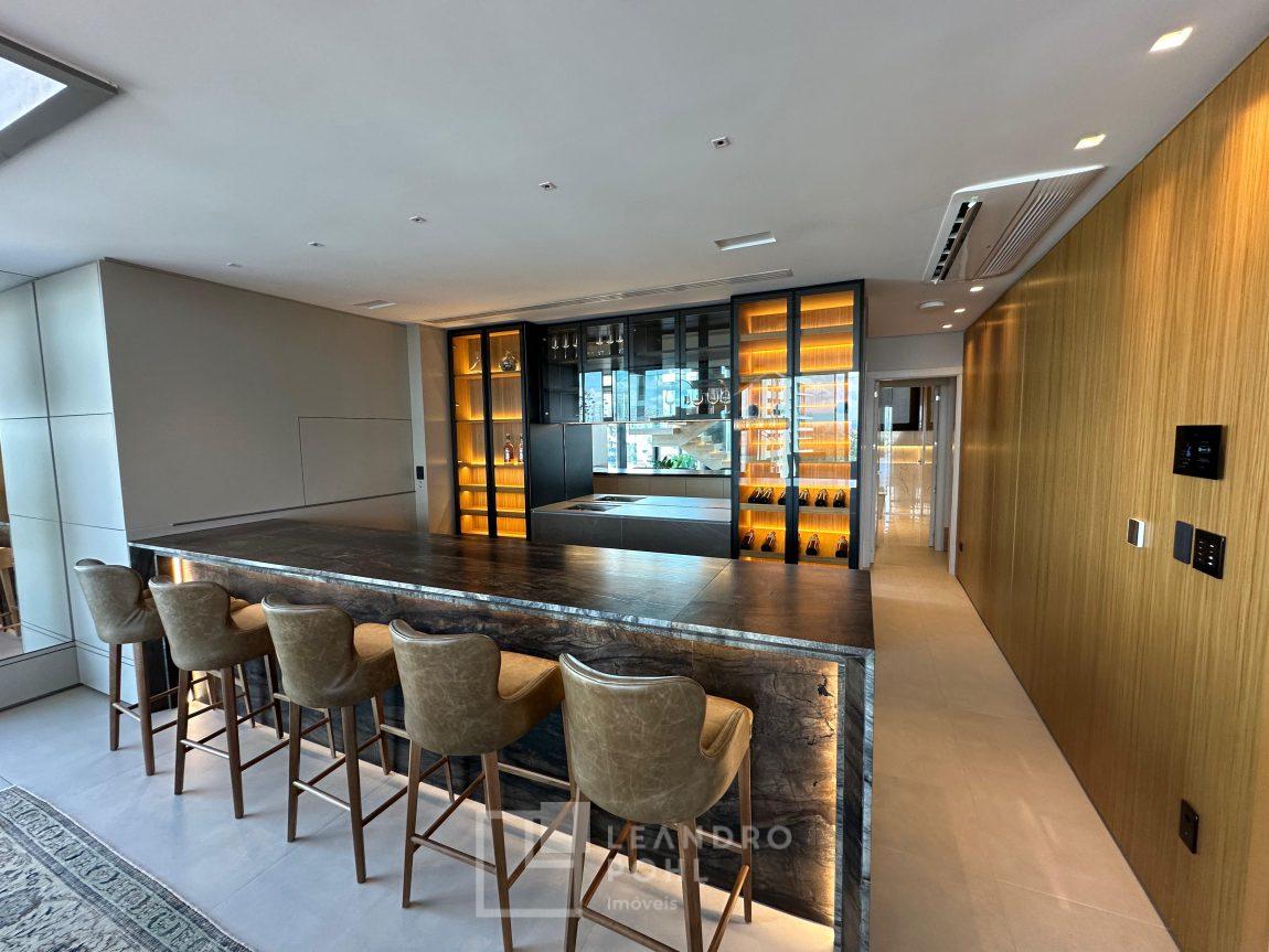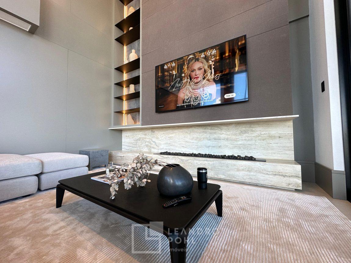Mansão nas alturas, e o verdadeiro significado de luxo e conforto você encontra neste apartamento, Hall de entrada hall com painel na feito com laminas de madeira e técnica artesanal “marcheteria” tornando peça única , todas as paredes são revestidas em laca e couro atmosfera versátil de luxo, manta acústica em pisos e paredes, vidros duplos, automação total com iluminação, aquecimento de piso, ar condicionado, cortinas e som controlados individualmente detalhes em móveis e decoração com peças assinadas pelo premiado designer jader almeida que tem showroom em sp e milão, lareira a gás com pedras vulcânicas acionada por controle, bancadas da cozinha com pedra tipo dekton com altíssima resistência, durabilidade e estética diferenciada e uma área externa espetacular com piscina de borda infinita com pré aquecimento.