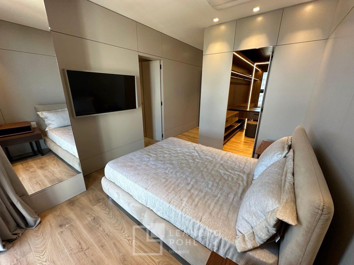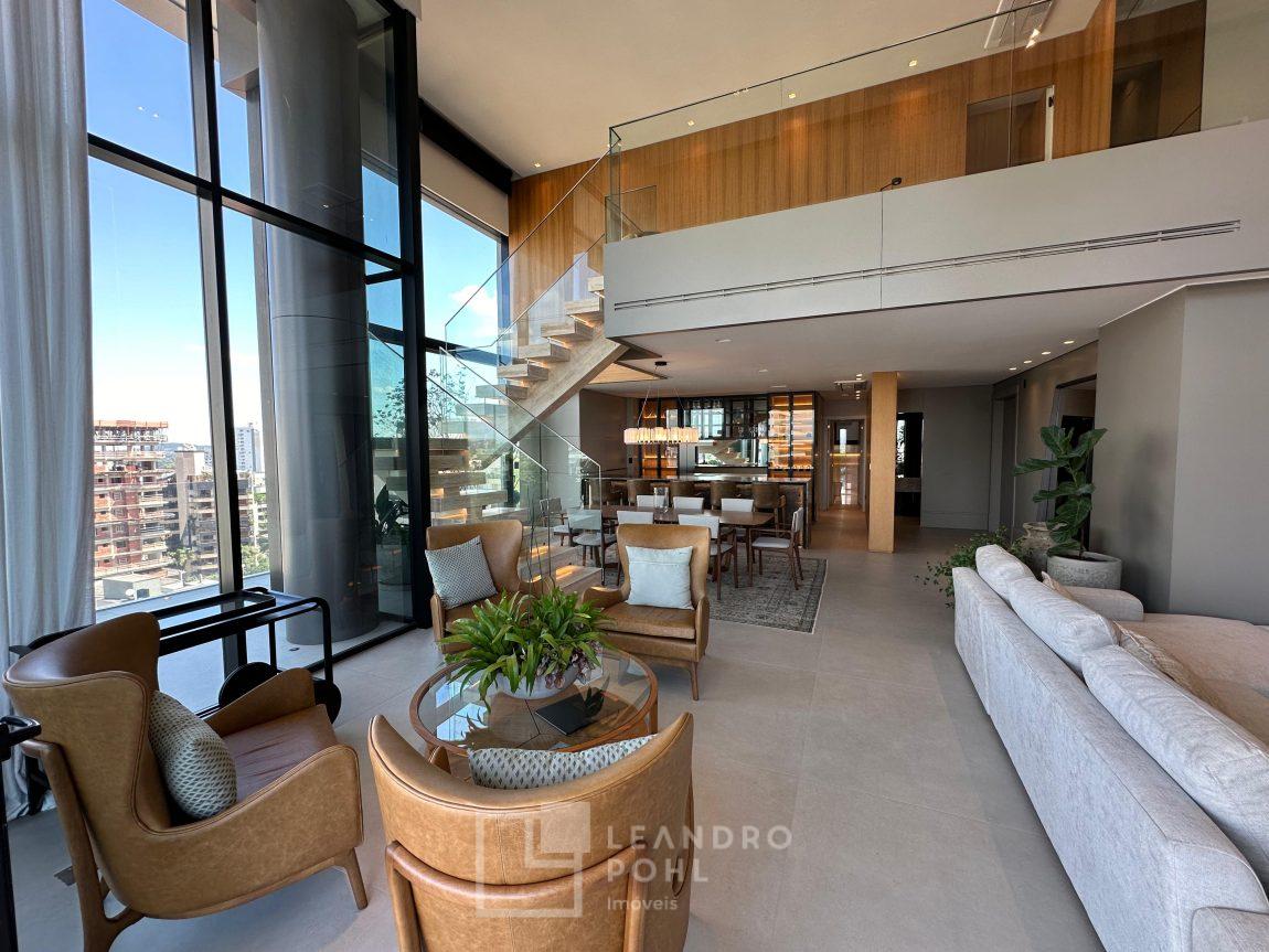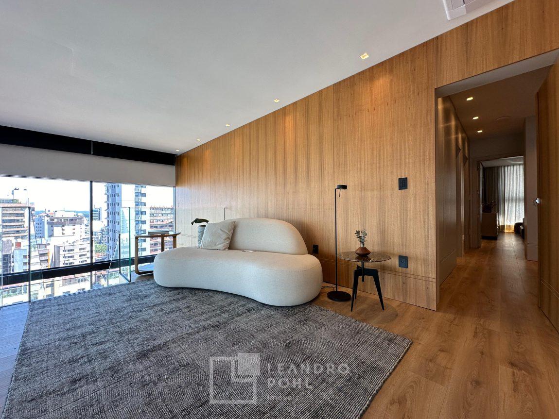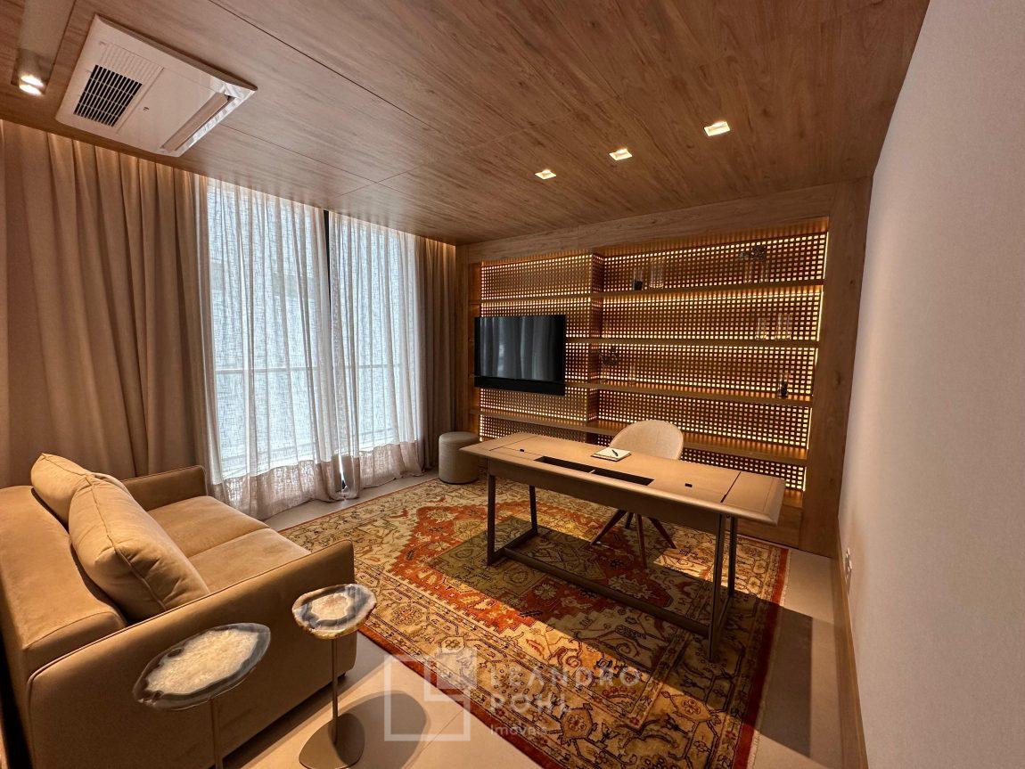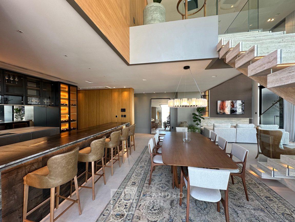 Mansão nas alturas, e o verdadeiro significado de luxo e conforto você encontra neste apartamento, Hall de entrada hall com painel na feito com laminas de madeira e técnica artesanal “marcheteria” tornando peça única , todas as paredes são revestidas em laca e couro atmosfera versátil de luxo, manta acústica em pisos e paredes, vidros duplos, automação total com iluminação, aquecimento de piso, ar condicionado, cortinas e som controlados individualmente detalhes em móveis e decoração com peças assinadas pelo premiado designer jader almeida que tem showroom em sp e milão, lareira a gás com pedras vulcânicas acionada por controle, bancadas da cozinha com pedra tipo dekton com altíssima resistência, durabilidade e estética diferenciada e uma área externa espetacular com piscina de borda infinita com pré aquecimento.