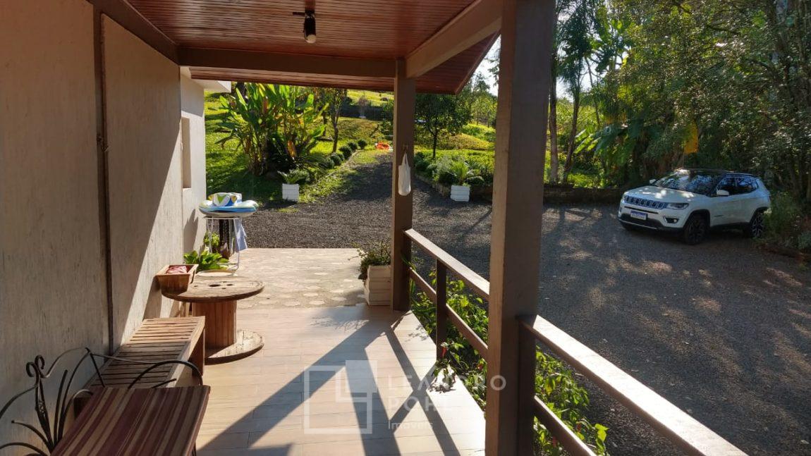 A casa possui um espaço Gourmet integrado com sala de estar e jantar com ilha gourmet, 3 banquetas. Mesa para 8 lugares em madeira envelhecida. O estar tem sofá, duas poltronas, televisão, internet, aparelho de captação de canais. Dois banheiros completos, com box/banho, revestido em porcelanato, paredes e chão. Na varanda tem sofá, mesa redonda com cadeiras. Lavanderia (máquina de lavar roupa) e depósito com máquinas de cortar grama, ferramentas, assoprador de folhas, enxada e demais utensílios. Porcelanato em toda residência;