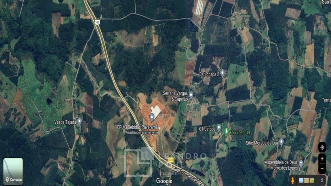 Excelente área de terras na BR 386, localizada ao lado das instalações da Bebidas FRUKI, COM 381,52 metros de testada com a BR 386, área total de 178.234,00.