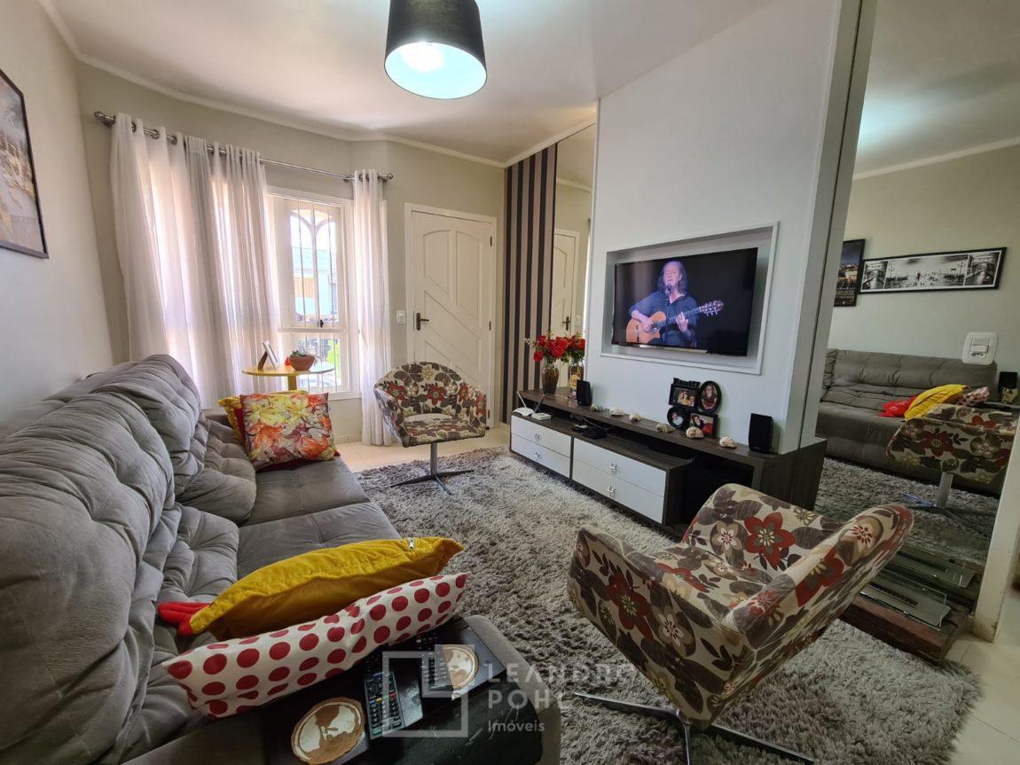 Casa plana, 2 dormitórios, sala e cozinha conjugadas, SEMI MOBILIADA (sai quarto do casal somente e móveis soltos), luminárias, split, lavabo, gesso, área de serviço separada, garagem, churrasqueira, pátio amplo, piso cerâmico, cercada, portão eletrônico.