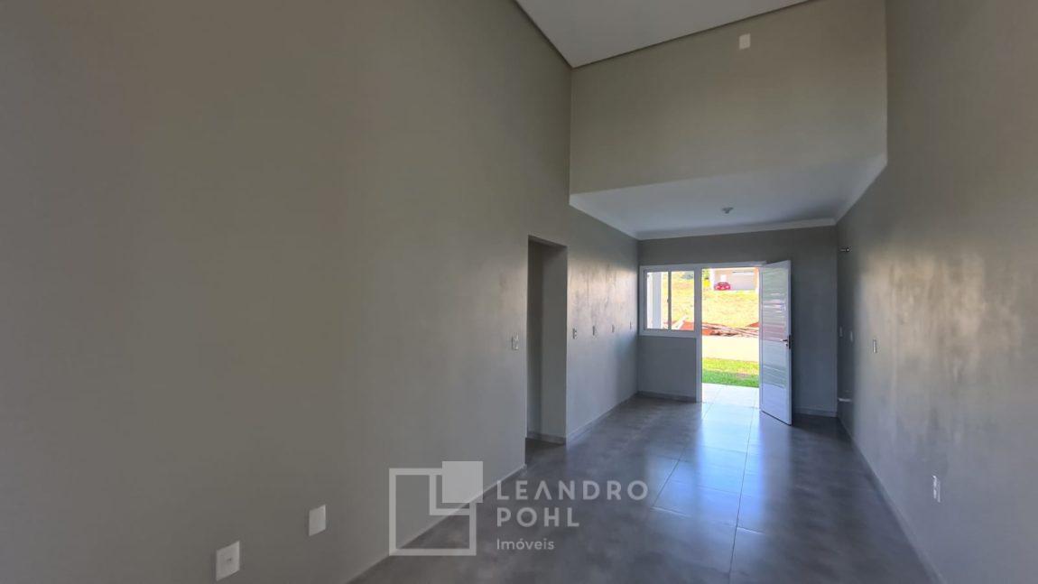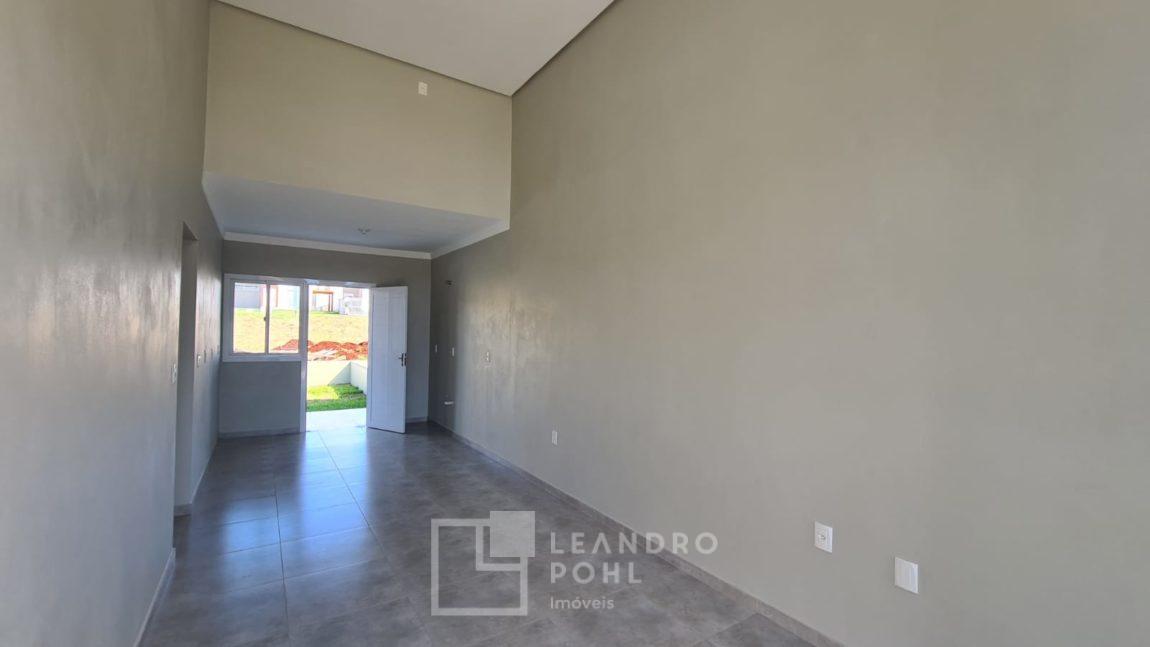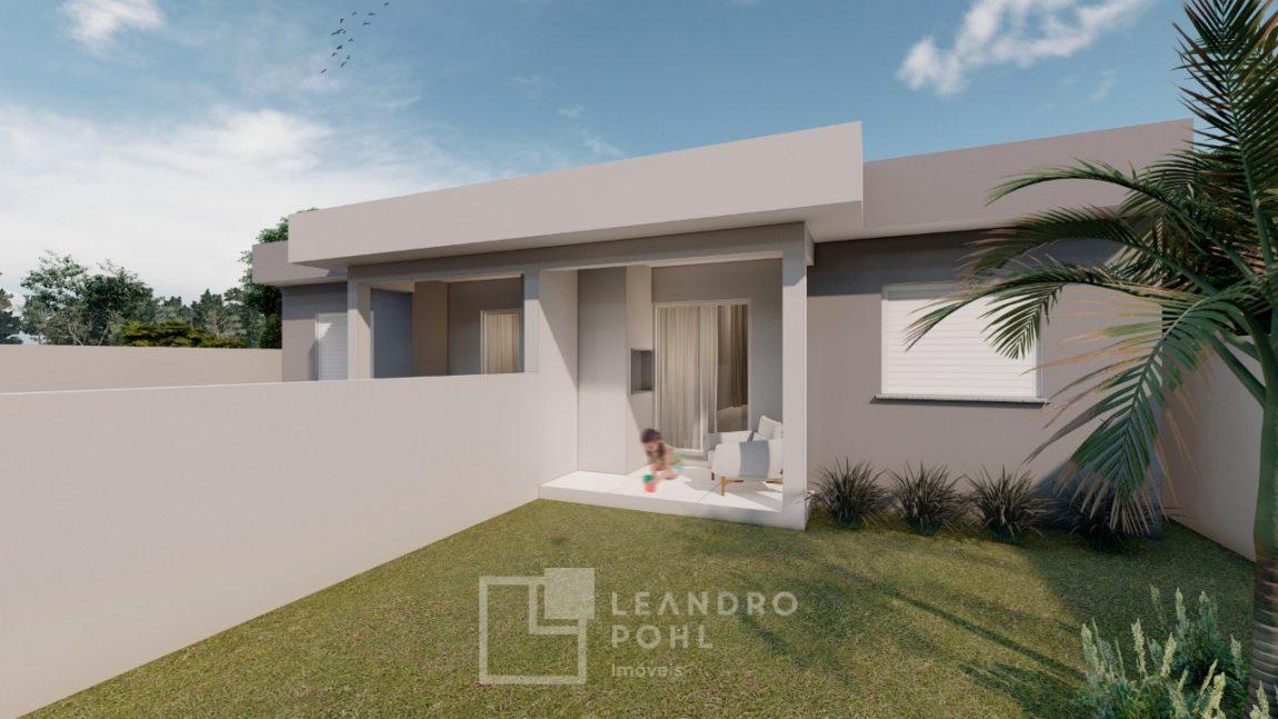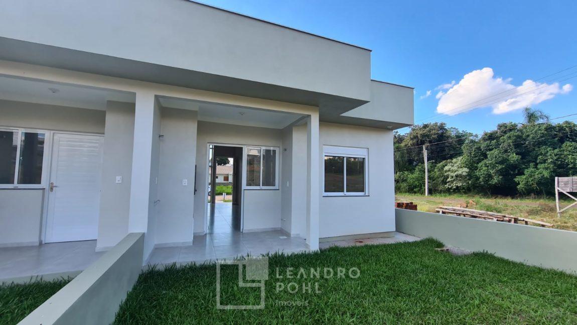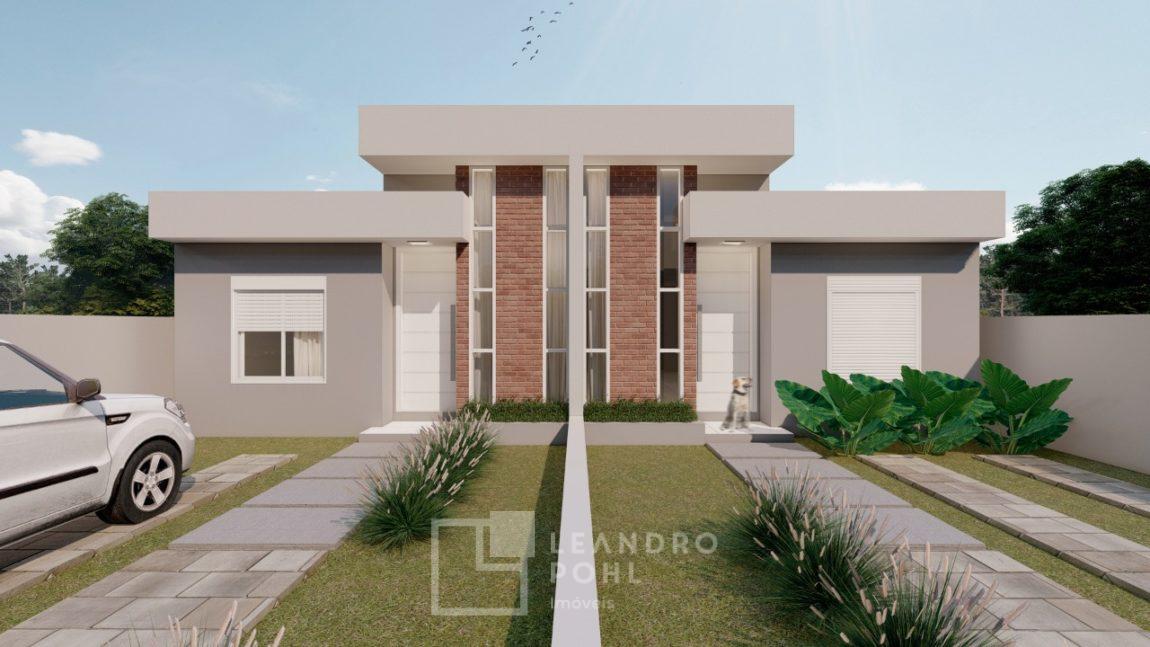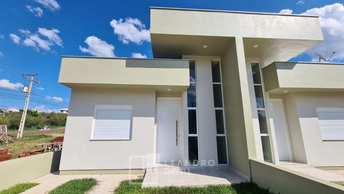 Residência Moderna 60,45 m², pé direito alto, 2 dormitórios, aberturas em alumínio e vidro, cozinha, banheiro social, piso cerâmico retificado ,azulejos retificados, churrasqueira, varanda com lavanderia coberta, rebaixe em gesso, pátio frente e fundos com muros, espera para água quente, gás central, rua com calçamento.