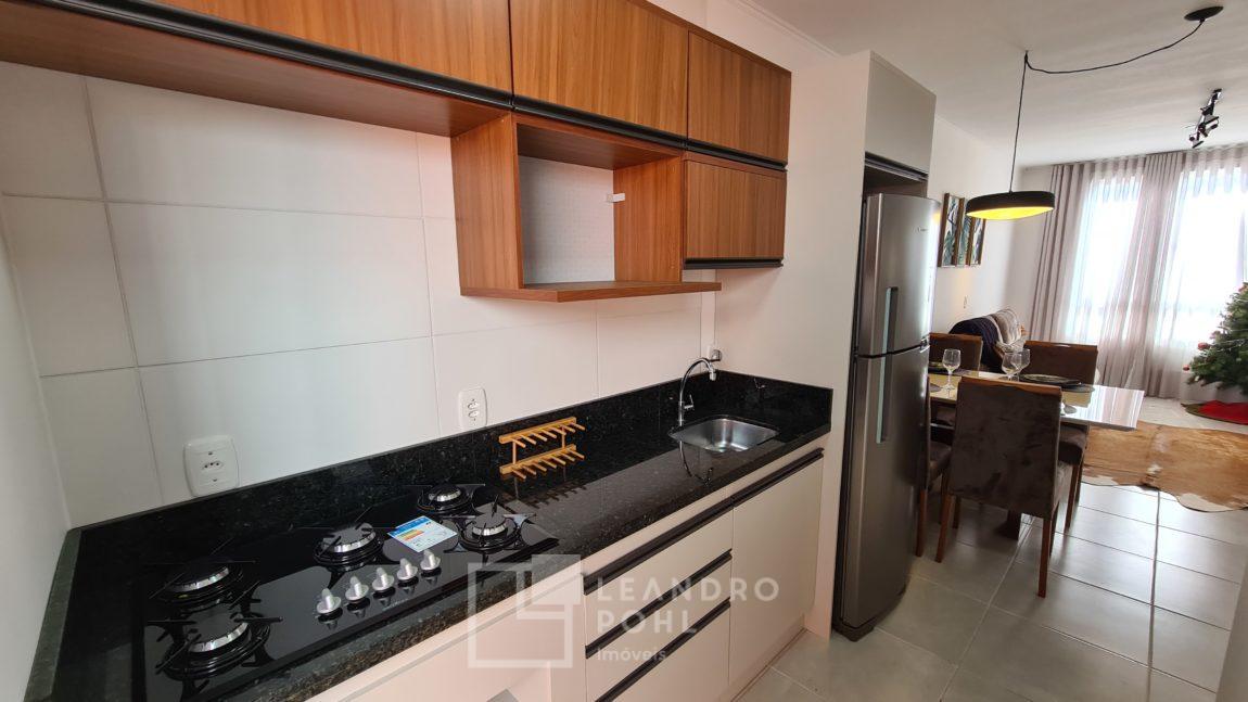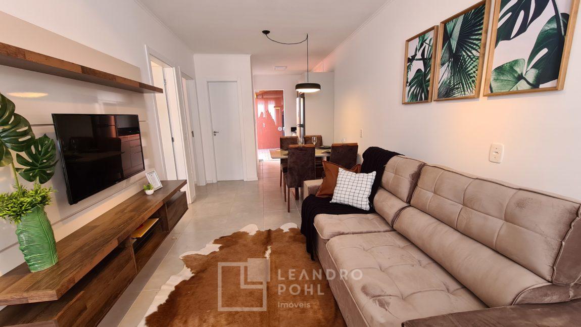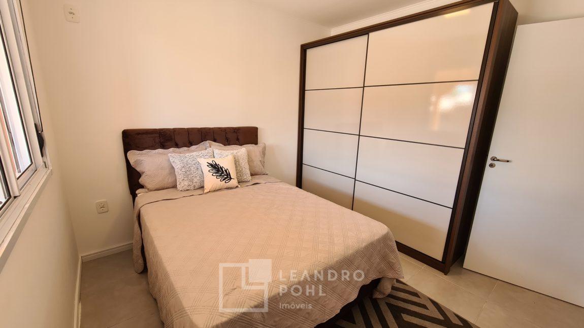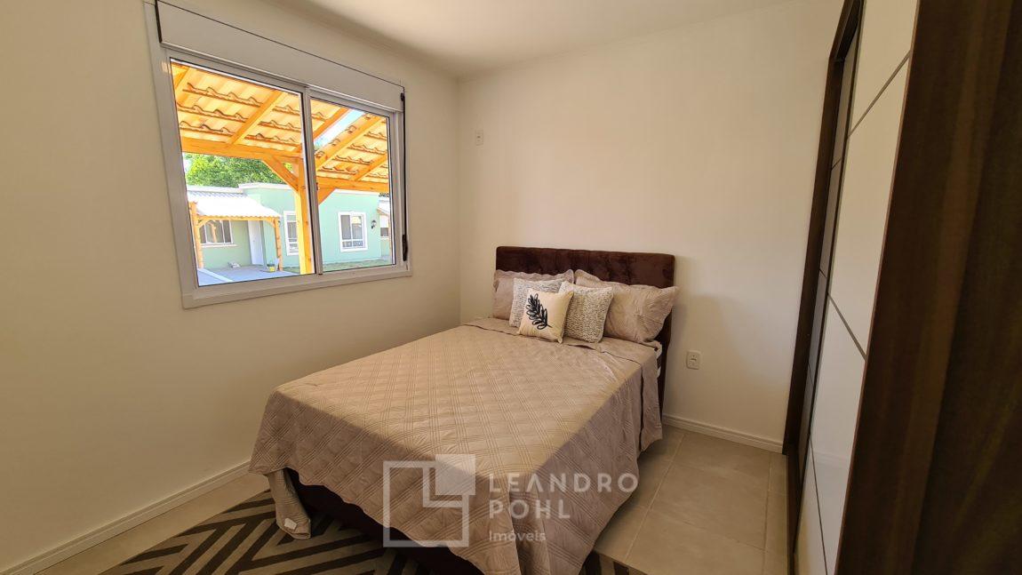 Casa 2 dormitórios, MOBILIADA e decorada, piso cerâmico, churrasqueira, frente oeste, em condomínio fechado.