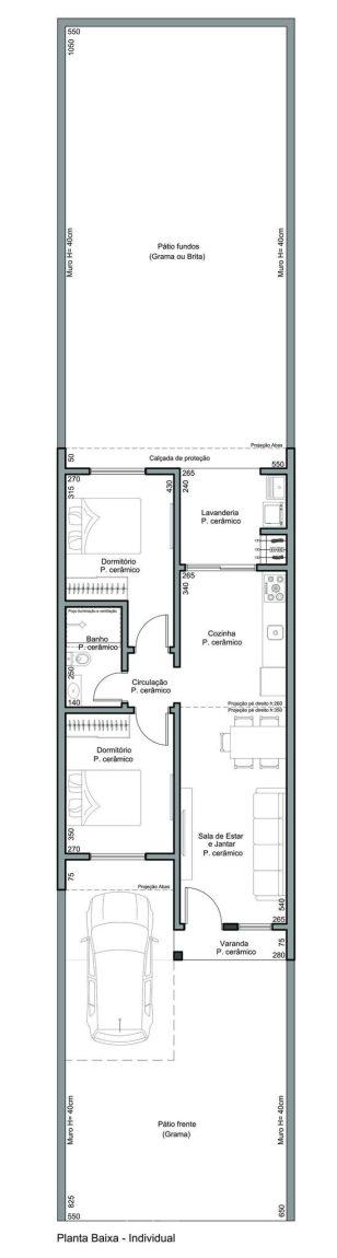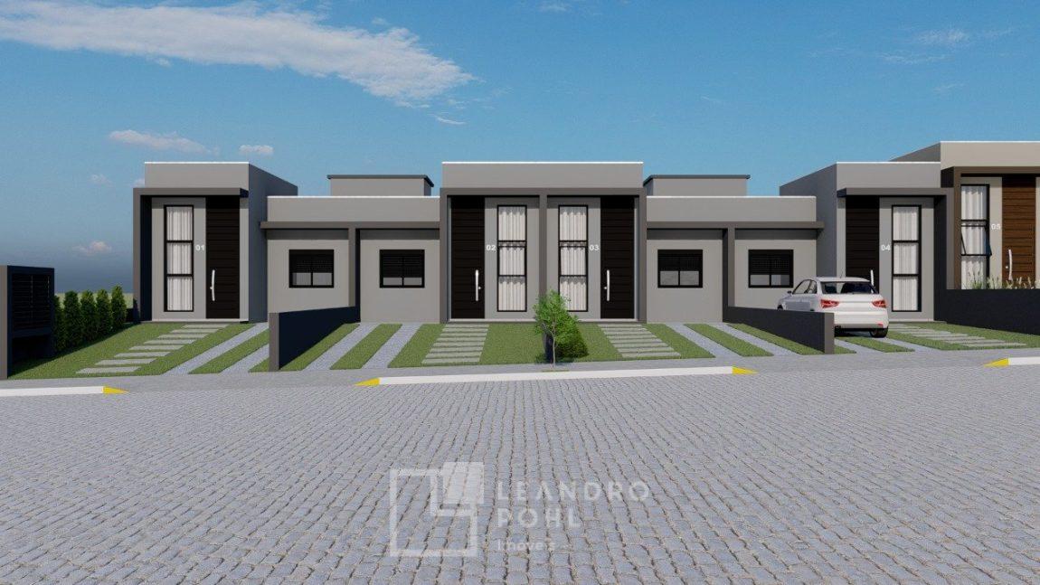 ● Casas Nº 01,04,05 e 08 : Área de 64,27 m², composta de 02 dormitórios, Banho social, lavanderia, churrasqueira, sala e cozinha integrada, pátio na frente e nos