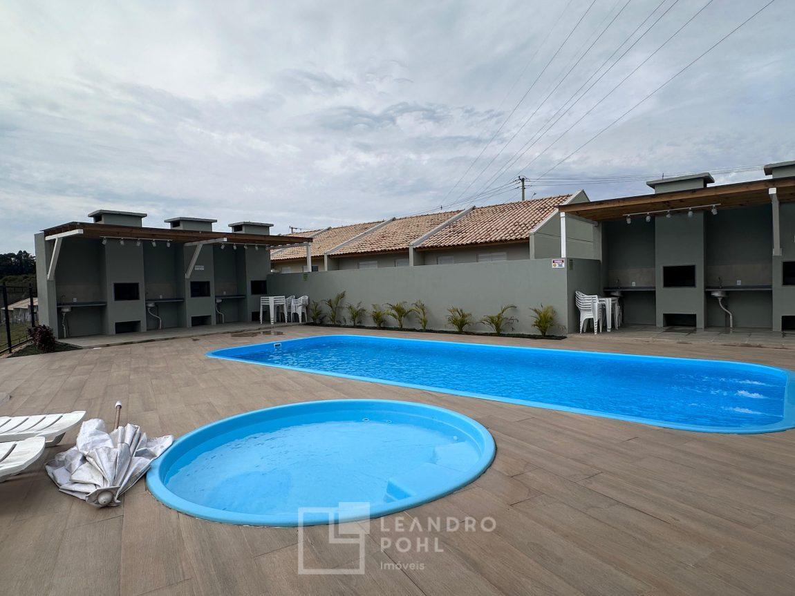 Condomínio Fechado de casas populares, são 130 casas, piscina adulta e infantil, 6 quiosques com churrasqueiras, salão de festas mobiliado e decorado, salão de jogos mobiliado e decorado, campo de futebol, Fireplace, horta comunitária, playground, pista de caminhadas, paisagismo.