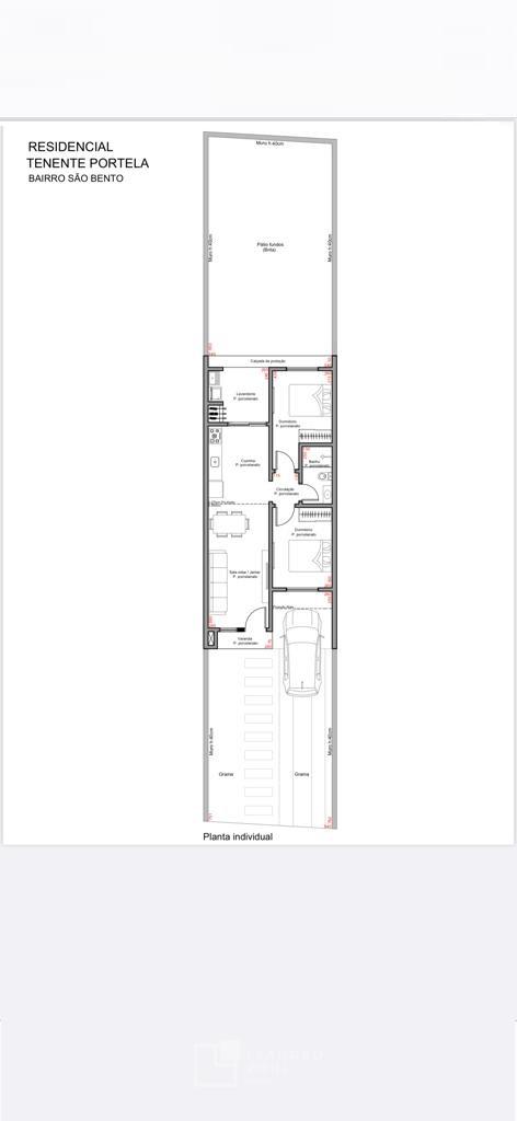 integrada, pátio na frente e nos fundos (9,40 x 5,40) m.
