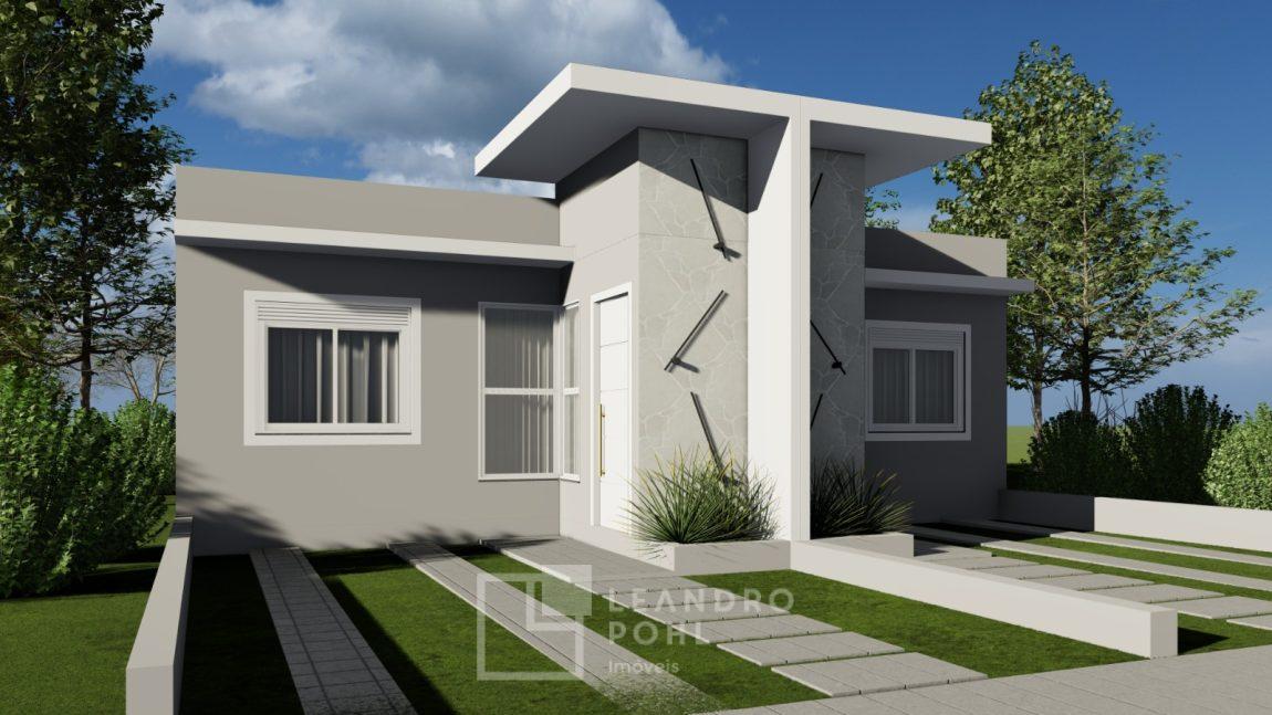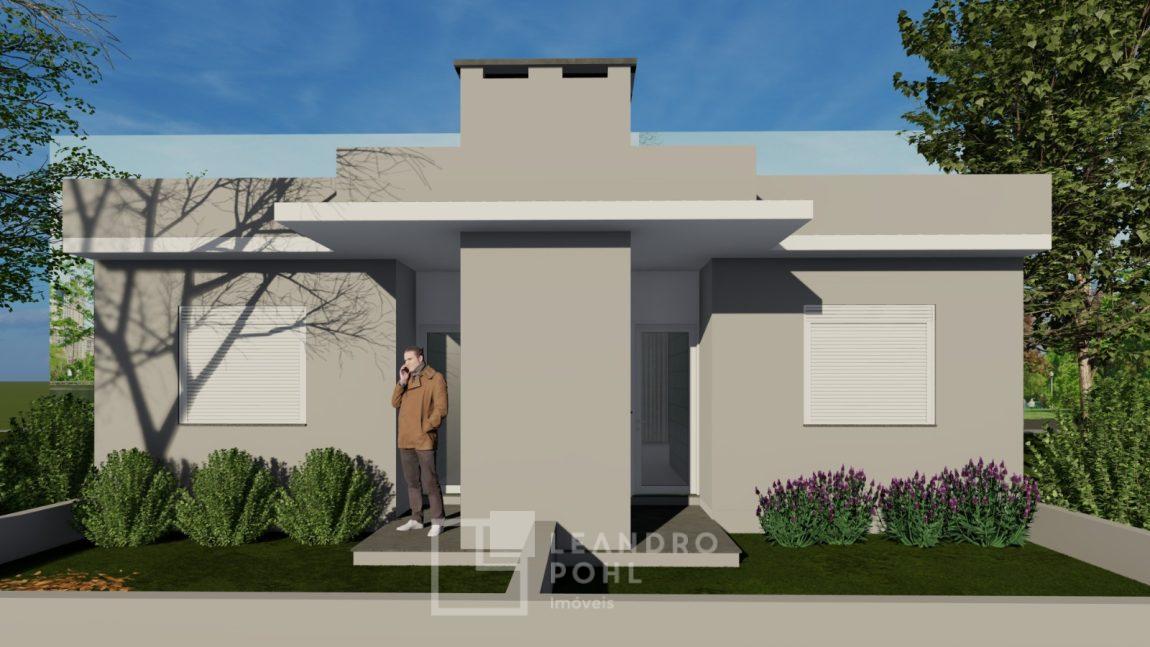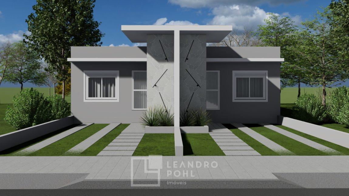 Casa geminada, 2 dormitórios, sala de estar e jantar, cozinha, varanda, banheiro, churrasqueira, pátio nos fundos com 15m², vaga para estacionamento.