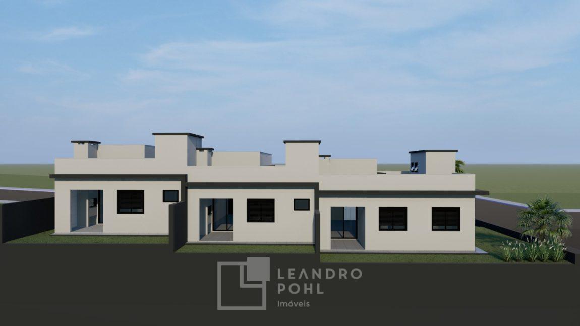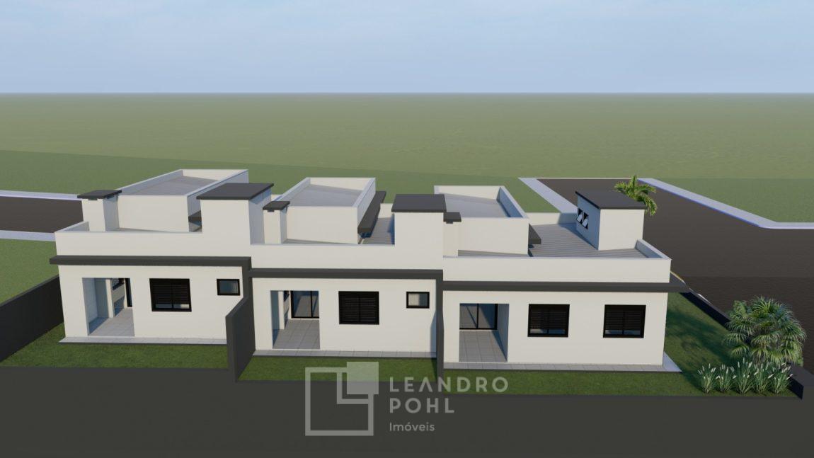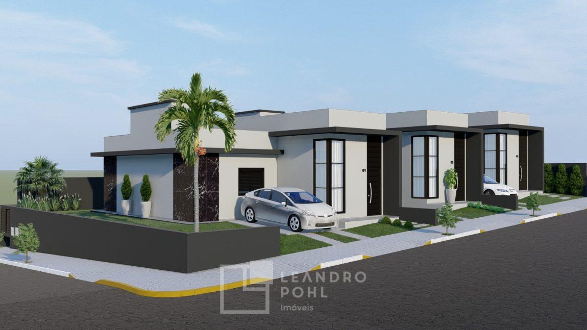 Casa Nº 01 (esquina): Área de 84,13 m², composta de 01 suíte + 02 dormitórios, banho
