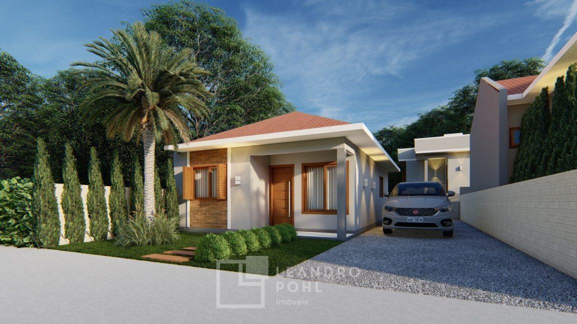 Casa 1 - Santa clara do sul, 2 quartos, banheiro, vaga de garagem, sala de estar, área de serviço, jantar e cozinha integrados, pátio grande nós fundos, área de 60.23.m2, aberturas em alumínio, piso porcelanato.