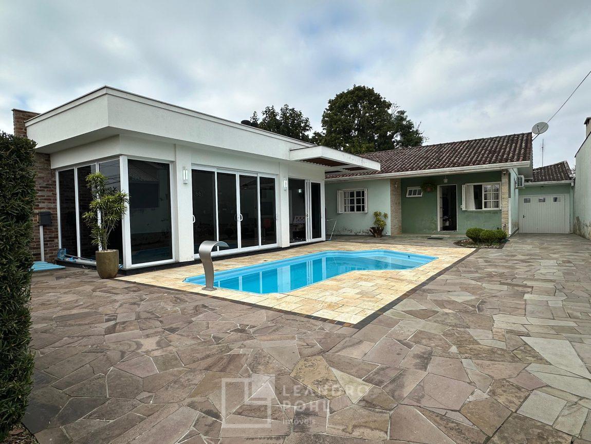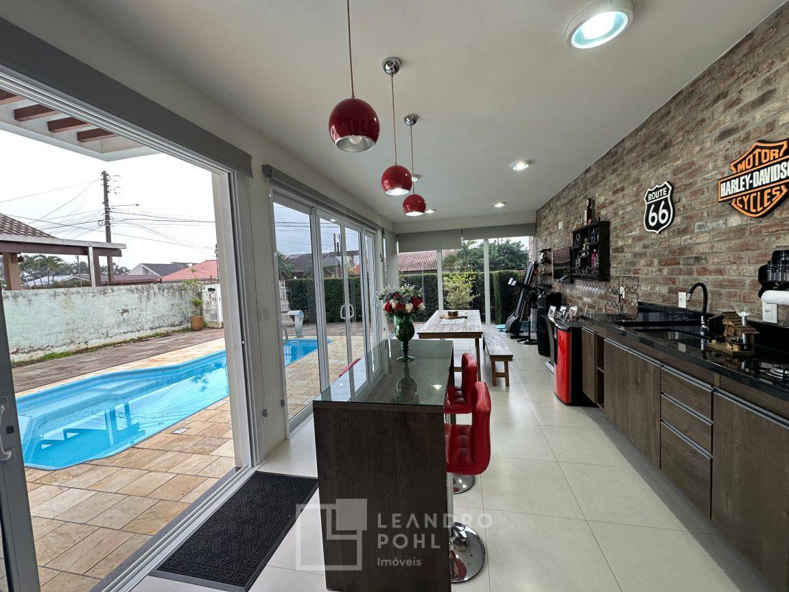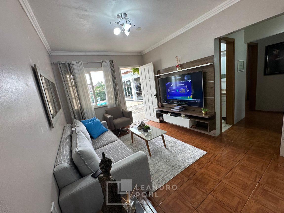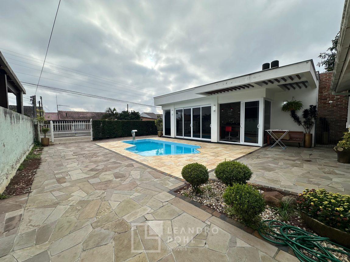 Casa plana, com quiosque voltado para piscina, garagem coberta + vagas descobertas, pátio com piso em pedra basalto, excelente localização, estuda apartamento de 2 quartos no centro de Lajeado na negociação!