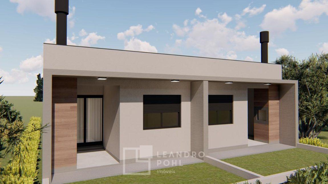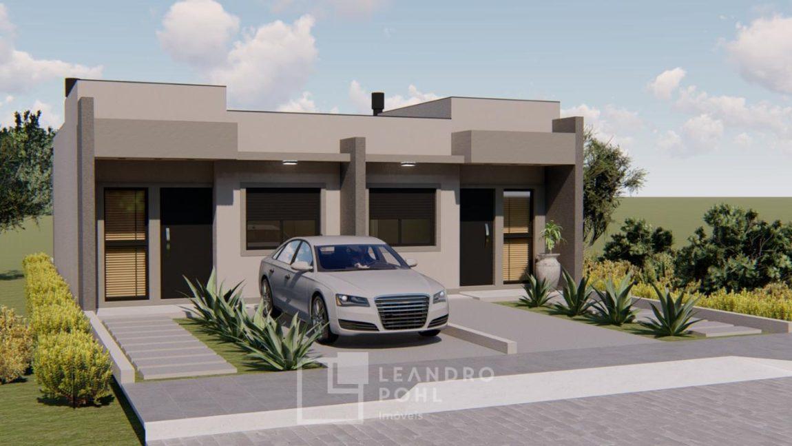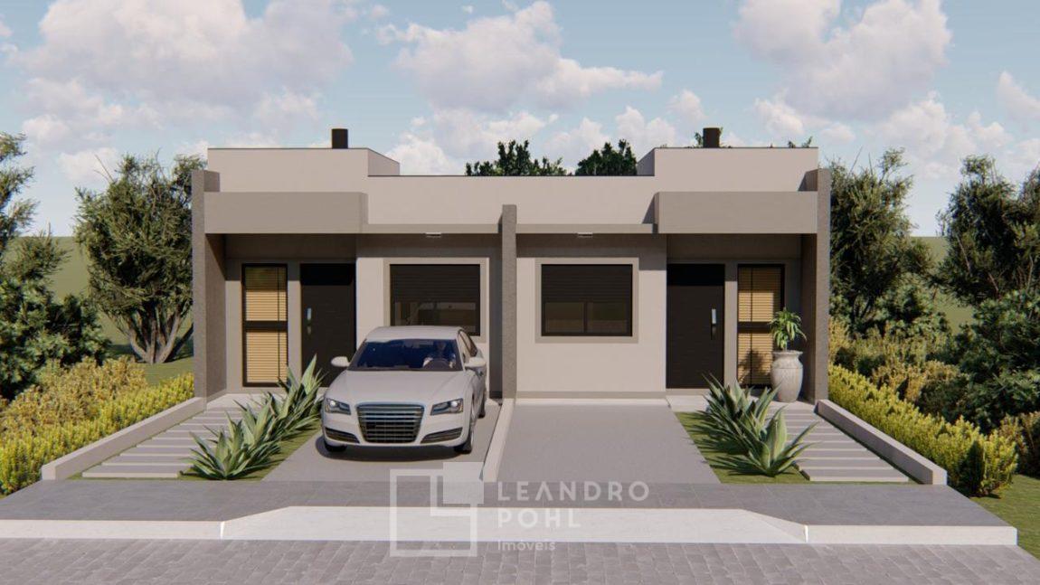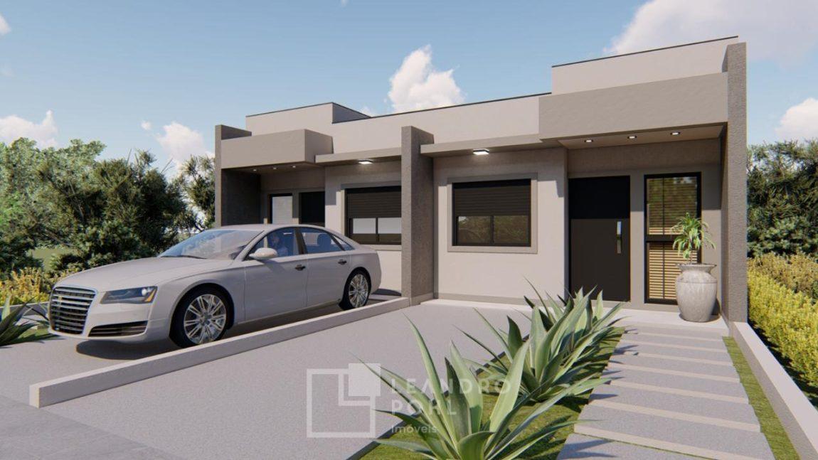 Casas geminadas com 2 dormitórios, com 56,93 m². aberturas externas em alumínio branco, porcelanato, pé direito alto na sala estar.