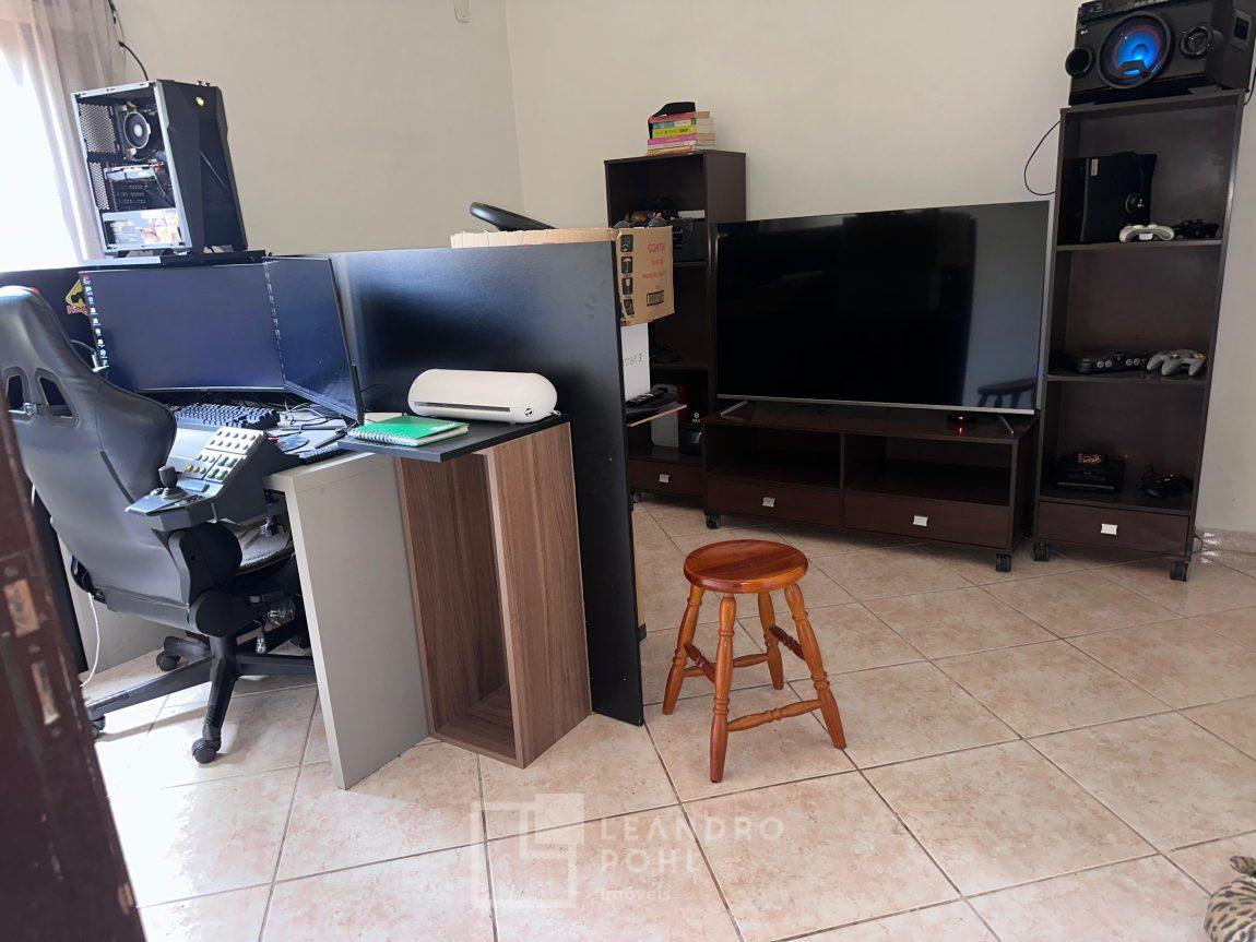 2 dormitórios, sala, cozinha, dispensa, banheiro, churrasqueira, estacionamento, em piso cerâmico, área de serviço, cercada.
