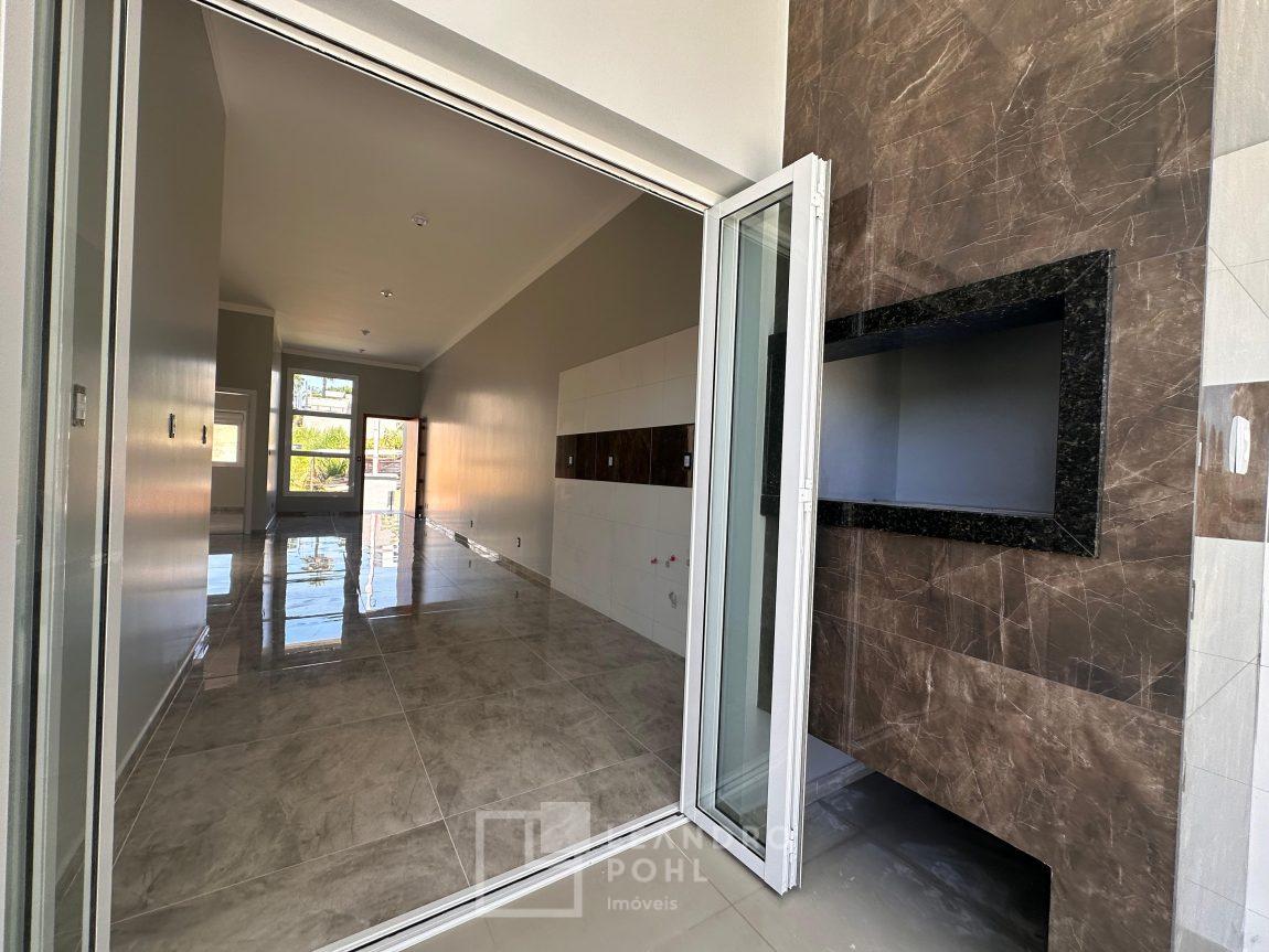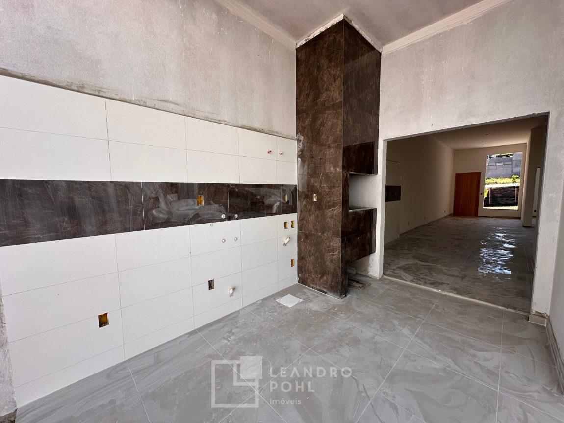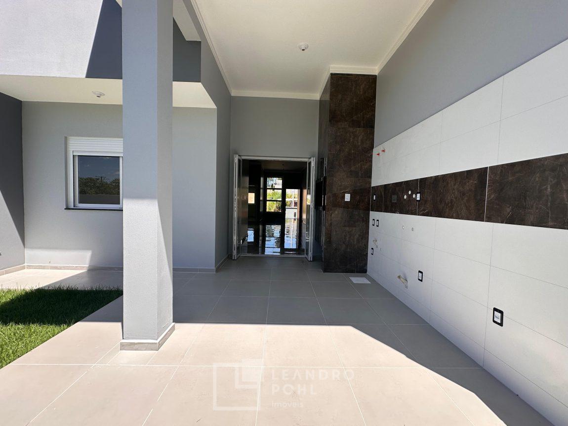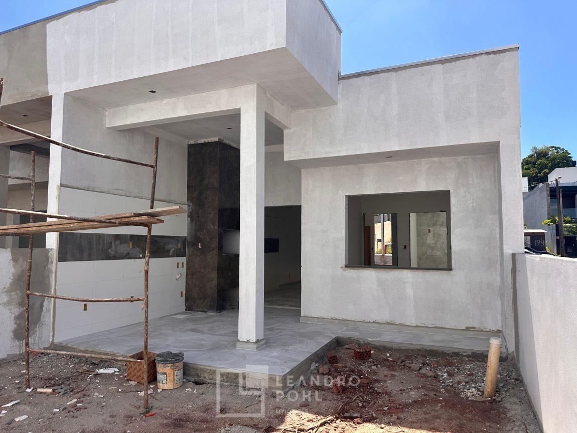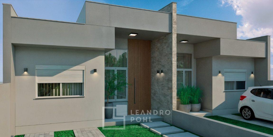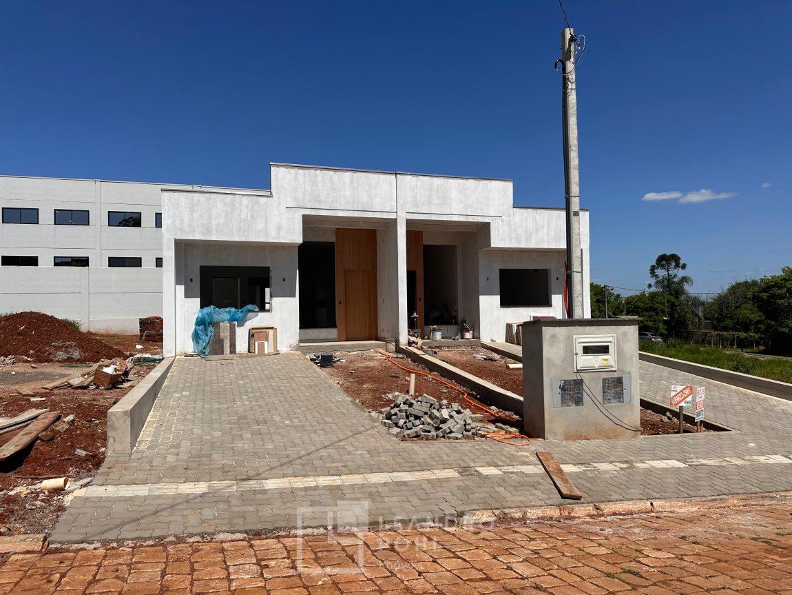 Casas geminadas em construção, com 2 suítes, lavabo, pátio fundos murado, pé direito alto, espera para split, agua quente e piscina, vagas de estacionamento descobertas, piso porcelanato, localizadas próximo da Univates!