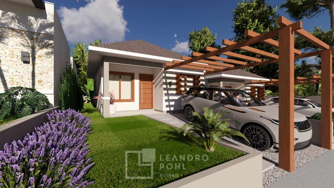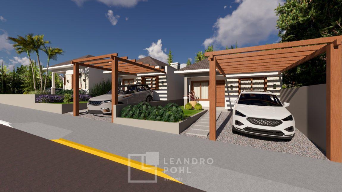 Casa geminada, em Santa clara do sul, 2 quartos, banheiro, plana, vaga de garagem, sala de estar, área de serviço, jantar e cozinha integrados, aberturas em alumínio, piso porcelanato.