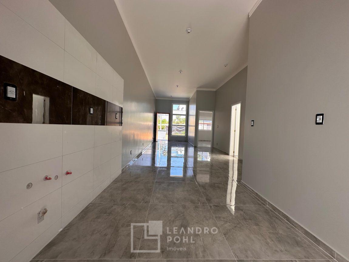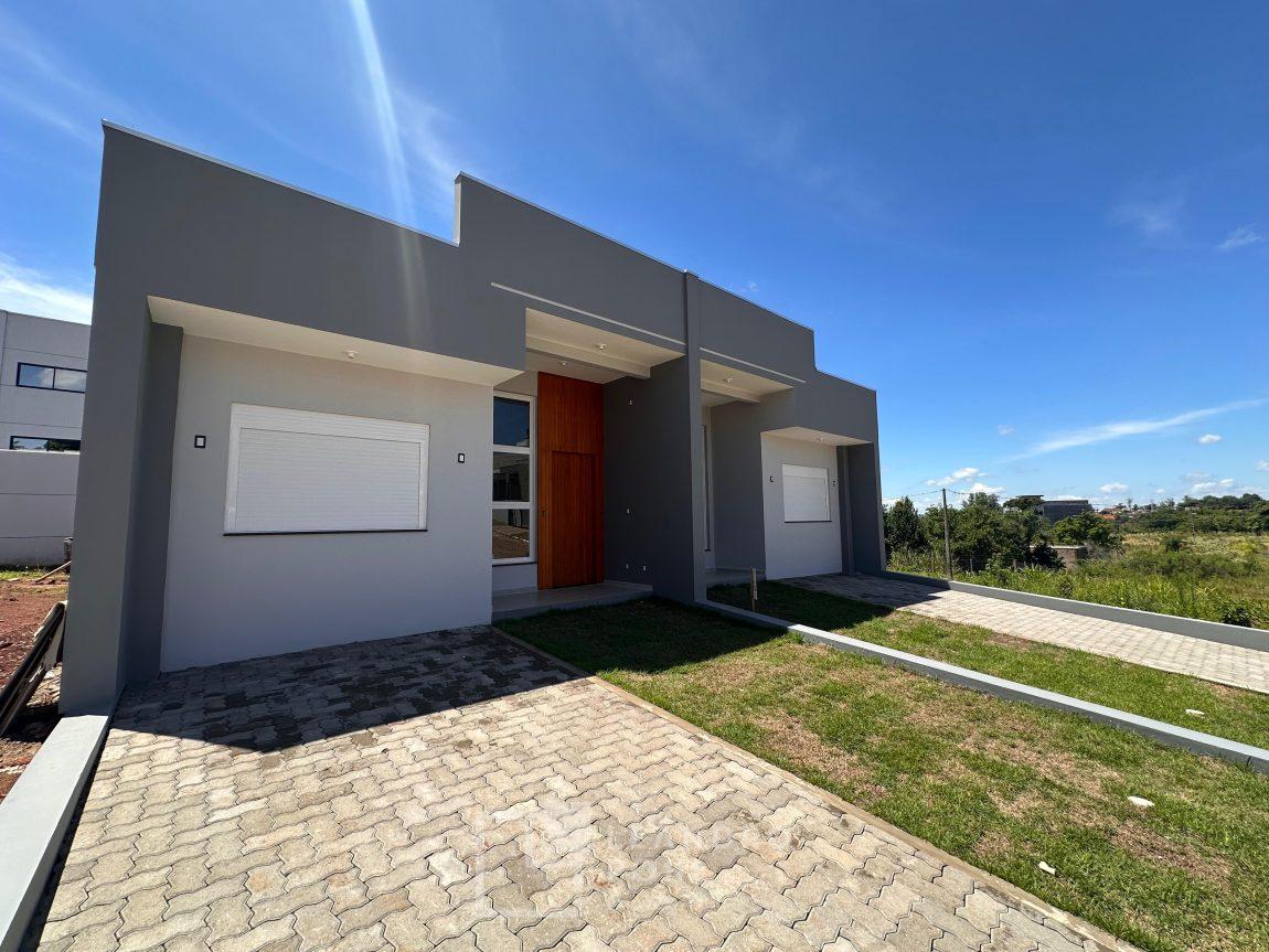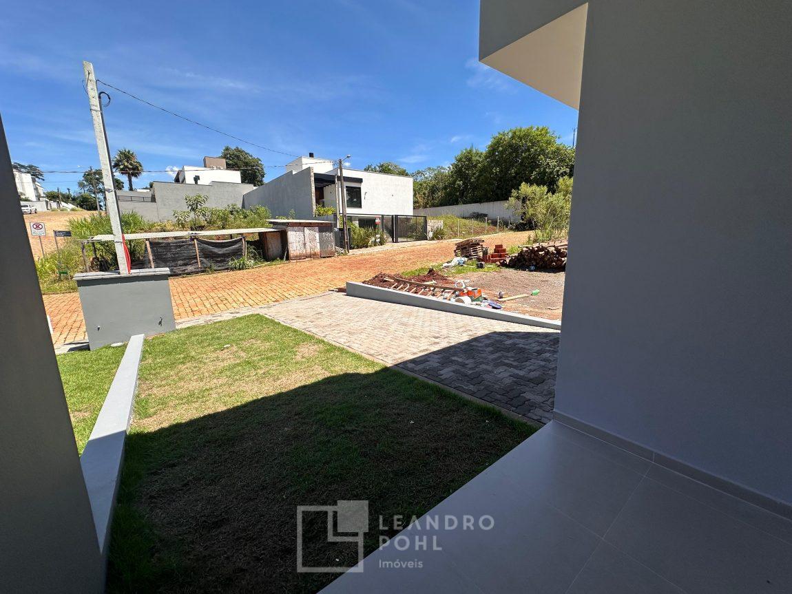 Casas geminadas em construção, com 2 suítes, lavabo, pátio fundos murado, pé direito alto, espera para split, agua quente e piscina, vagas de estacionamento descobertas, piso porcelanato, localizadas próximo da Univates!