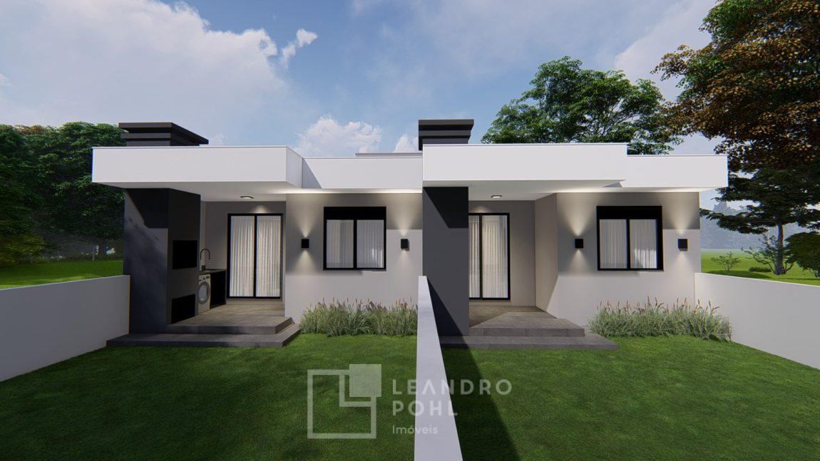 Apenas 2 casas geminadas, contendo 2 dormitórios, Sala de estar, Sala de jantar, Churrasqueira externa, Cozinha, Lavanderia (externa), banheiro social, vaga de garagem (possibilidade de 02 veículos um atrás do outro, Pé direito alto, Amplo pátio, Porcelanato em tons neutros em todos os ambientes, Azulejo aplicado no banheiro, cozinha e lavanderia, portas internas Branca com pintura UV