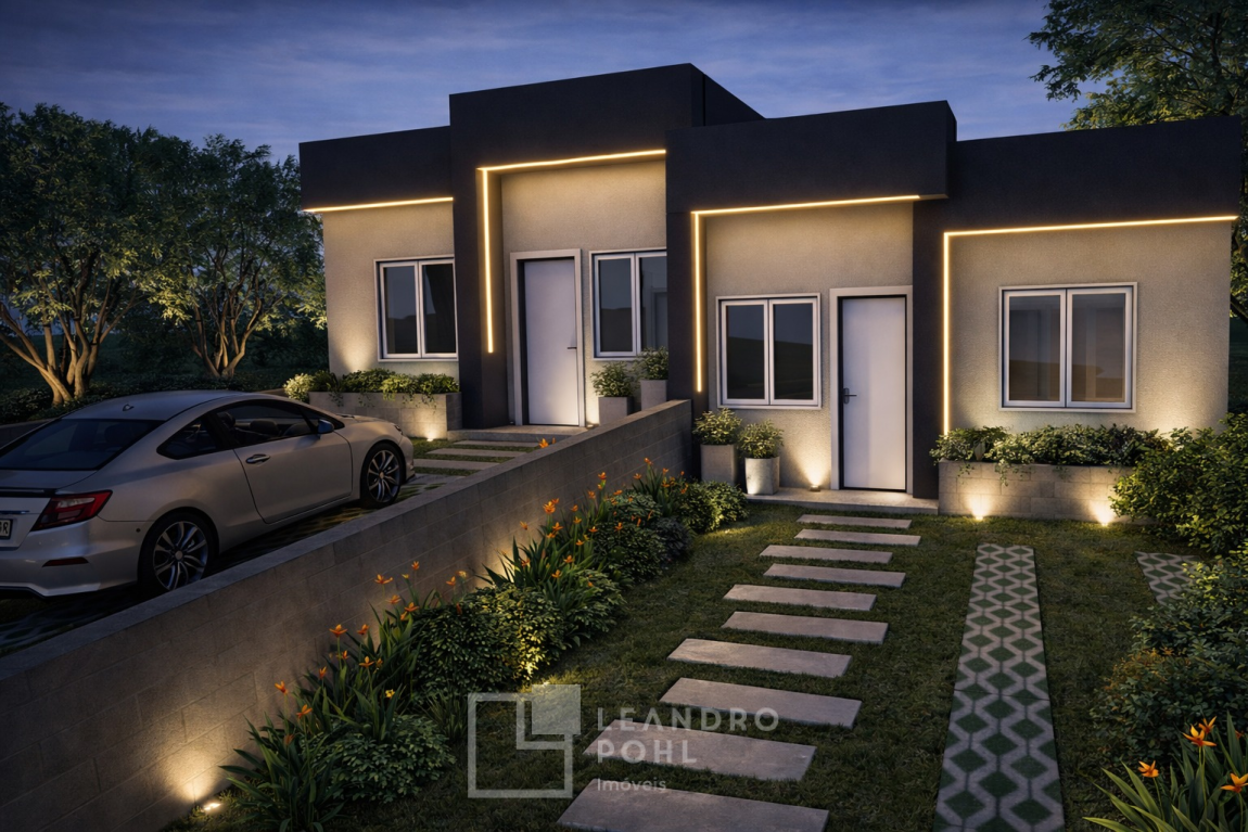Casa nova 2 quartos, sala e cozinha, lavabo, piso porcelanato, espaço gourmet, área de serviço, churrasqueira, pátio nos fundos.