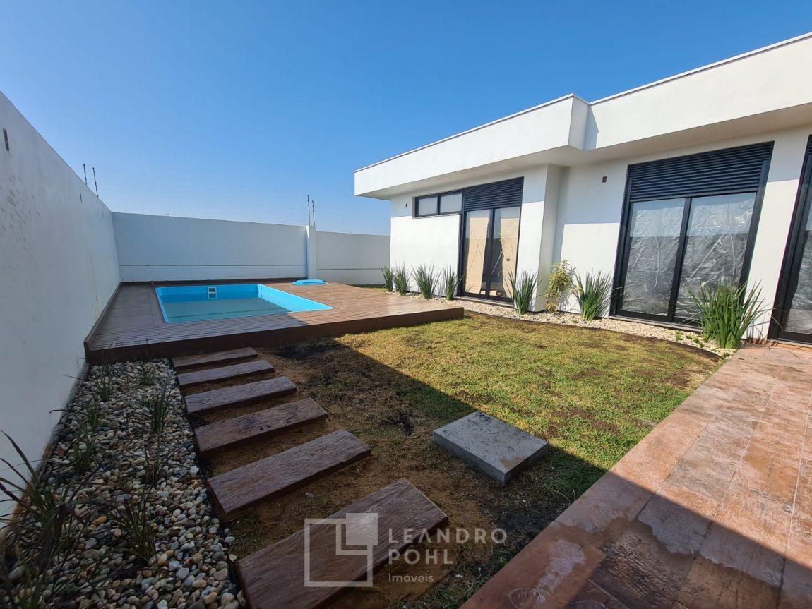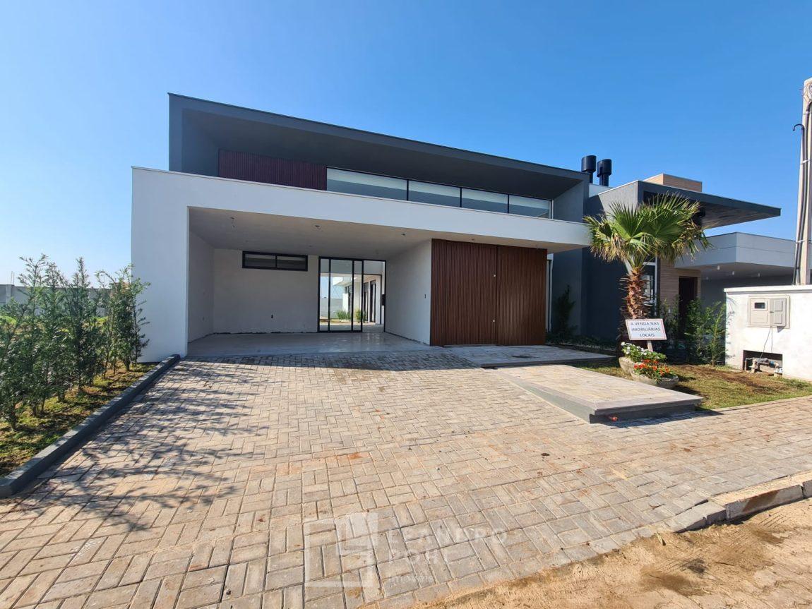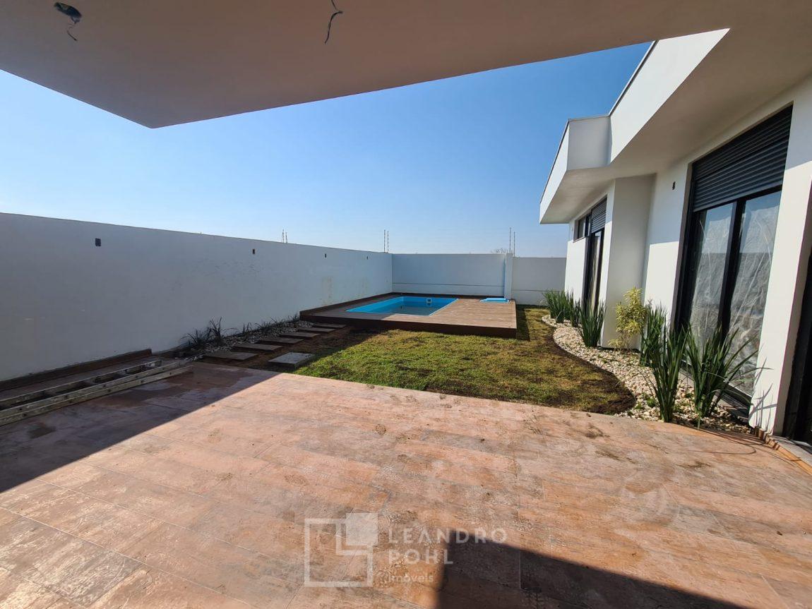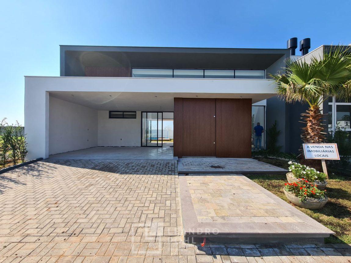 Casa 3 dormitórios em Condomínio Fechado com excelente infraestrutura, porcelanato, laminado nos quartos, gesso, esquadrias em alumínio, churrasqueira, esperas Split, água quente, pátio frente e fundos, alto padrão.