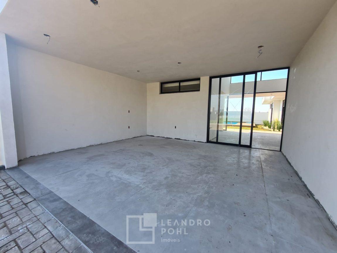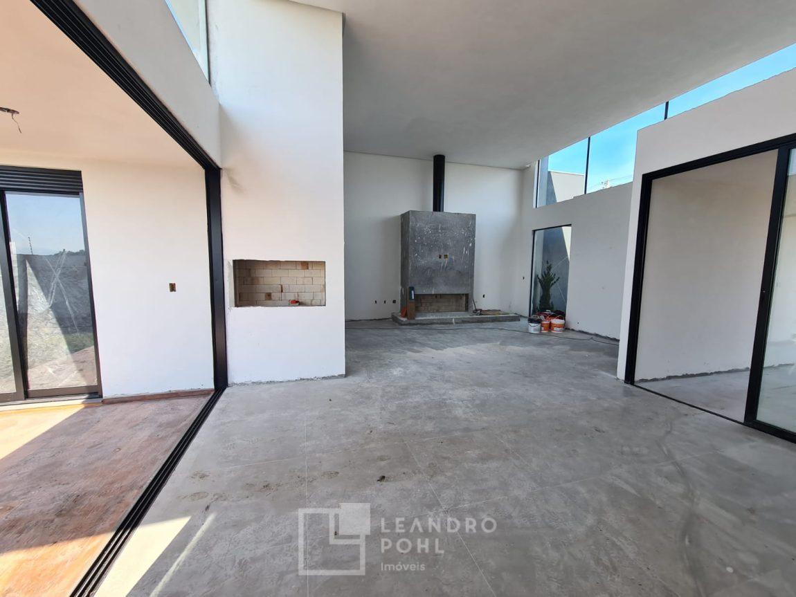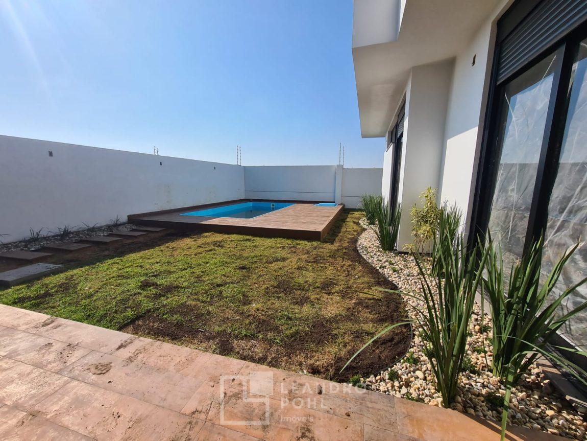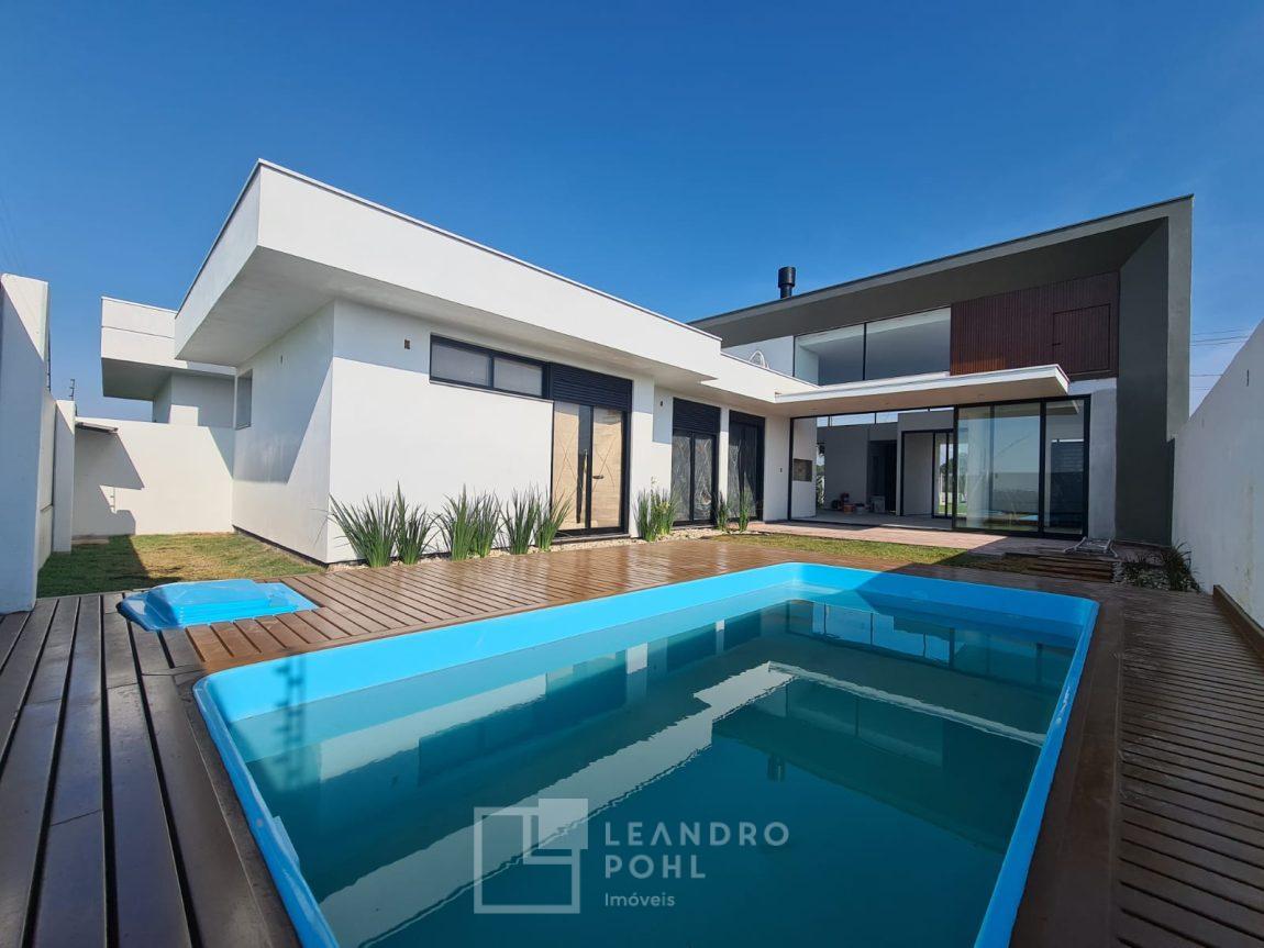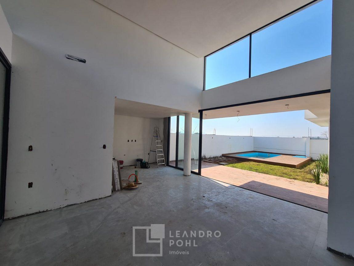 Casa 3 dormitórios em Condomínio Fechado com excelente infraestrutura, porcelanato, laminado nos quartos, gesso, esquadrias em alumínio, churrasqueira, esperas Split, água quente, pátio frente e fundos, alto padrão.