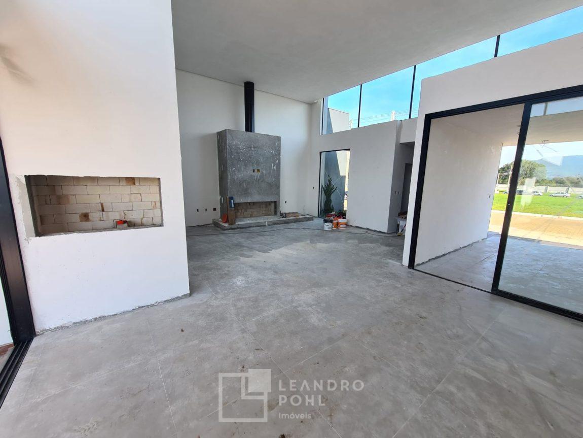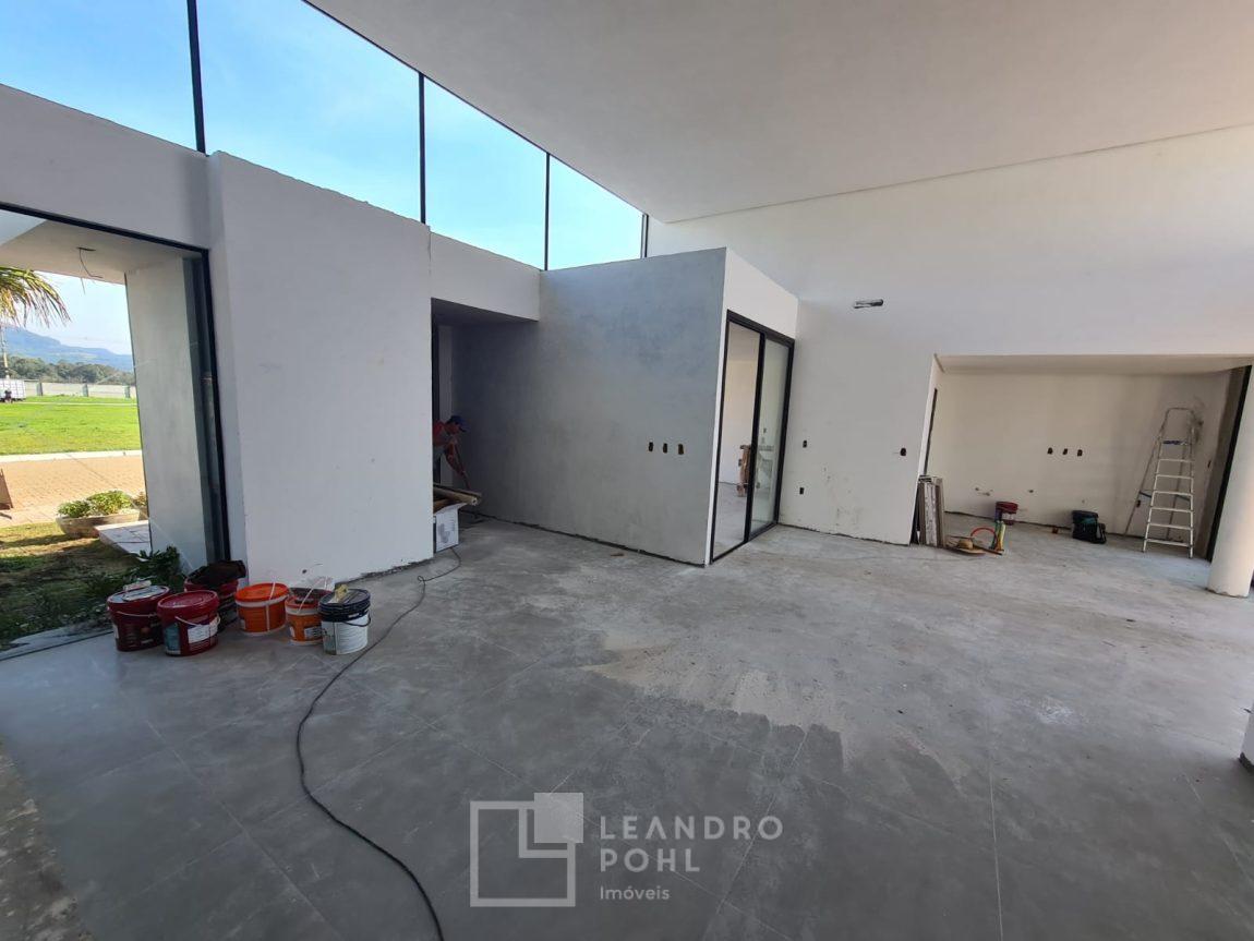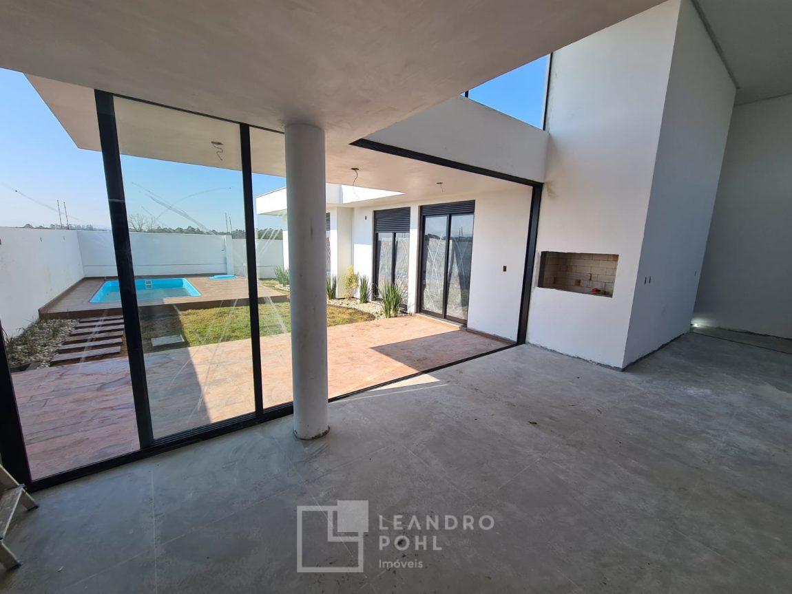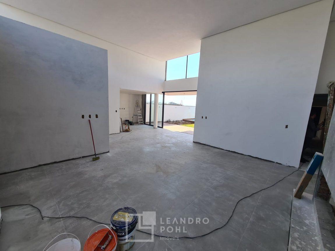Casa 3 dormitórios em Condomínio Fechado com excelente infraestrutura, porcelanato, laminado nos quartos, gesso, esquadrias em alumínio, churrasqueira, esperas Split, água quente, pátio frente e fundos, alto padrão.
