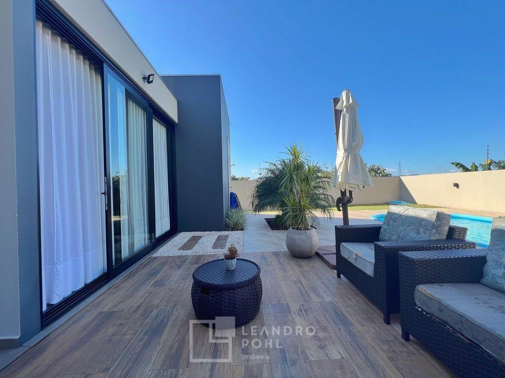 Casa moderna semi-plana, amplo pátio nos fundos com piscina. garagem para 2 carros(lado a lado). piso porcelanato e laminado, espera para água quente, gás central, persianas dos dormitórios automatizadas, terreno de 375m2.