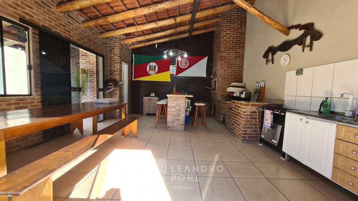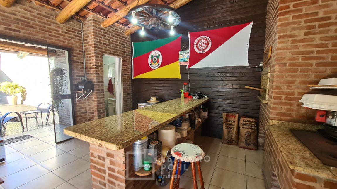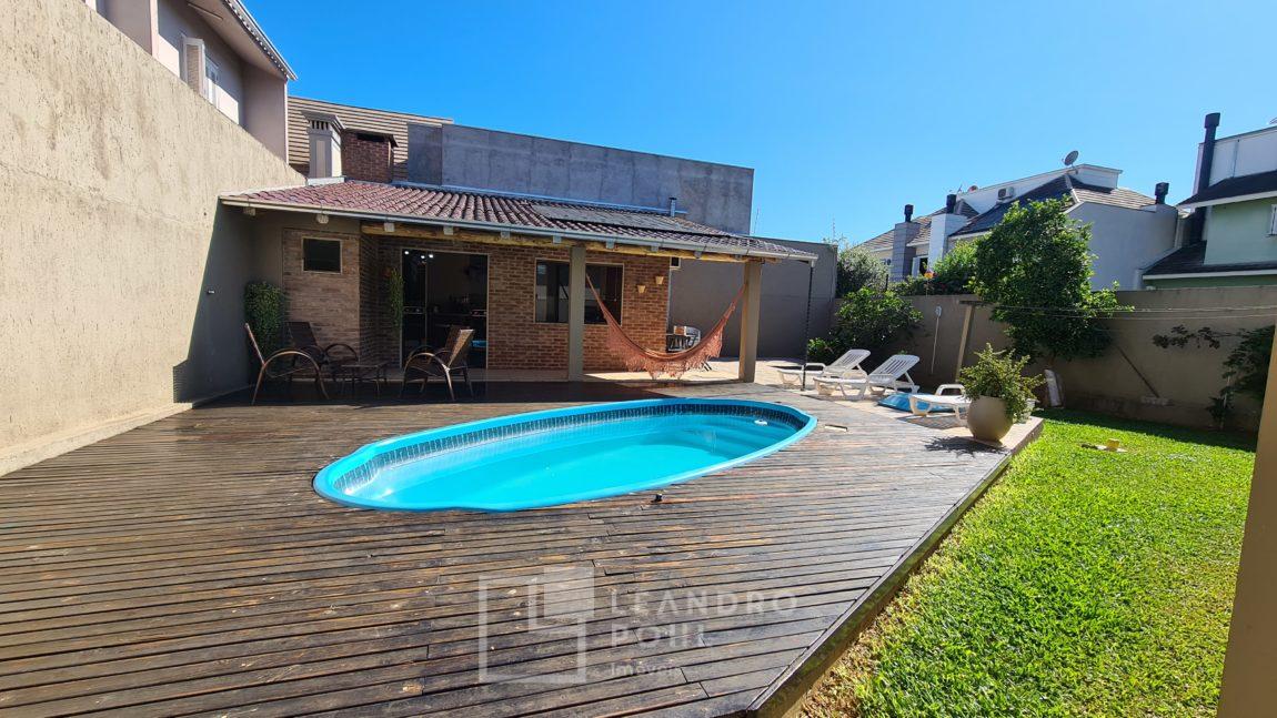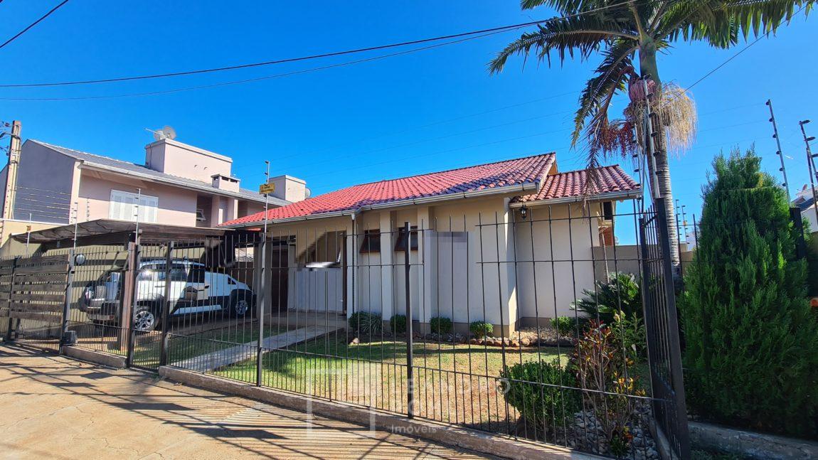Casa 3 dormitórios, suíte, cozinha separada com mobília, sala de estar com lareira, banheiro social + lavabo, piscina, quiosque, energia fotovoltaica, câmeras de segurança interna e externa, pergolado coberto, cercada e murada, excelente localização.
