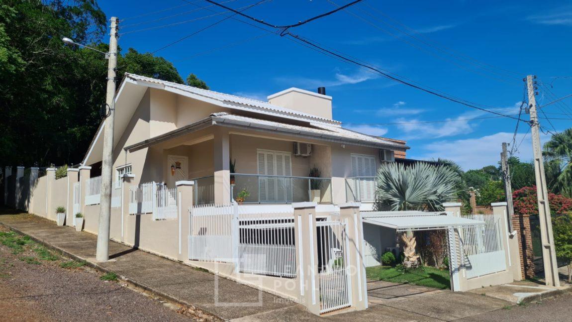Casa de esquina, lugar calmo, 3 dormitórios, sendo uma suíte, lavabo, garagem para dois carros, piscina com aquecimento solar, quiosque, área de churrasco com pergolado, permanecem 3 splits.