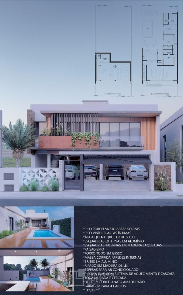 Residência de alto padrão, localizada no Bairro Universitário., com vista privilegiada, são três suítes (sendo uma máster com closet), dois lavabos, pisos porcelanato e vinílico, aberturas externas em alumínio preto, aberturas internas em madeira com pintura em laca, rebaixo em gesso, massa corrida, piscina (3x6m) com cascata e aquecimento solar instalado, água quente com Boiler de 500l, garagem para quatro carros, murada, cercada e com portão eletrônico.