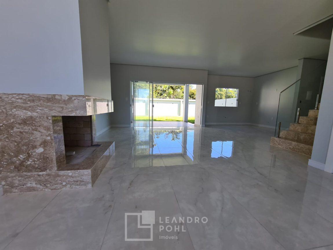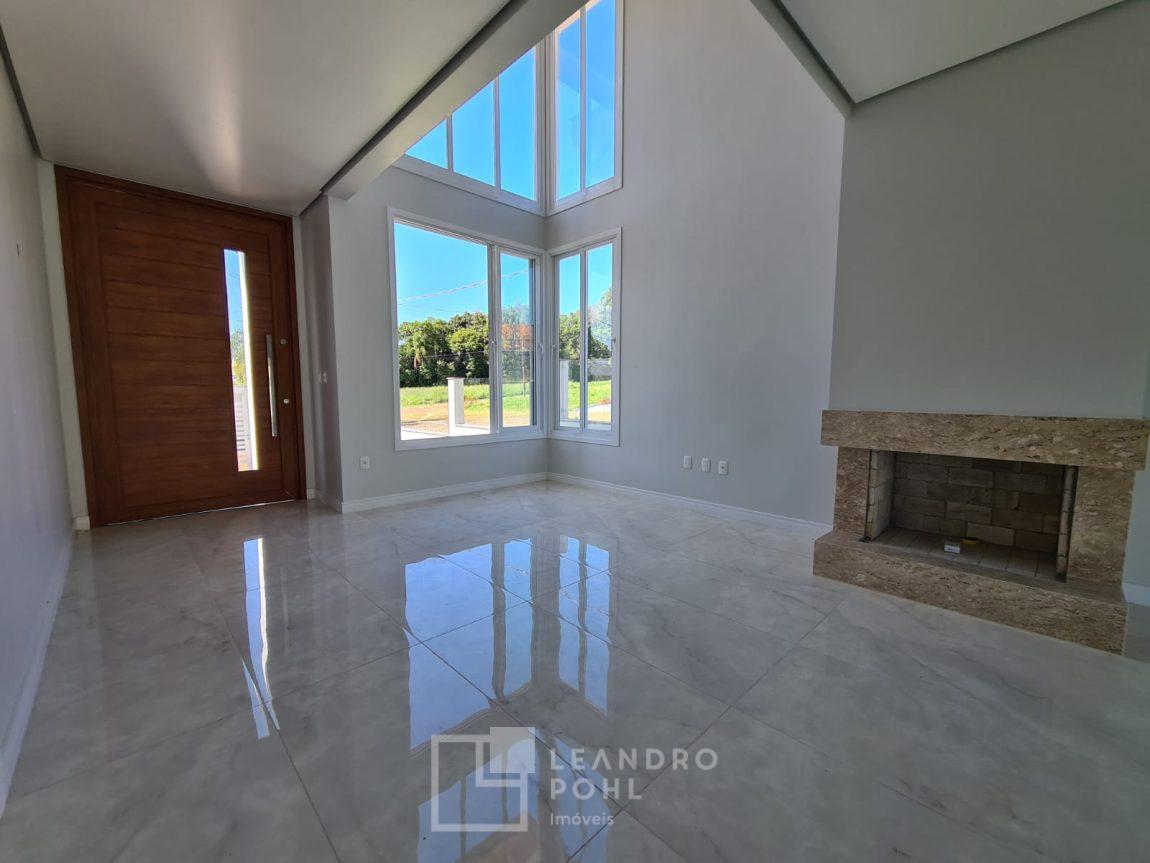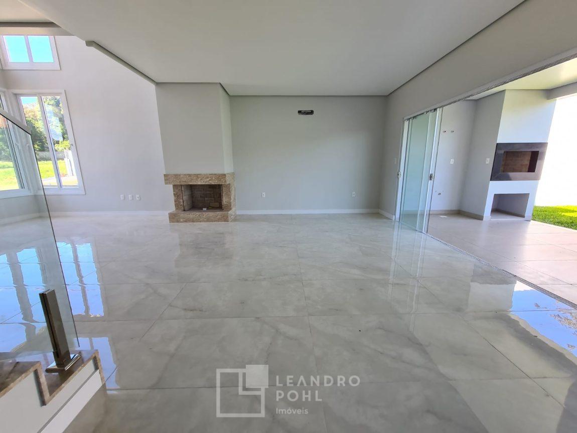 Sobrado de esquina com alto padrão de acabamentos, 3 suítes sendo uma máster com sacada, living integrado, sala de estar com lareira, cozinha americana, espaço gourmet voltado ao pátio com espera para piscina.