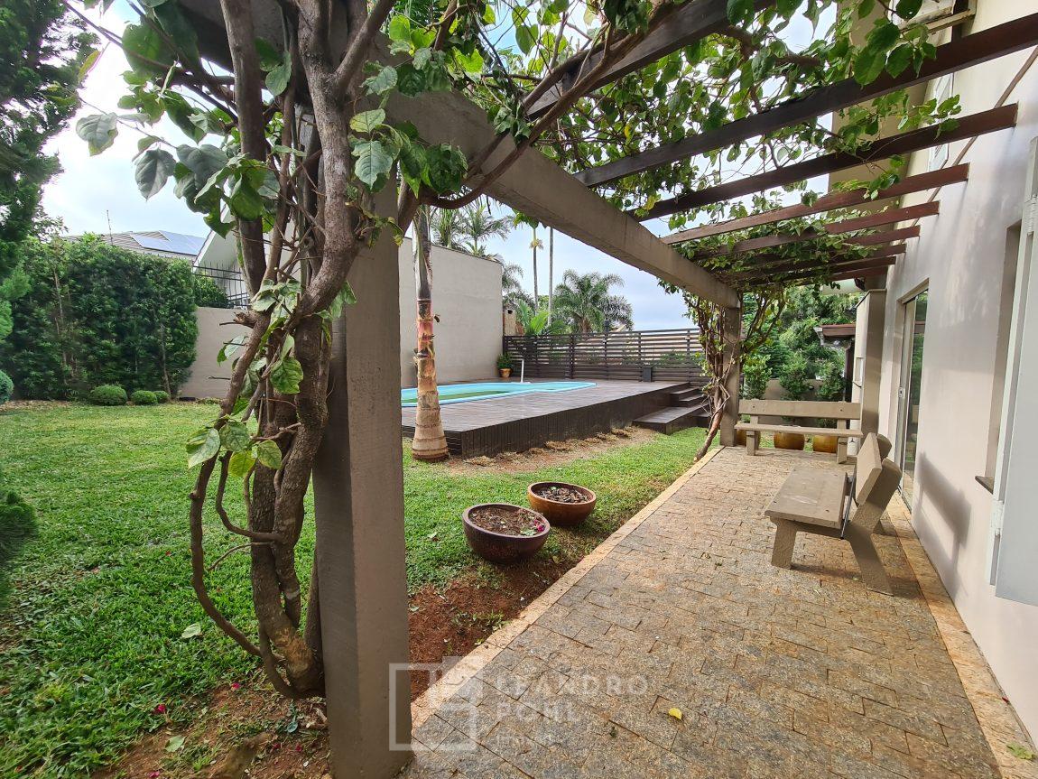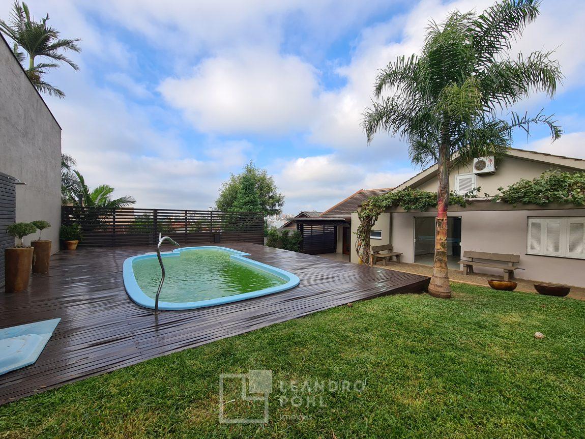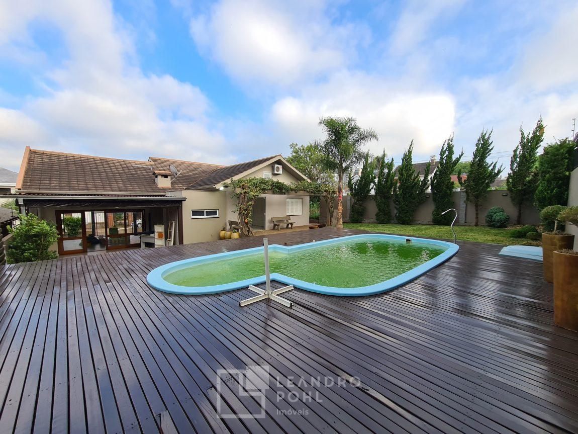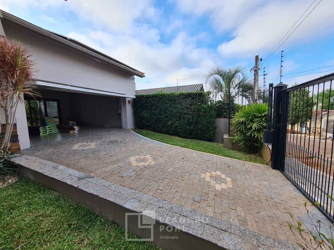 Casa 3 dormitórios, plana, suíte, SEMIMOBILIADA (cozinha sala de estar e jantar, split e persianas), sistema de segurança com cerca elétrica, lareira, churrasqueira, piscina com aquecimento solar, sistema de energia solar, portão eletrônico, posição solar oeste, passará por breve reforma (substituição do piso por vinilico,)