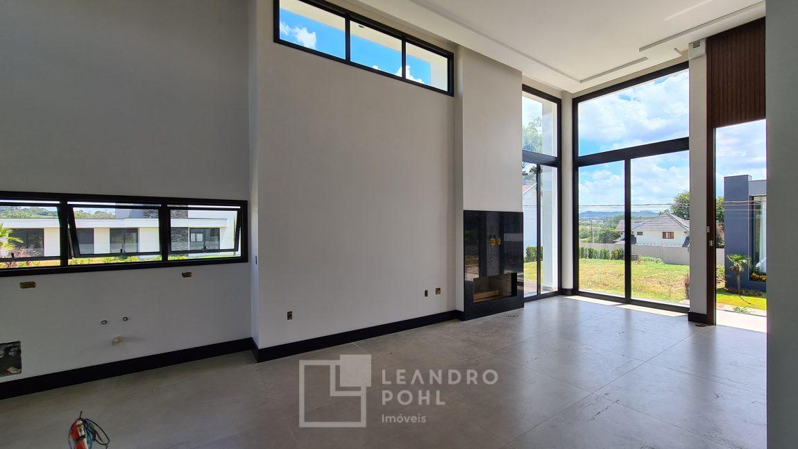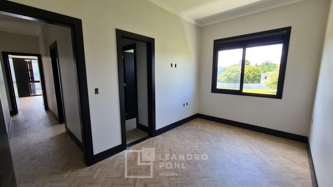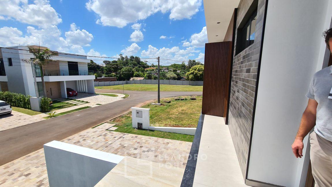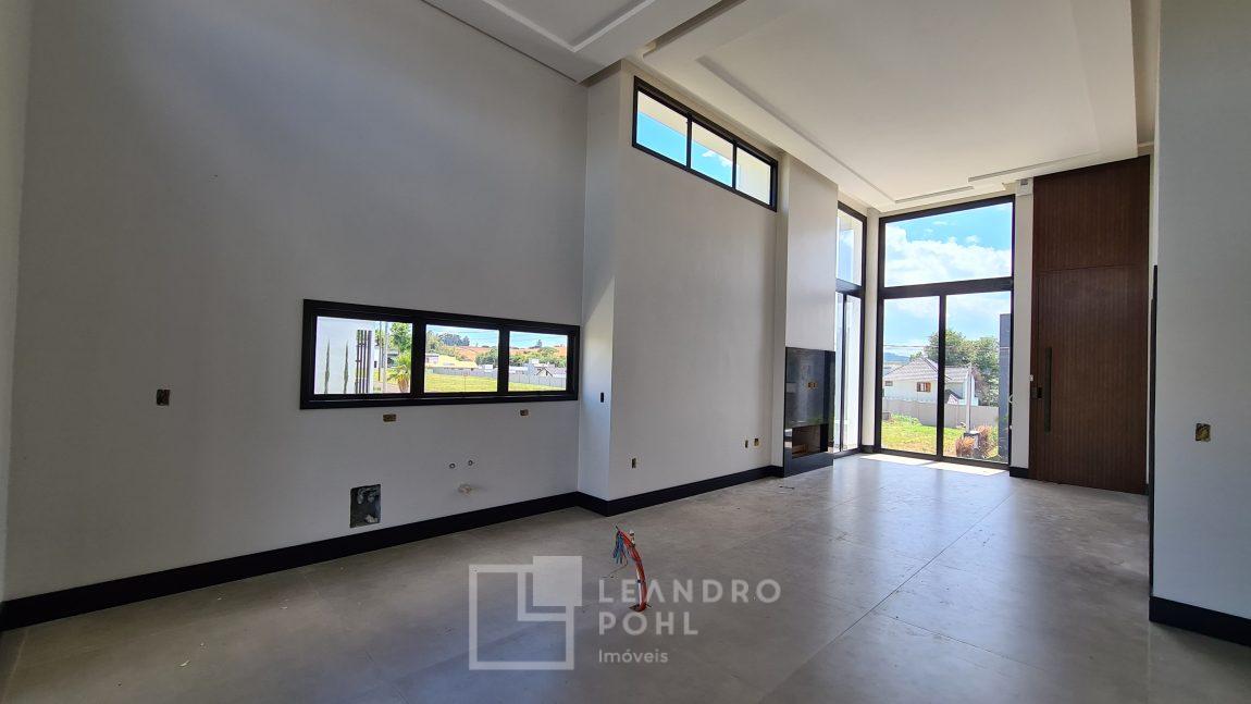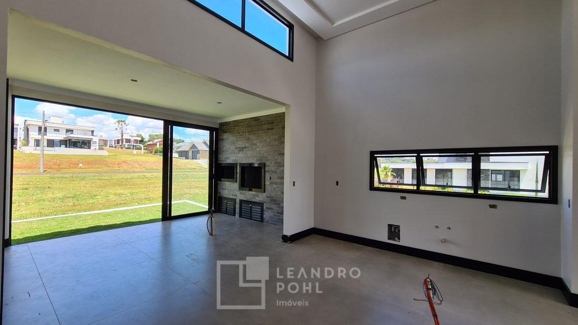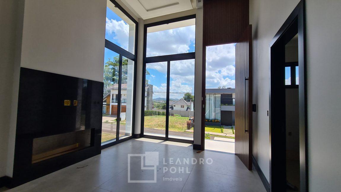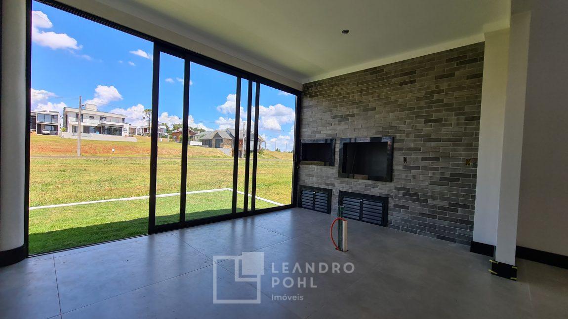 Casa em condomínio fechado com 03 dormitórios, sendo uma suíte master com closet, e 02 americanas, banheiro social, lavabo, sala estar e jantar com lareira, churrasqueira e bifeira, pé direito alto, pátio de fundos e garagem para dois carros, escritório, deposito e espaço gourmet, abertura em alumínio, fechadura da entrada eletrônica.