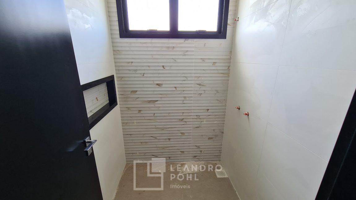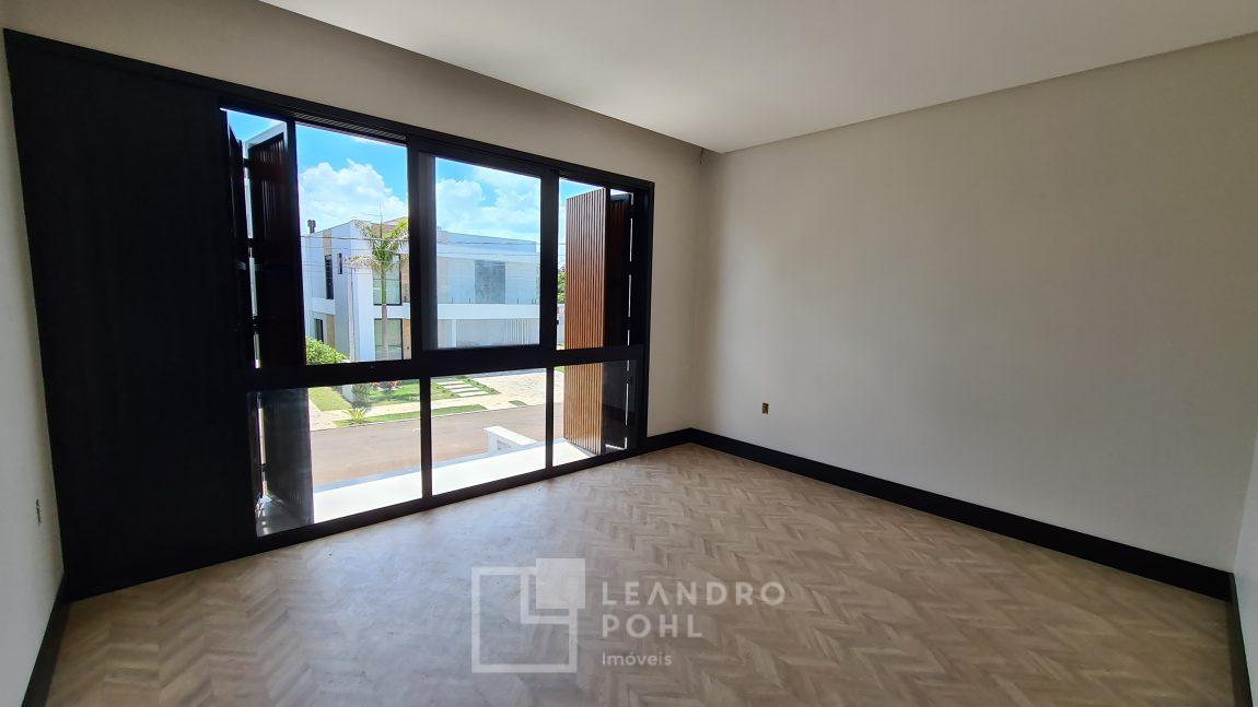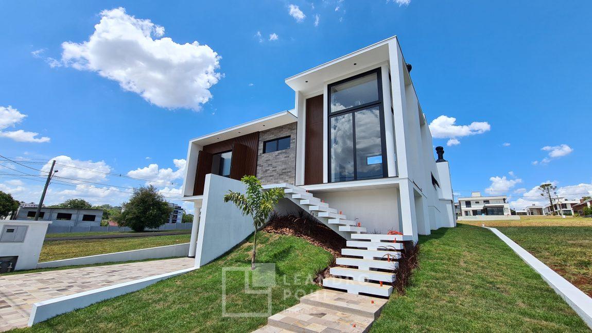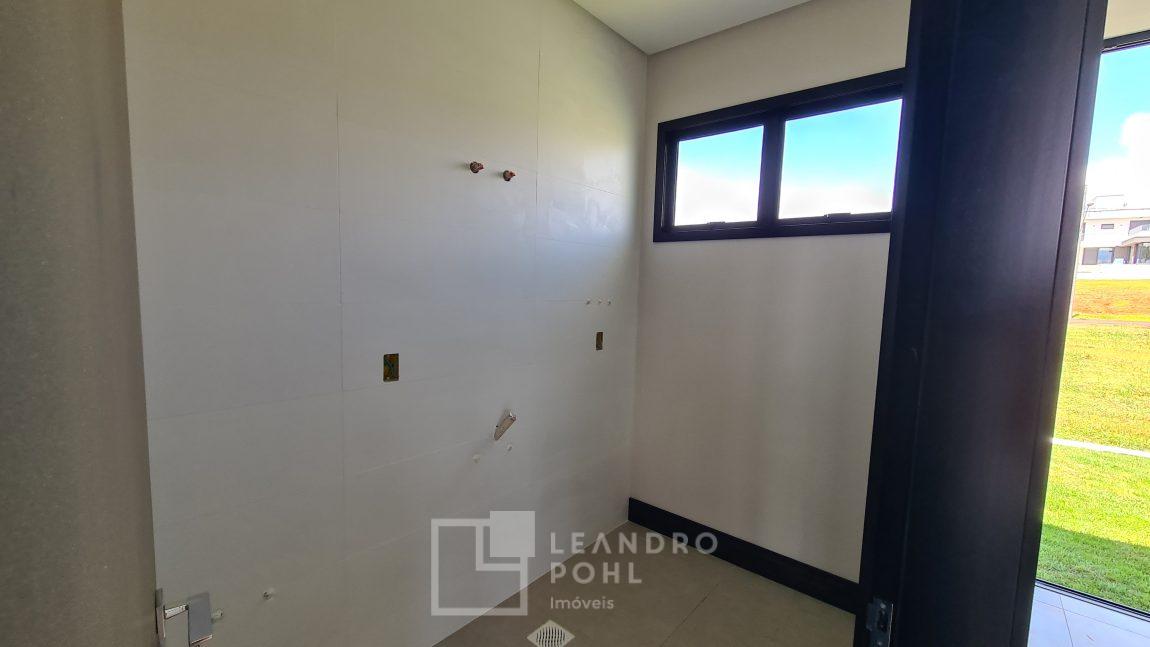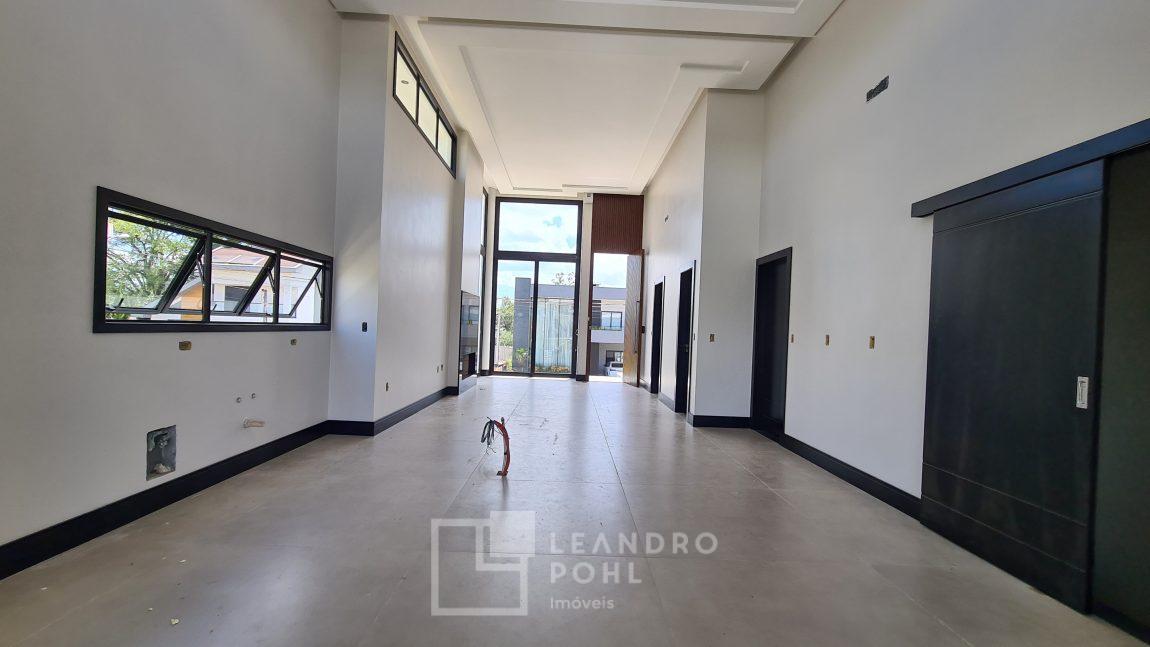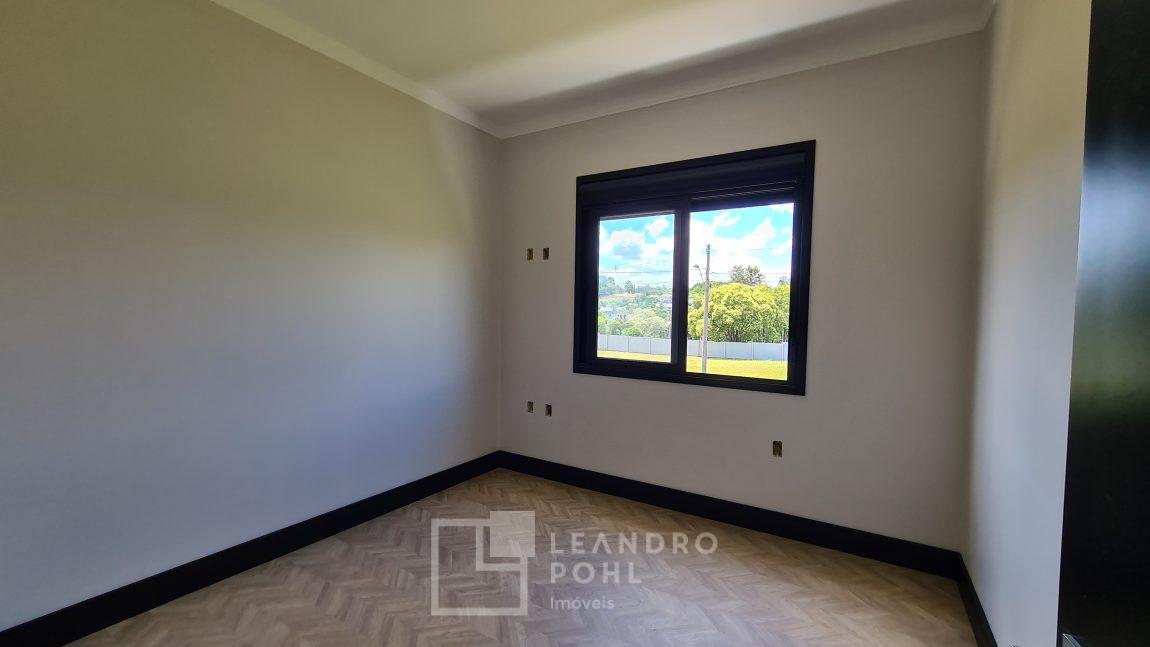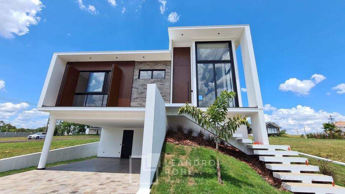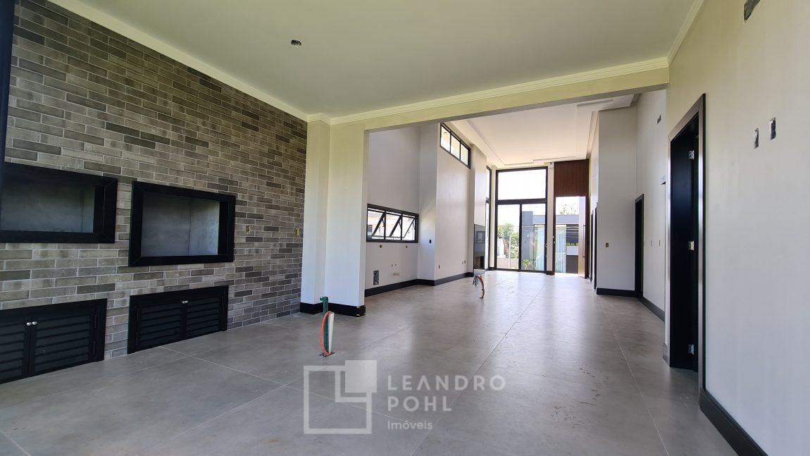 Casa em condomínio fechado com 03 dormitórios, sendo uma suíte master com closet, e 02 americanas, banheiro social, lavabo, sala estar e jantar com lareira, churrasqueira e bifeira, pé direito alto, pátio de fundos e garagem para dois carros, escritório, deposito e espaço gourmet, abertura em alumínio, fechadura da entrada eletrônica.