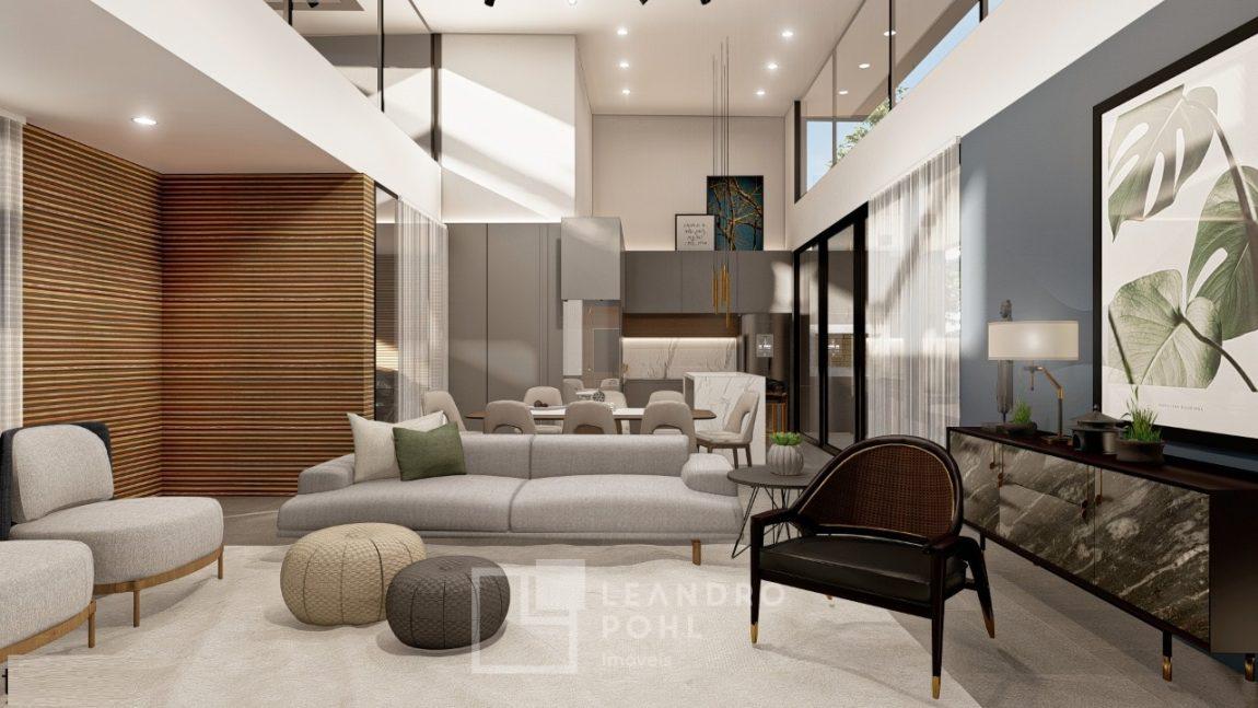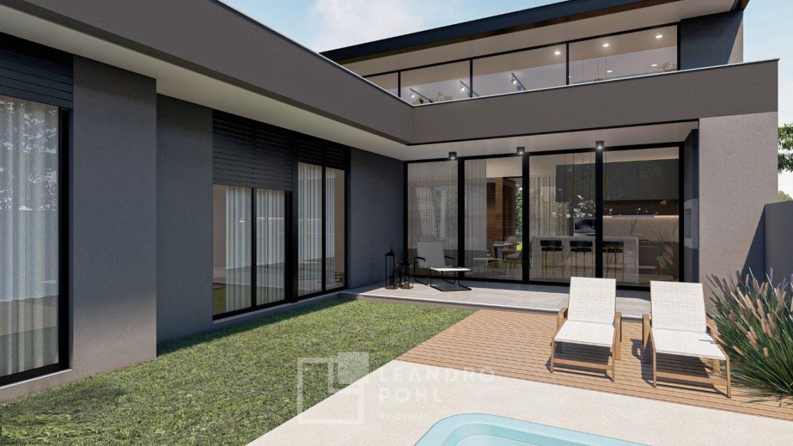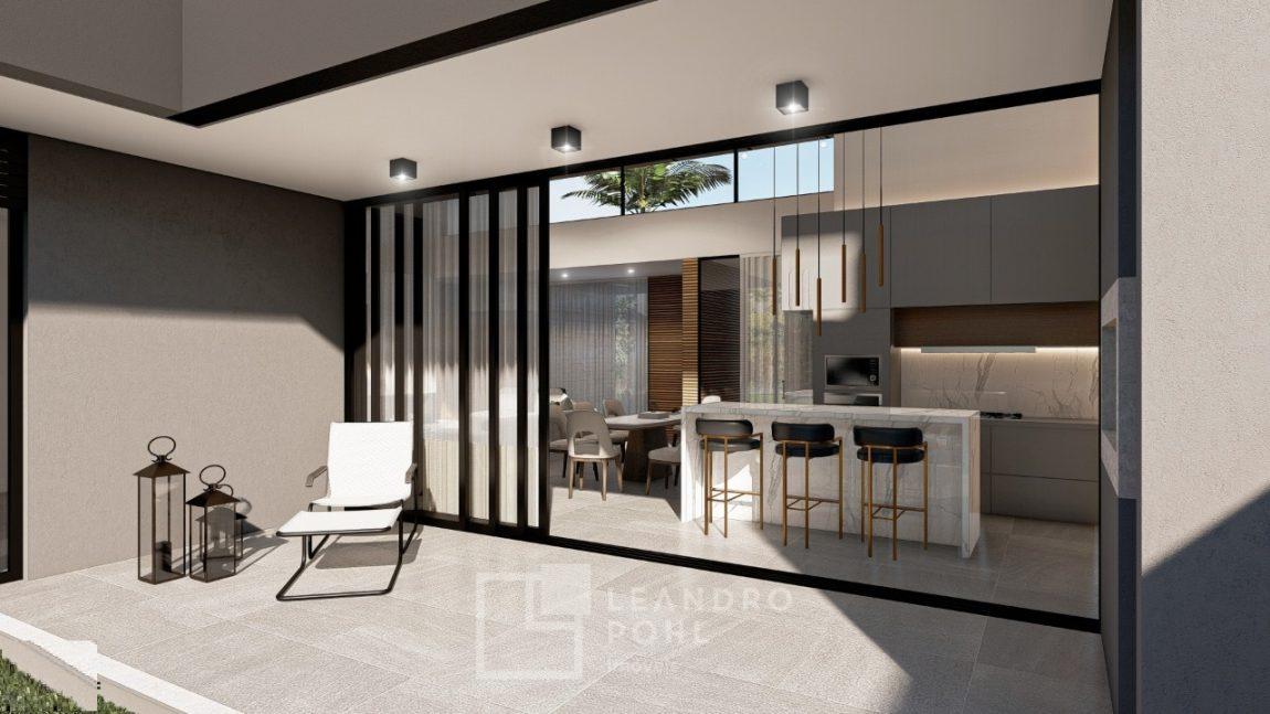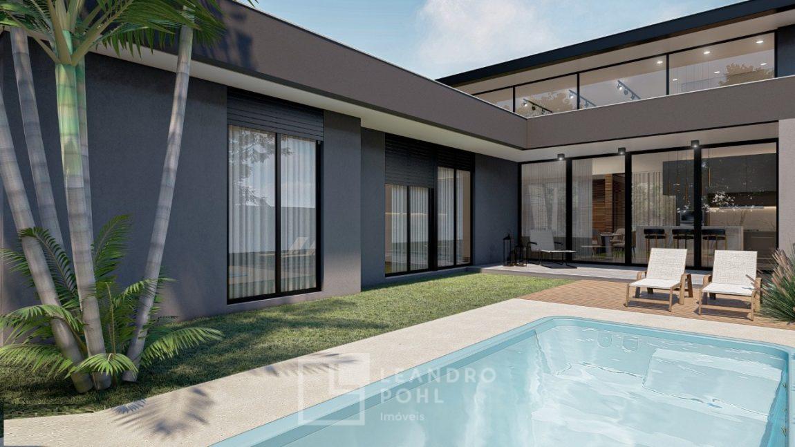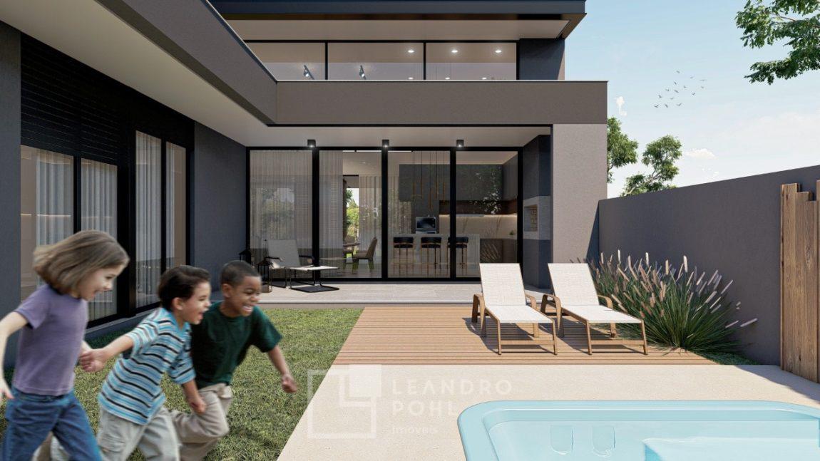 Casa 3 dormitórios em Condomínio Fechado com excelente infraestrutura, porcelanato, laminado nos quartos, gesso, esquadrias em alumínio, churrasqueira, esperas Split, água quente, pátio frente e fundos, alto padrão, entrega prevista para janeiro de 2024.