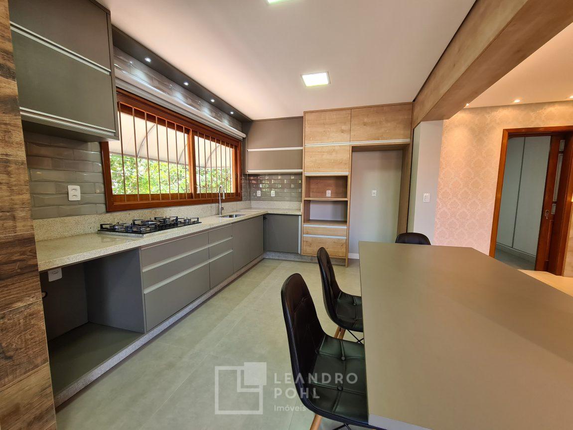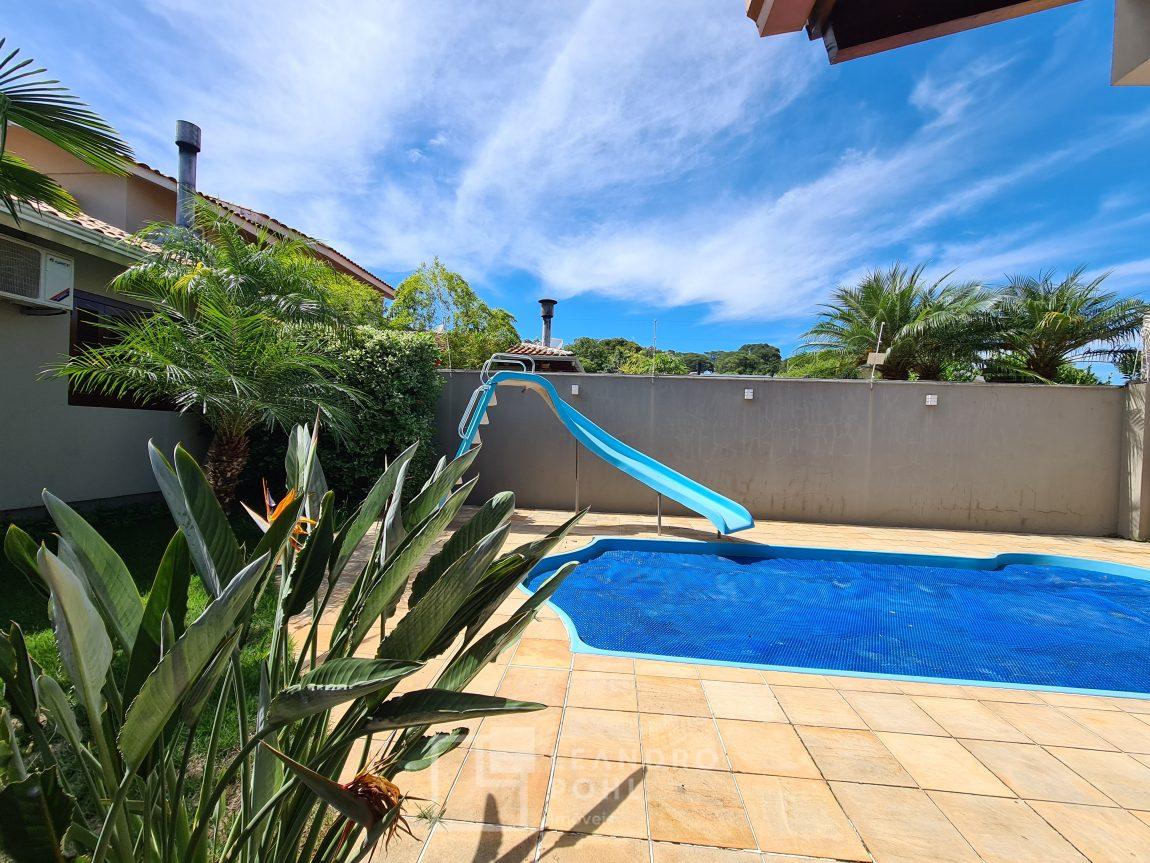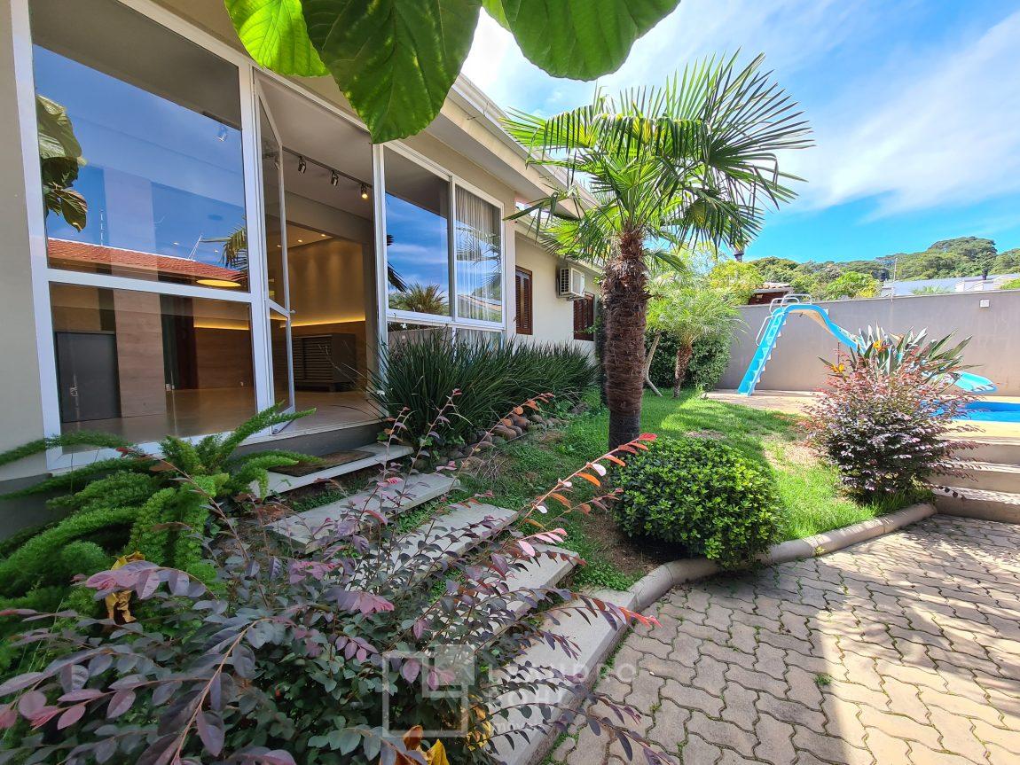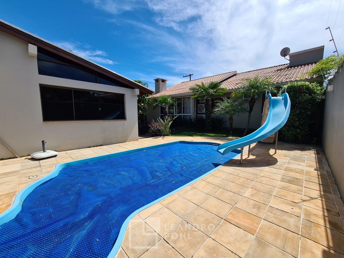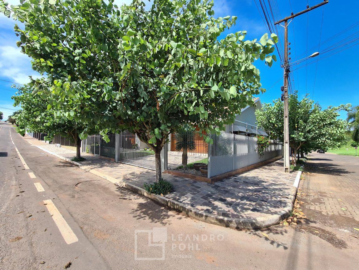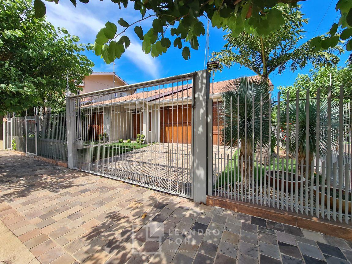 Linda casa plana de esquina, localizado em bairro nobre da cidade, próximo de uma praça e muita área verde, 03 dormitórios, 1 suíte, ampla sala de estar, jantar, banheiro social, garagem para 2 veículos., PERMANECE MÓVEIS PROJETADOS EM TODOS AMBIENTES, 5 ar condicionados split, cortinas e persianas, fogão a lenha com forno (fogão campeiro), armários embutidos, cerca elétrica, 2 churrasqueira com fogão, cozinha, murado, portão eletrônico, sistema de alarme, câmeras de vigilância e vídeo porteiro, toda casa possui rebaixamento em gesso e iluminação completa, churrasqueira rotativa; pátio, água quente em todas torneiras, quiosque com banheiro, piscina com tobogã, jardinagem e paisagismo no pátio, casa com 169,50 m2, quiosque com 44,66 m2, piscina com 14,85 m2.