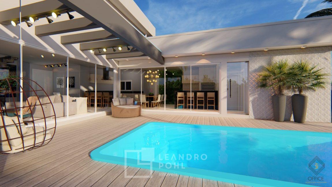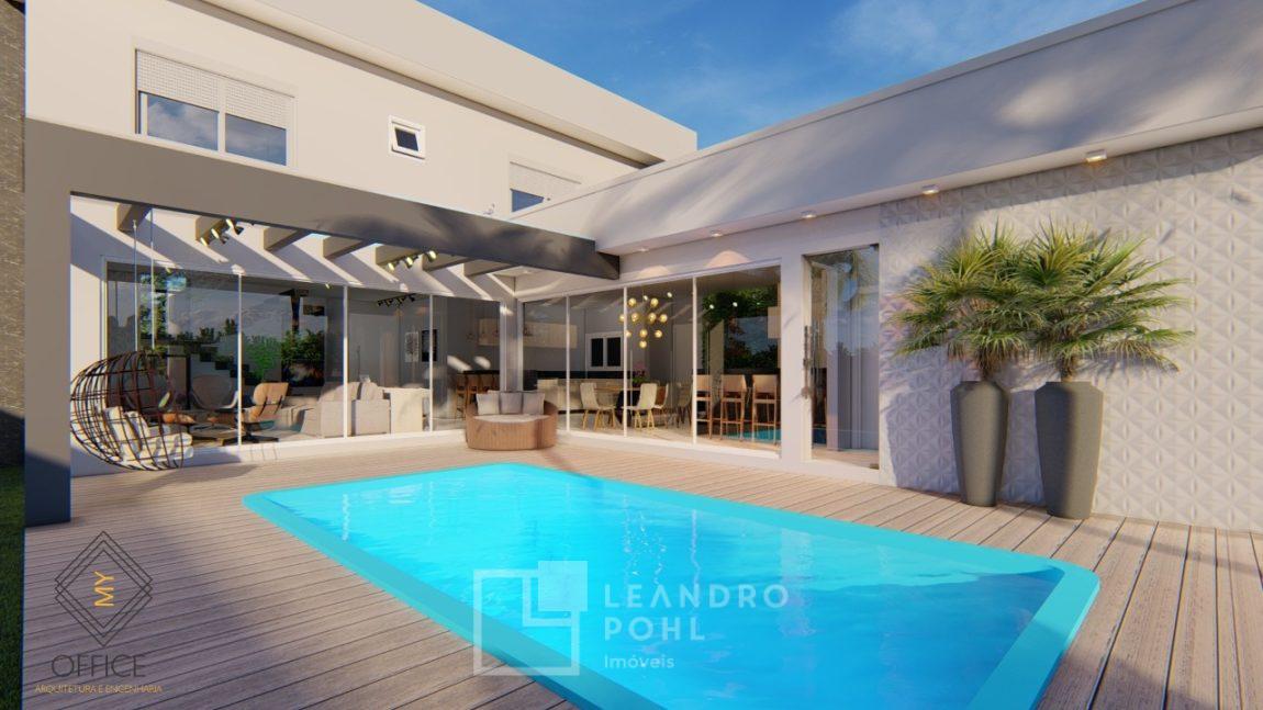 Casa com 03 dormitórios sendo uma suíte, espaço gourmet integrado com a cozinha, sala de estar, varanda e garagem para dois carros, piscina, toda murada e cercada, entrega prevista para novembro de 2023.