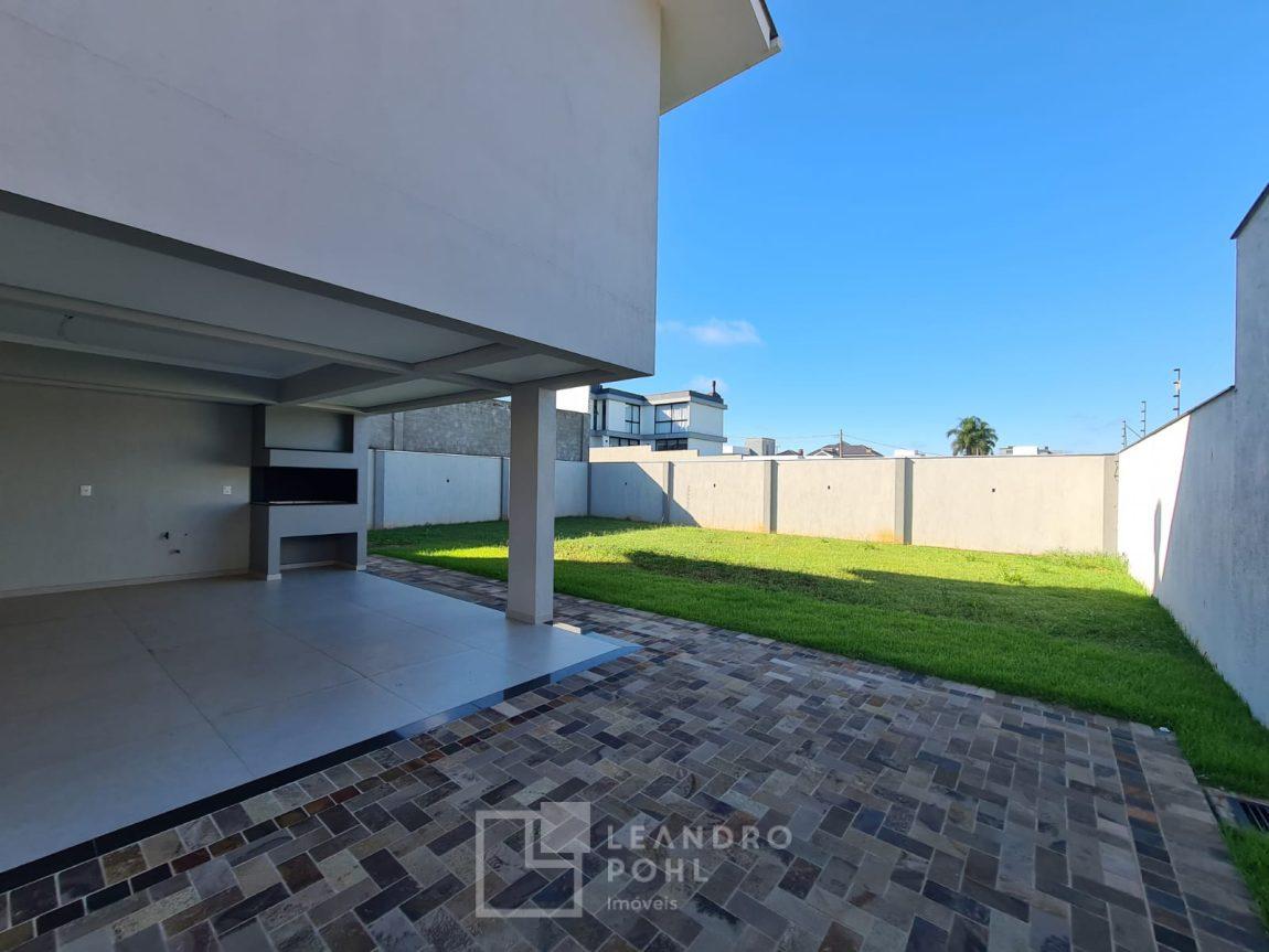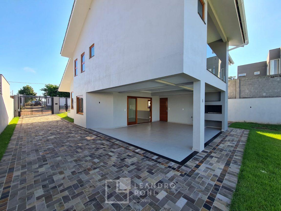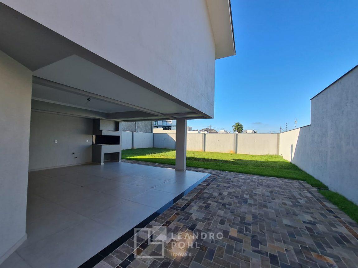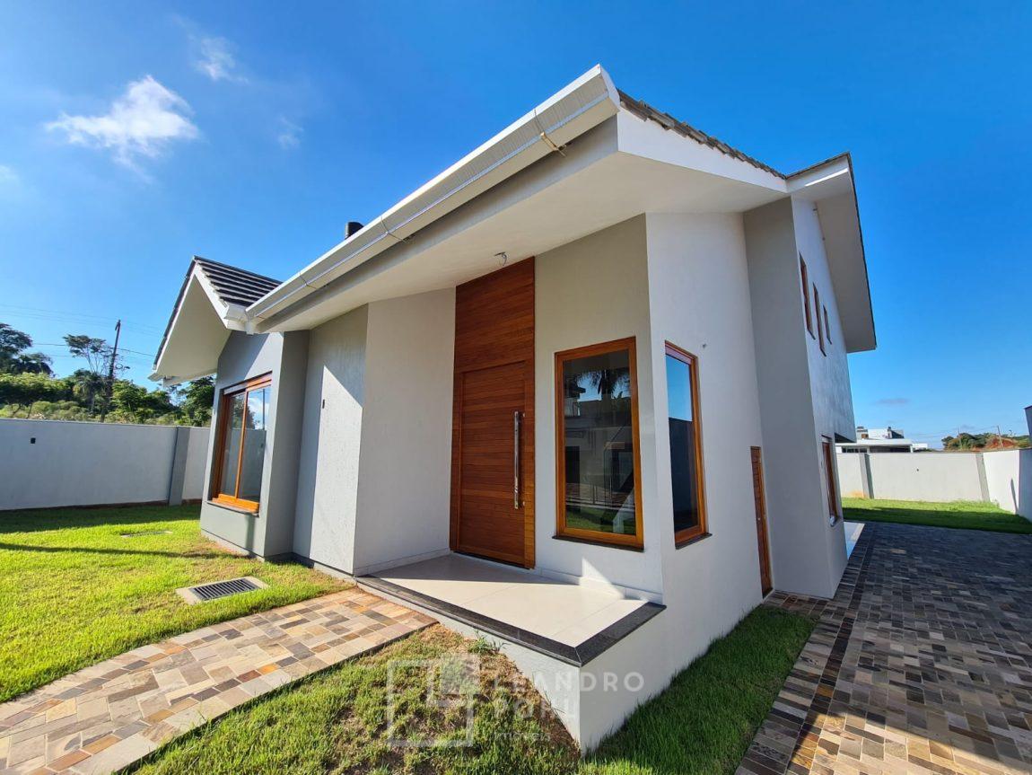 Casa nova com 03 dormitórios sendo 01 suíte máster com closet e sacada, mezanino, banheiro social, lavabo, espaço gourmet, amplo pátio nos fundos e garagem para 02 carros, localizada em loteamento de alto padrão, onde é permitido somente construção de casas unifamiliares,