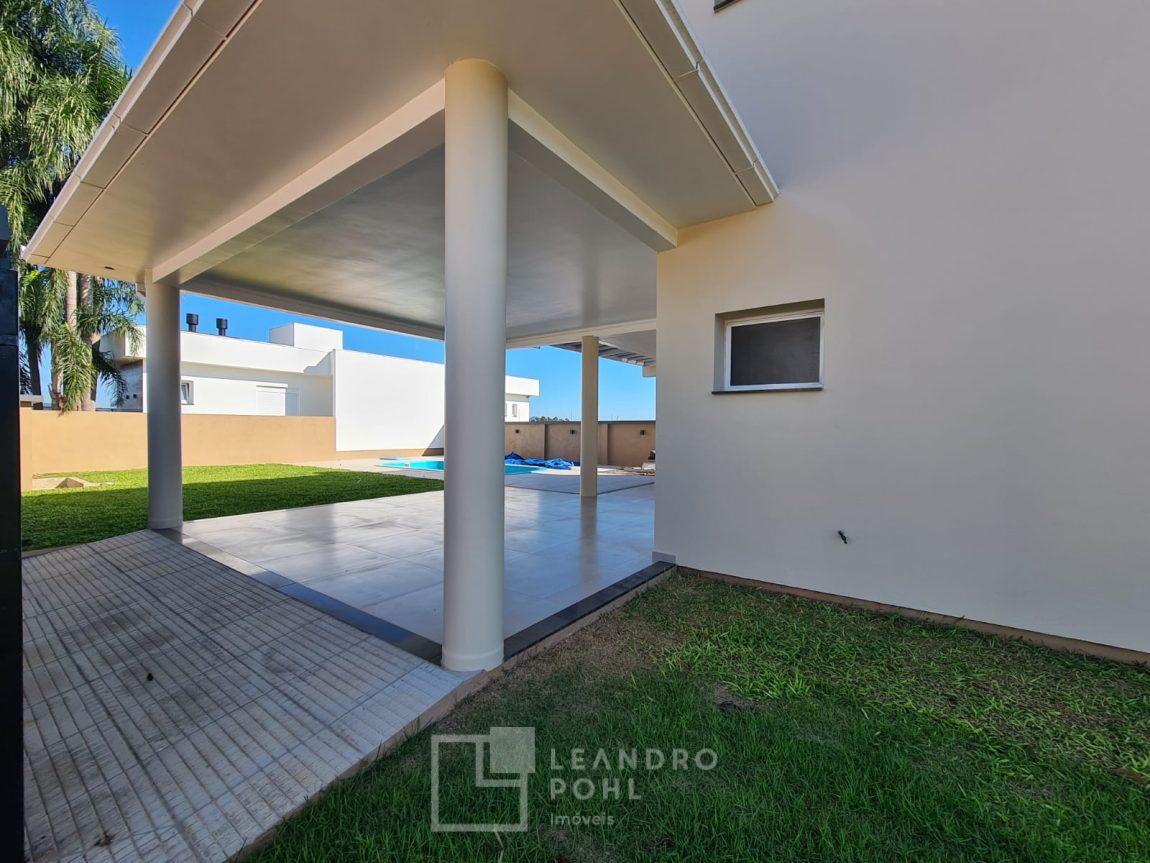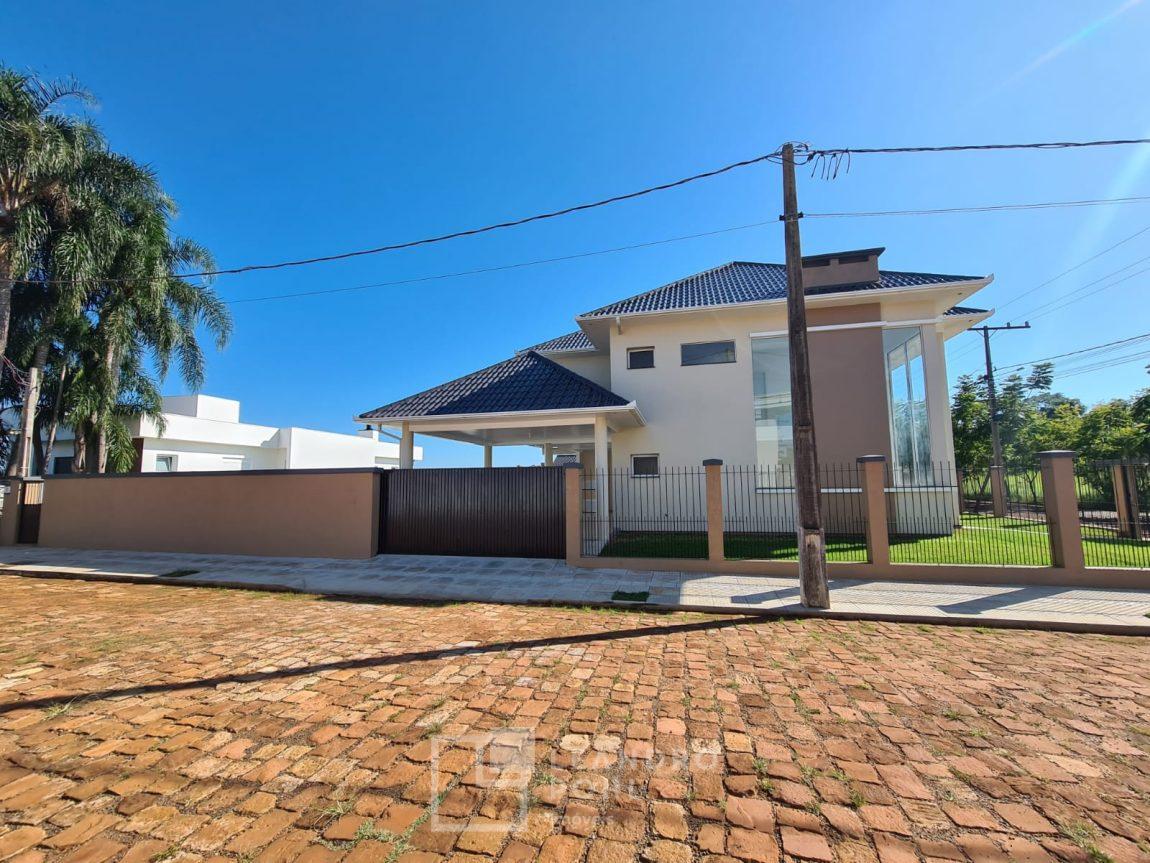 Casa nova com 3 dormitórios, sendo uma suíte com banheira de hidromassagem, sala com pé direito alto, lareira, cozinha, lavabo, piscina, banheiro, cercada e murada, localizada em loteamento unifamiliar de alto padrão .