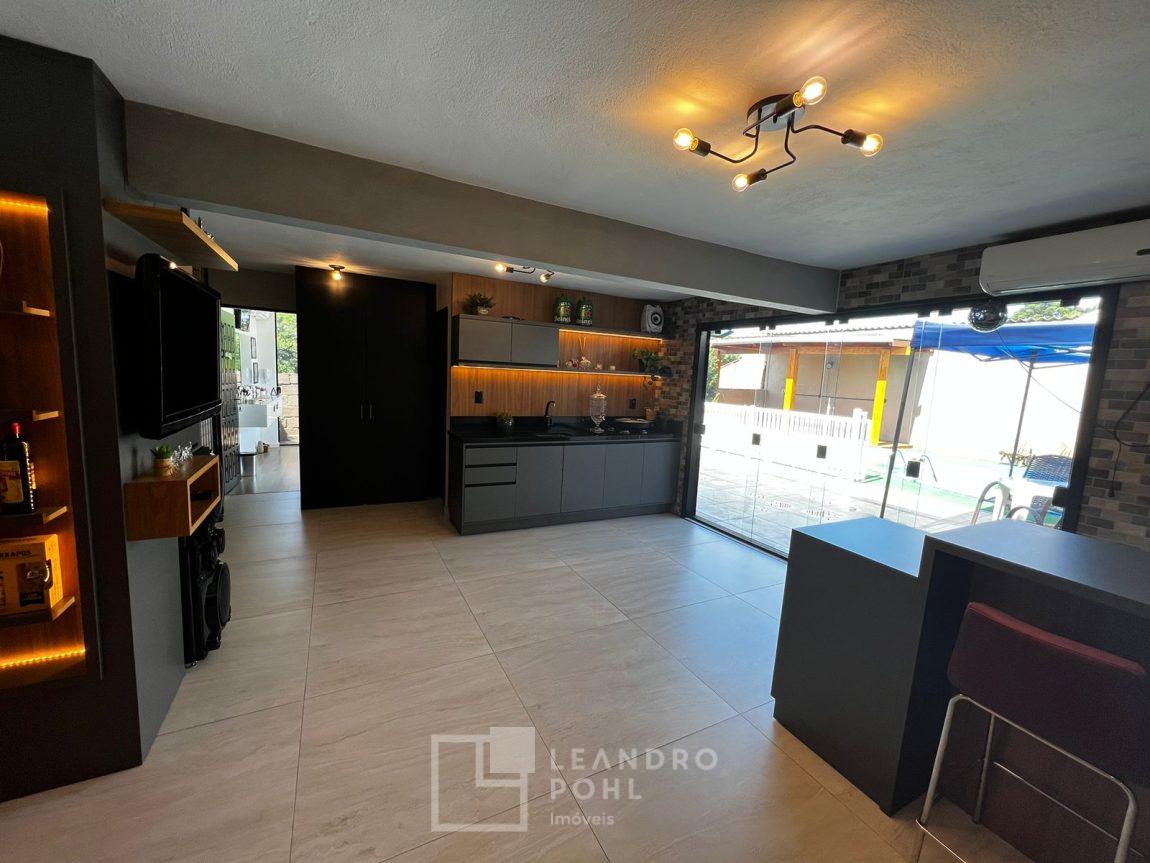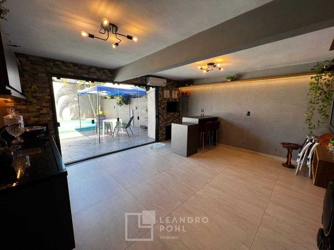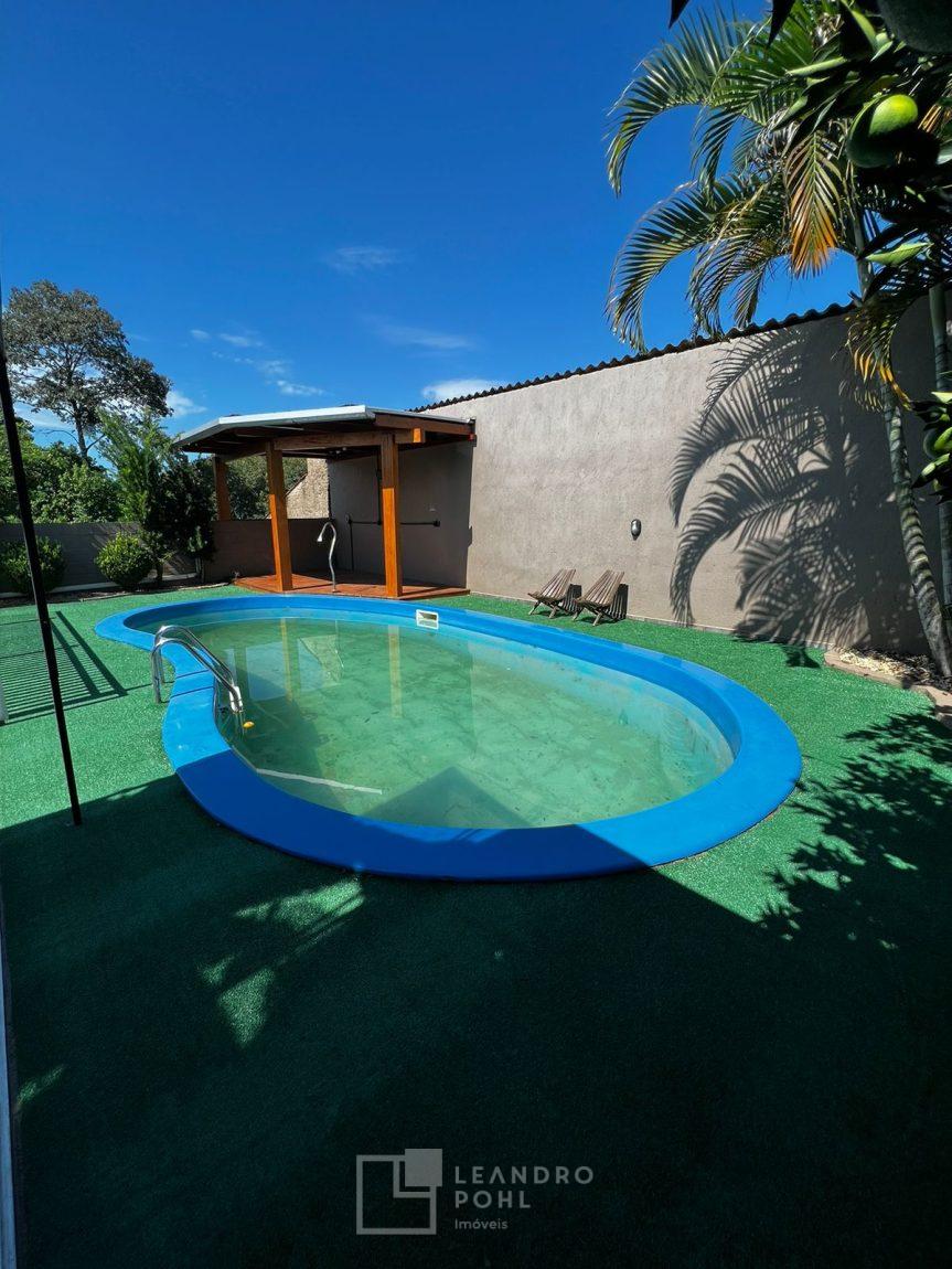 Casa com 3 dormitórios, 2 banheiros, Sala, Cozinha, Escritório, Área gourmet, Garagem para 1 veículo mais uma vaga coberta para 1 veículo, Lavanderia, Quiosque lazer pequeno, Piscina 4x8 fibra