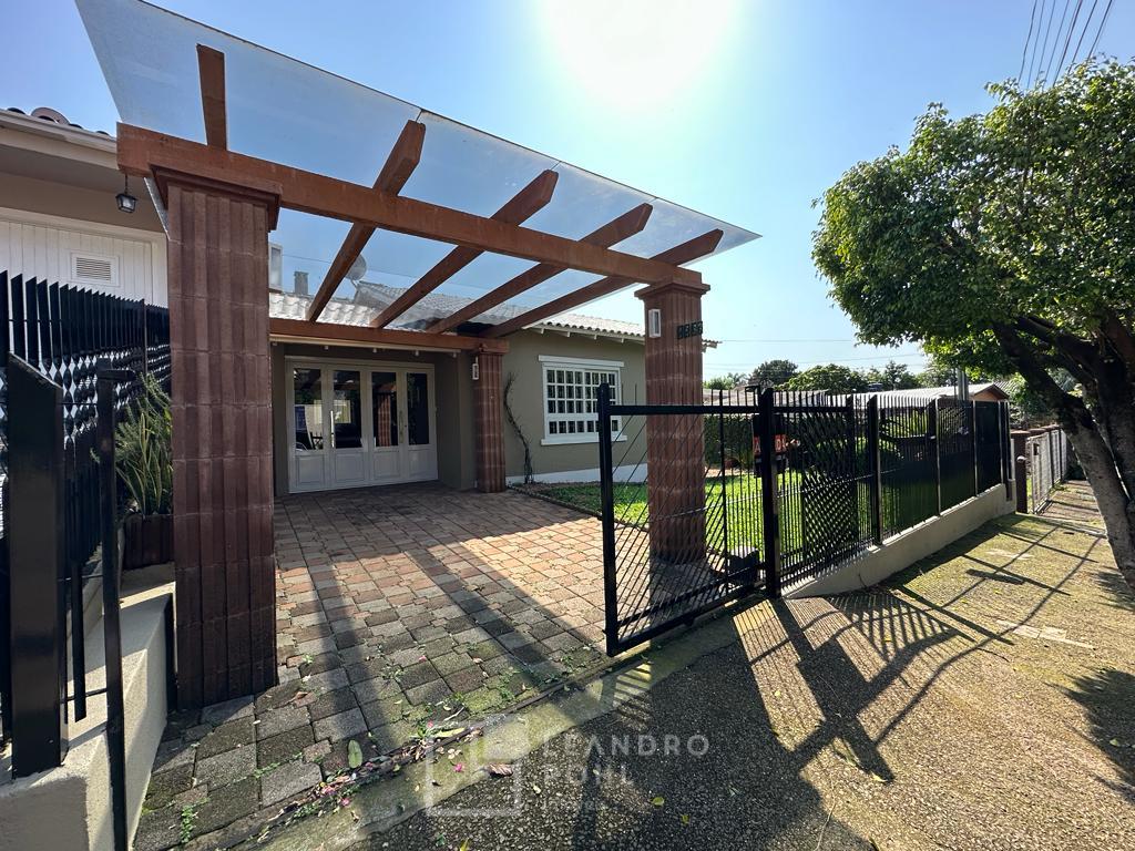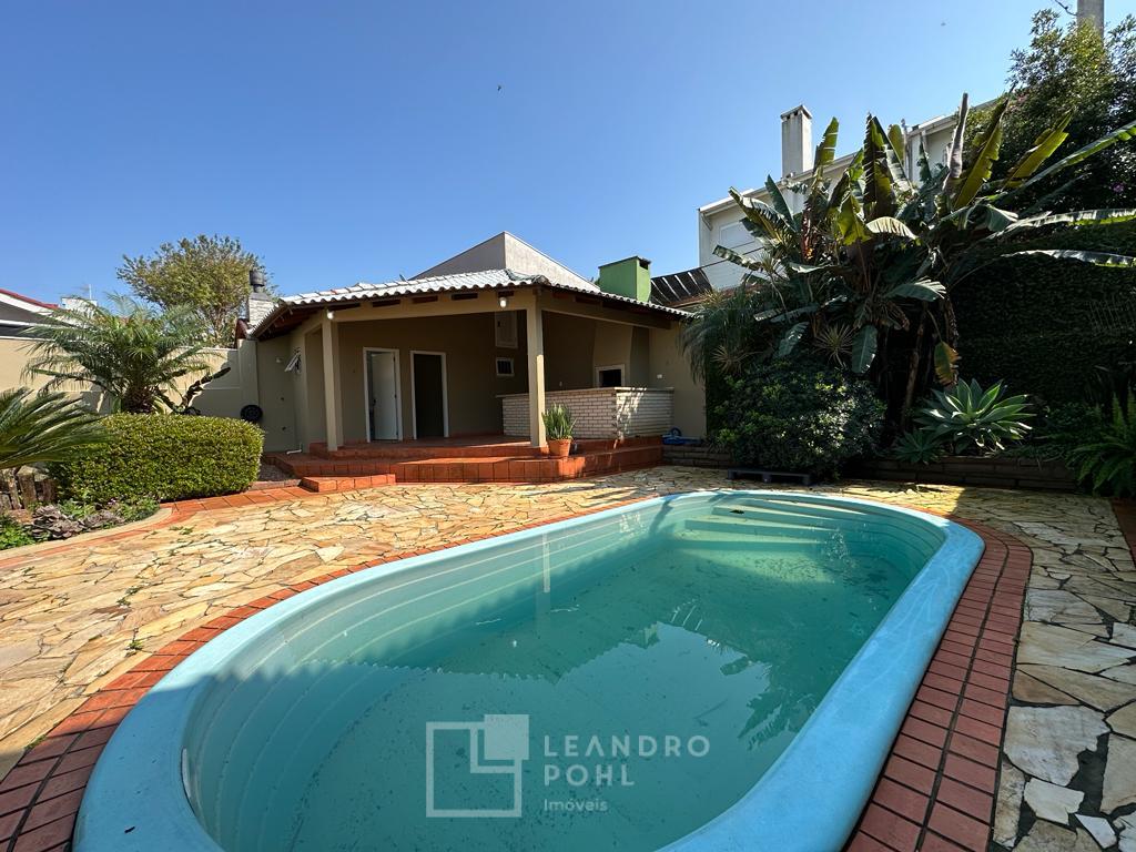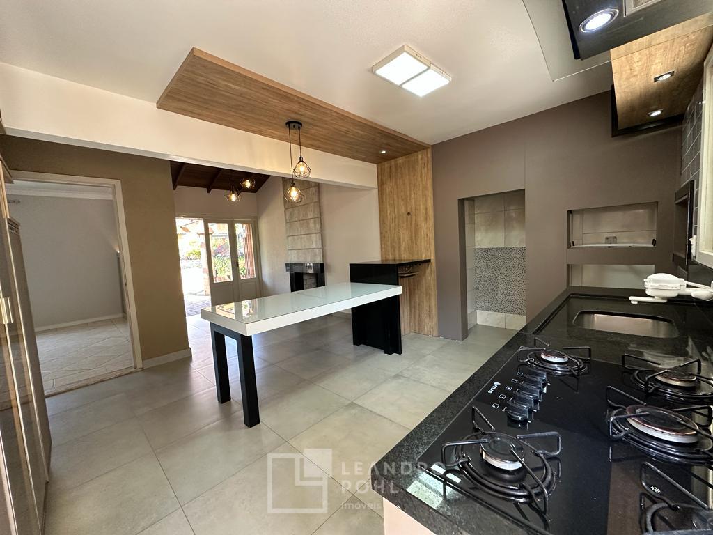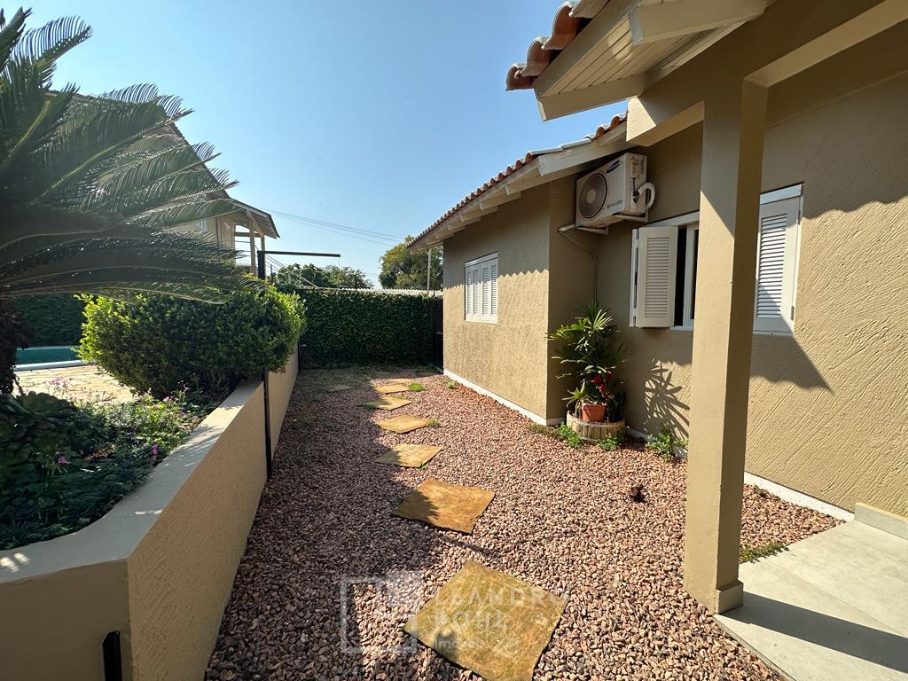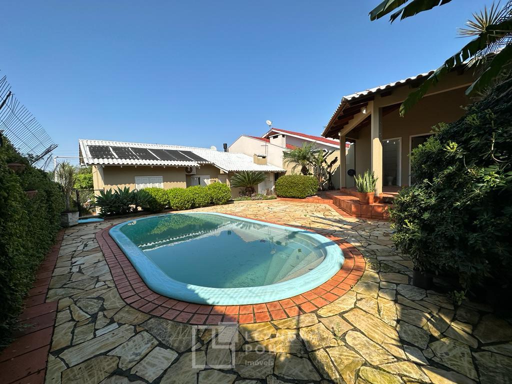 Casa 3 dormitórios semi-mobiliada, sala de estar com lareira, sala de tv, cozinha, vaga de garagem coberta (pergolado), suíte mais 2 banheiros, em piso cerâmico, iluminação, quiosque com despenca, piscina de fibra com aquecimento, casa plana, murada e cercada, portão eletrônico, excelente custo beneficio.